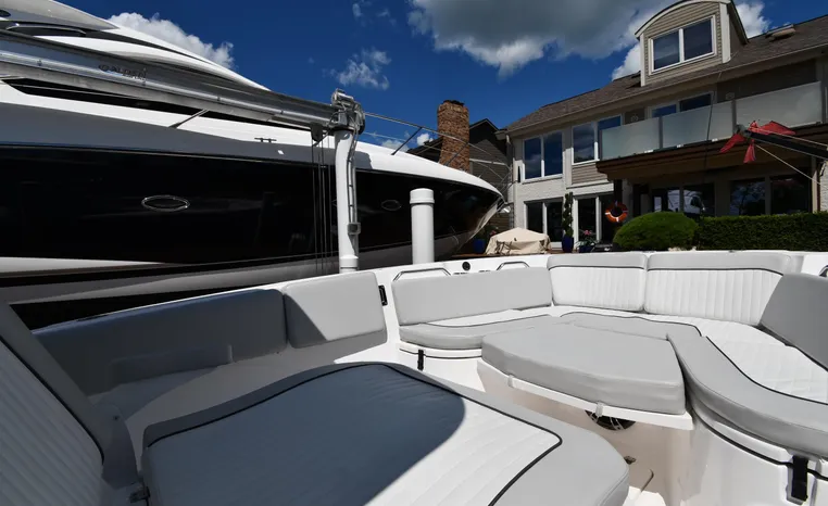 Freshwater / Great Lakes boat since new this vessel features Twin Yamaha 150-hp 4-Stroke Motors with only 105 original hours. Notable features include but are not limited to the following: Enclosed Head (Electric Flush) w/Vanity/Sink, Windlass Anchor w/Helm / Forward-Bow Controls (Note Polished Stainless-Steel Anchor, Transom Live Well, Port-Side Dive / Swim-Door, Fiberglass Hardtop w/Hull-Side Paint Match on Underside, Premium Raymarine NAV-System w/Duel Raymarine 9" Axium MFDs w/Radar/GPS/Chartplotter/Sounder, Premium Fusion Signature Series Sound System w/AMP/(2) Subwoofers - Note Tower-Speakers on Underside of Hardtop, and MUCH more!