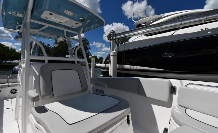 Freshwater / Great Lakes boat since new this vessel features Twin Yamaha 150-hp 4-Stroke Motors with only 105 original hours. Notable features include but are not limited to the following: Enclosed Head (Electric Flush) w/Vanity/Sink, Windlass Anchor w/Helm / Forward-Bow Controls (Note Polished Stainless-Steel Anchor, Transom Live Well, Port-Side Dive / Swim-Door, Fiberglass Hardtop w/Hull-Side Paint Match on Underside, Premium Raymarine NAV-System w/Duel Raymarine 9" Axium MFDs w/Radar/GPS/Chartplotter/Sounder, Premium Fusion Signature Series Sound System w/AMP/(2) Subwoofers - Note Tower-Speakers on Underside of Hardtop, and MUCH more!