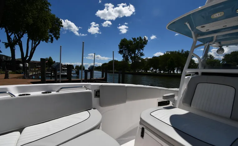 Freshwater / Great Lakes boat since new this vessel features Twin Yamaha 150-hp 4-Stroke Motors with only 105 original hours. Notable features include but are not limited to the following: Enclosed Head (Electric Flush) w/Vanity/Sink, Windlass Anchor w/Helm / Forward-Bow Controls (Note Polished Stainless-Steel Anchor, Transom Live Well, Port-Side Dive / Swim-Door, Fiberglass Hardtop w/Hull-Side Paint Match on Underside, Premium Raymarine NAV-System w/Duel Raymarine 9" Axium MFDs w/Radar/GPS/Chartplotter/Sounder, Premium Fusion Signature Series Sound System w/AMP/(2) Subwoofers - Note Tower-Speakers on Underside of Hardtop, and MUCH more!
