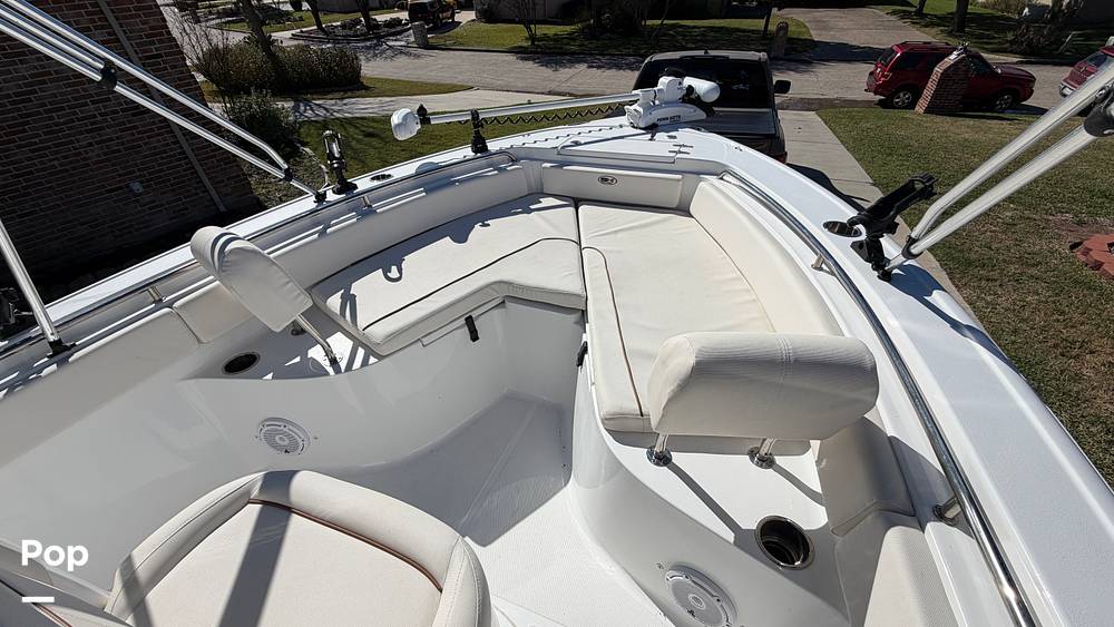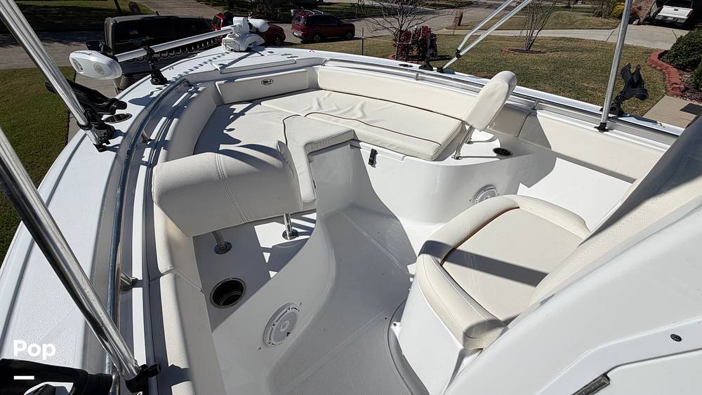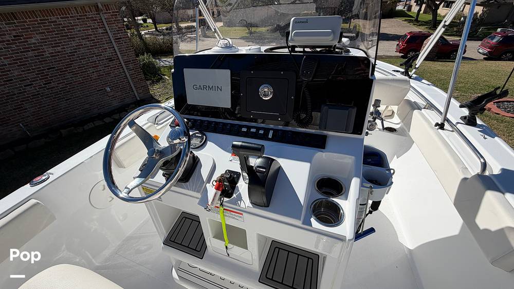 Powered by a Yamaha F200XB four-stroke outboard, this boat delivers smooth, efficient performance with the power needed for offshore runs or relaxed days on the bay. A Minn Kota Riptide trolling motor with an upgraded dual-battery bank provides excellent control and holding power for precision fishing, while a Garmin display at the console keeps navigation and electronics clear and easy to use.