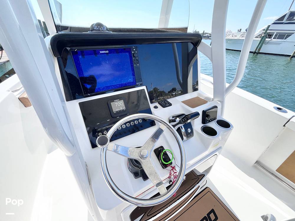 The 239 DLX deep-V is a bluewater Center Console that is just as at home while cruising and entertaining guests. The helm incorporates Simrad electronics, Suzuki digital gauges, trim tab controls, and a Bluetooth-enabled sound system.
