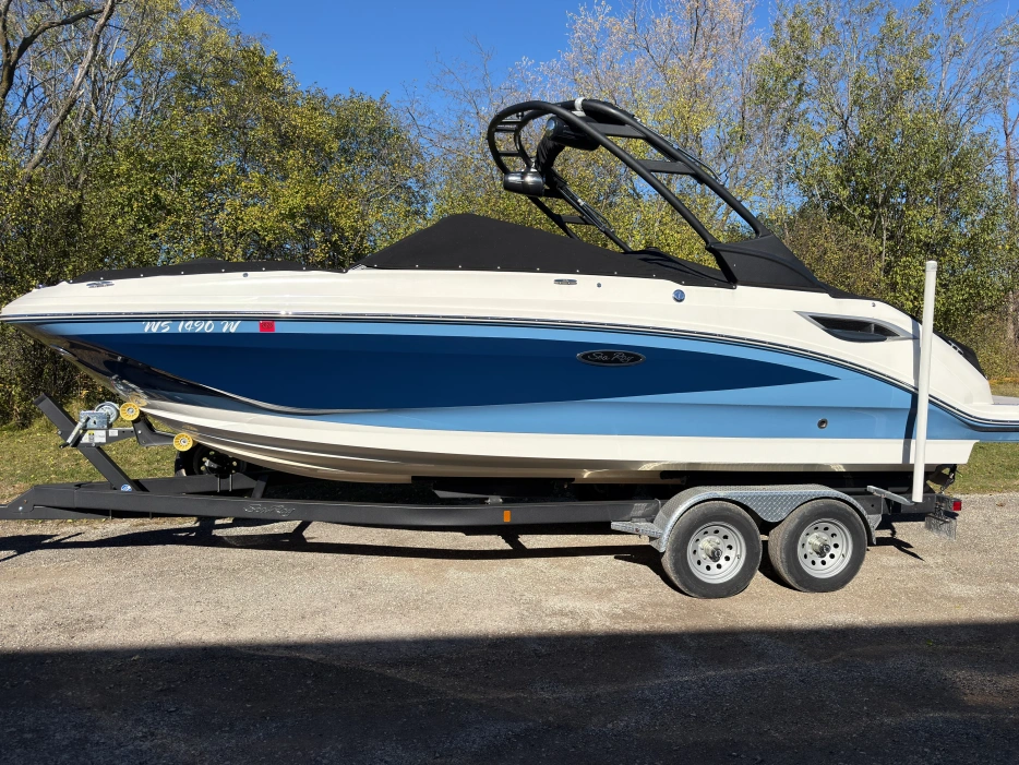 The 2022 Sea Ray 250 SDX is the perfect blend of luxury, performance, and versatility. Whether you’re looking for a high-performance boat for watersports or a comfortable vessel for a relaxing day on the water, the SDX 250 delivers an exceptional experience every time you hit the waves. High-Performance MerCruiser Engine: The SDX 250 is powered by a MerCruiser 6.2L 300 HP inboard/outboard engine, offering impressive power and performance. Coupled with a Bravo Three drive, this engine provides exceptional torque and acceleration, allowing for quick, smooth planing and precise handling. Premium Fit & Finish: Sea Ray's signature attention to detail is evident in the 250 SDX’s high-end finishes and premium upholstery. The seating features luxurious marine-grade fabrics that are both comfortable and easy to clean. The deck's non-slip surface and stainless-steel accents enhance both the boat’s aesthetics and its functionality, creating a vessel that not only looks great but performs flawlessly in a variety of conditions. Safety & Comfort for All: With its intuitive layout and thoughtful design, the 2022 Sea Ray 250 SDX provides the safety features you need for peace of mind on the water. The boat is equipped with a reliable automatic bilge pump, an anti-theft alarm system, and multiple grab handles throughout the boat, ensuring you and your guests stay secure during your trip. Abundant Storage: The SDX 250 is designed with plenty of storage space, including a spacious in-floor compartment and convenient under-seat storage, ensuring your gear stays organized and out of the way. Cutting-Edge Technology: The helm boasts an easy-to-use Simrad touchscreen display, putting all key information right at your fingertips. Plus, the boat is equipped with a Fusion audio system, creating the perfect soundtrack for your on-water adventures. Hull & Deck Features: Built for both style and function, this boat comes with stainless steel hardware, navigation lights, a ski tow eye, and a walk-thru windshield that provides easy access to the bow, all adding to its sleek and practical design. Perfect for Watersports & Entertainment: Whether you're into wakeboarding, waterskiing, or simply cruising with friends, the Sea Ray 250 SDX has you covered. The boat’s powerful engine and high-performance hull make it an ideal platform for towing watersports enthusiasts, while the spacious, sun-filled deck provides the perfect environment for relaxation and socializing after a fun day on the water.