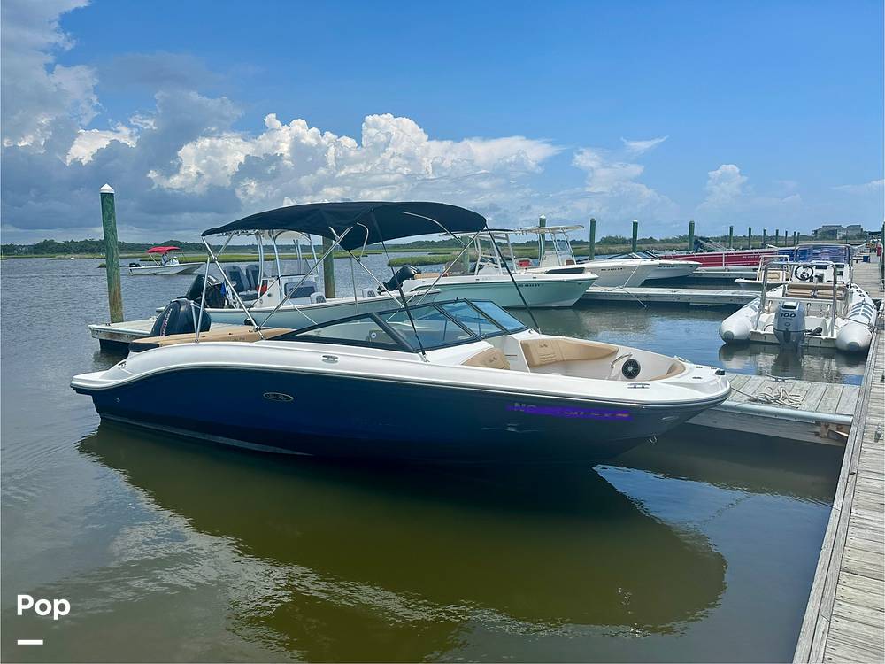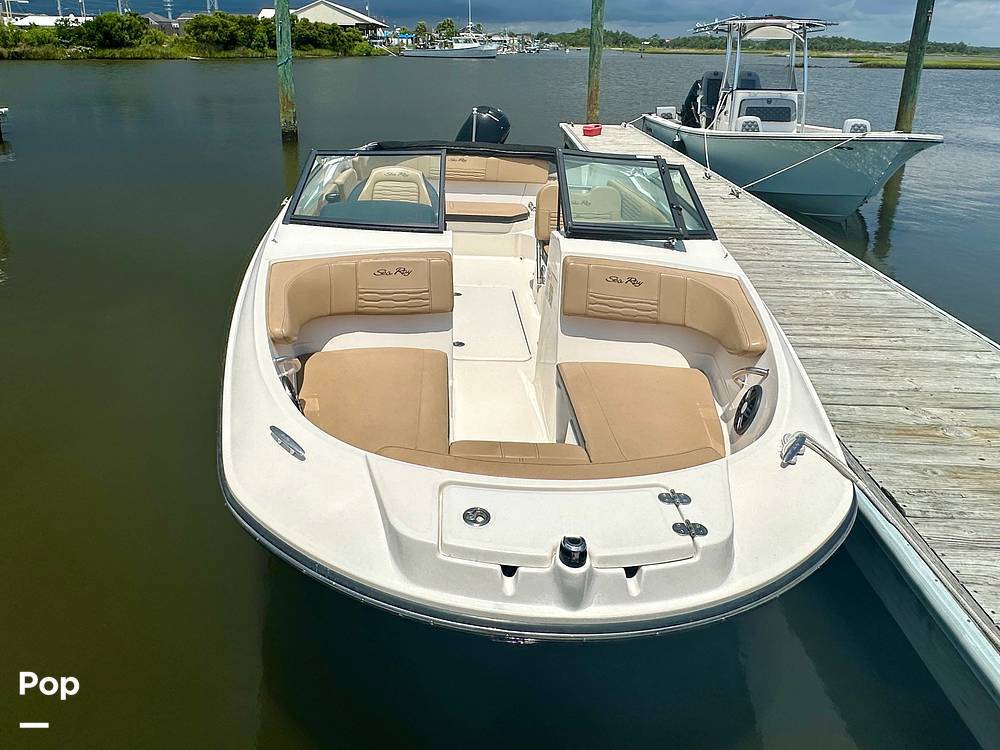 Features like a Bluetooth-enabled sound system, in-floor storage for gear, and a sleek helm with intuitive controls all contribute to a boating experience that's as enjoyable as it is reliable. Designed for ease of use and versatility, this Sea Ray is well-suited for both new boaters and seasoned pros.