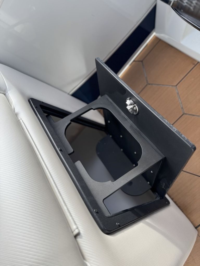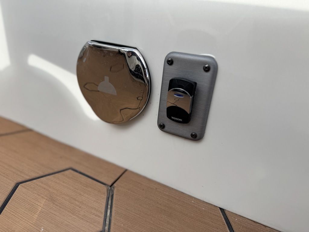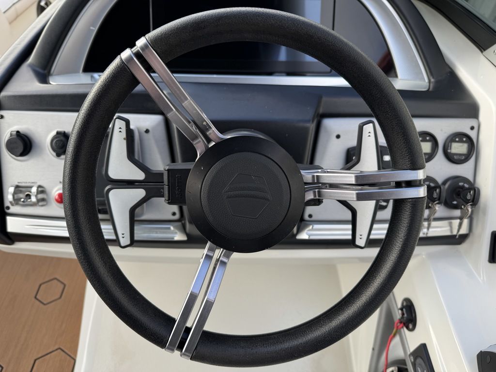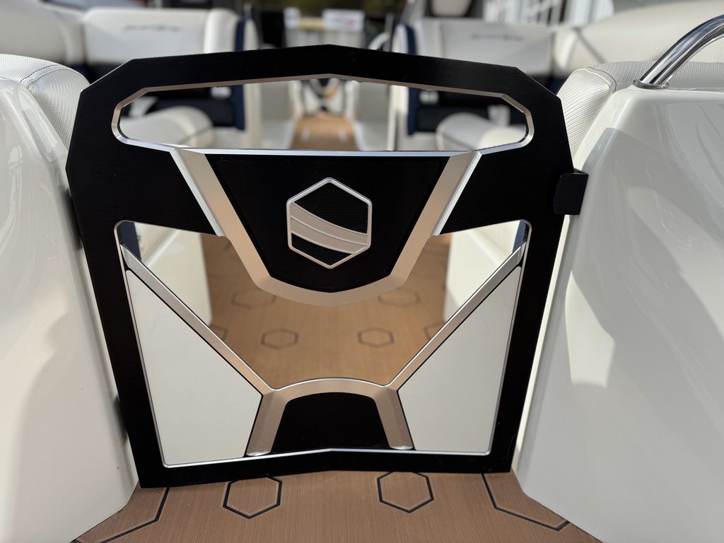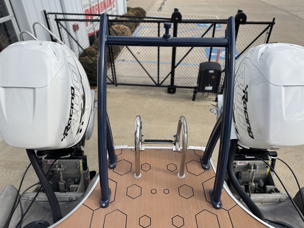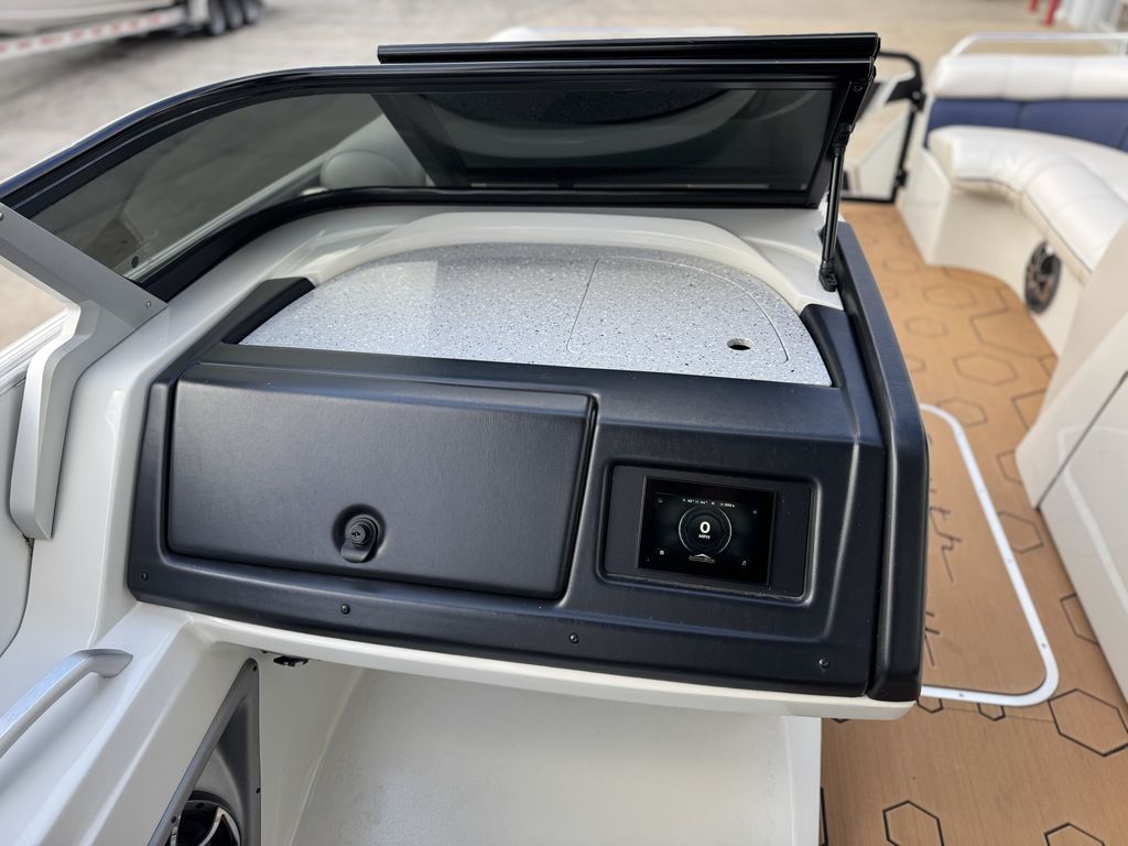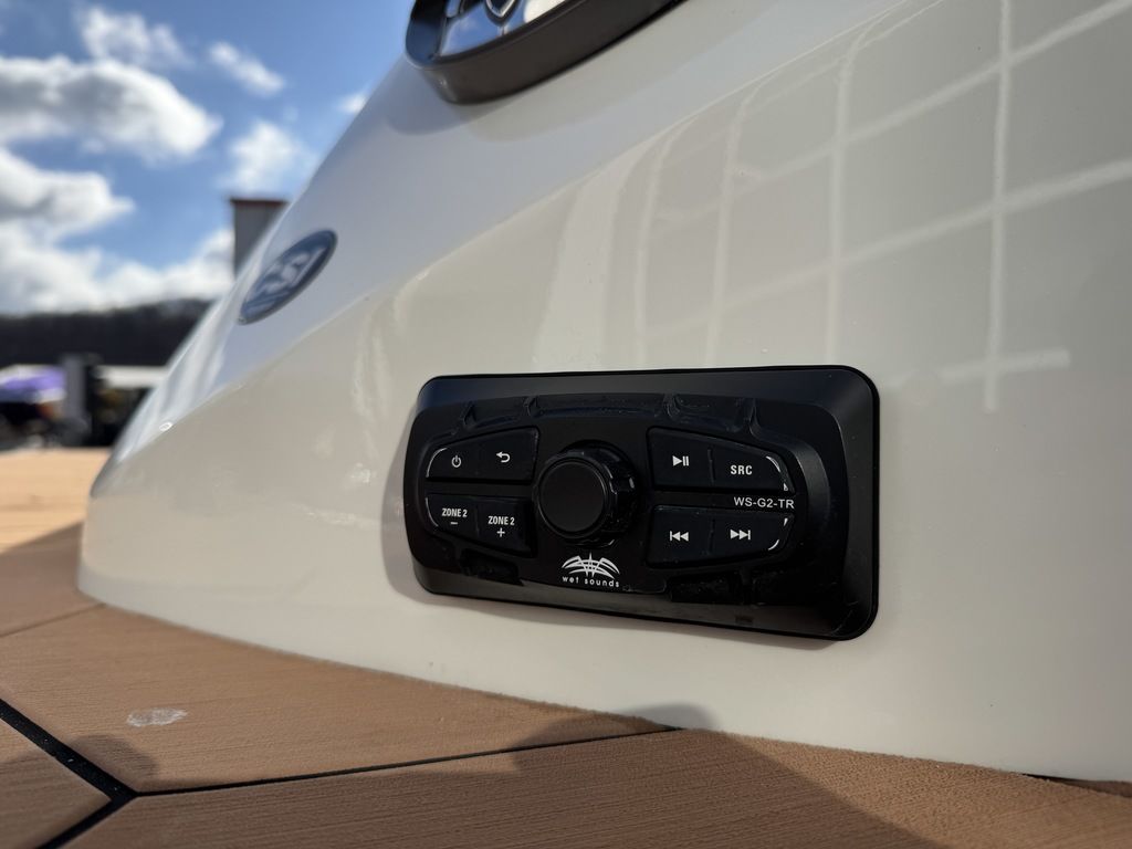 Atlas hydraulic jack plates, LED underwater lights, transom lights, rail lights and cupholder lights, swim ladder, ski tow bar, power tower, Seadek flooring, Wetsounds sound system, Wetsounds tower speakers, Wetsounds transom remote, Promariner built in battery charger, transom washdown shower, billet aluminum gates and seat hardware, captain chairs with bolsters, folding armrests, wireless phone chargers, built in trash receptacle, paddle controls for jack plates, remote battery switch, jack plate indicators, Mercury Digital Throttle and Shift (DTS), Active Trim, passenger touchscreen, widescreen drivers touchscreen controls, digital switches, sink, walk-through windshield, dual fuel tanks, and much more!