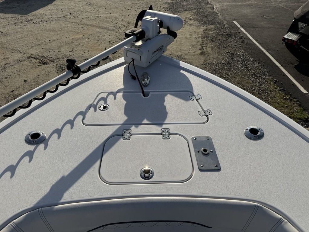 The Masters 247OE sets a new standard and expands our “OE” offerings that started with our flagship. This one, however, comes in sporting a brand-new design following suit with the new Sportsman design language. The extended console brings you a very comfortable chaise lounge and a large storage compartment. The deck features dual aquarium livewells, an open bow design with a step up casting deck which includes a livewell, best-in-class bilge access and much more. This is all paired up to a very capable hull designed for shallow water and a smooth ride.