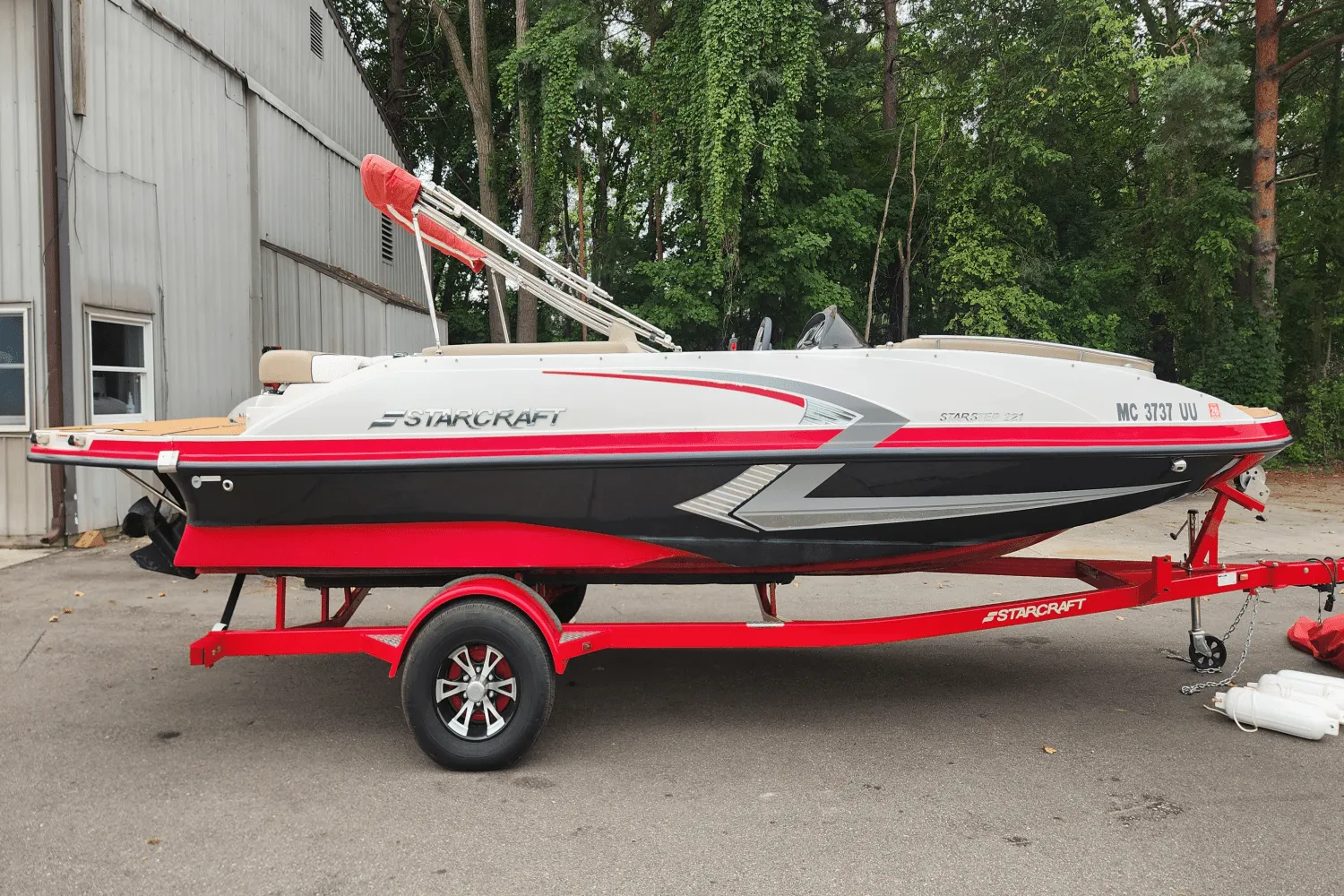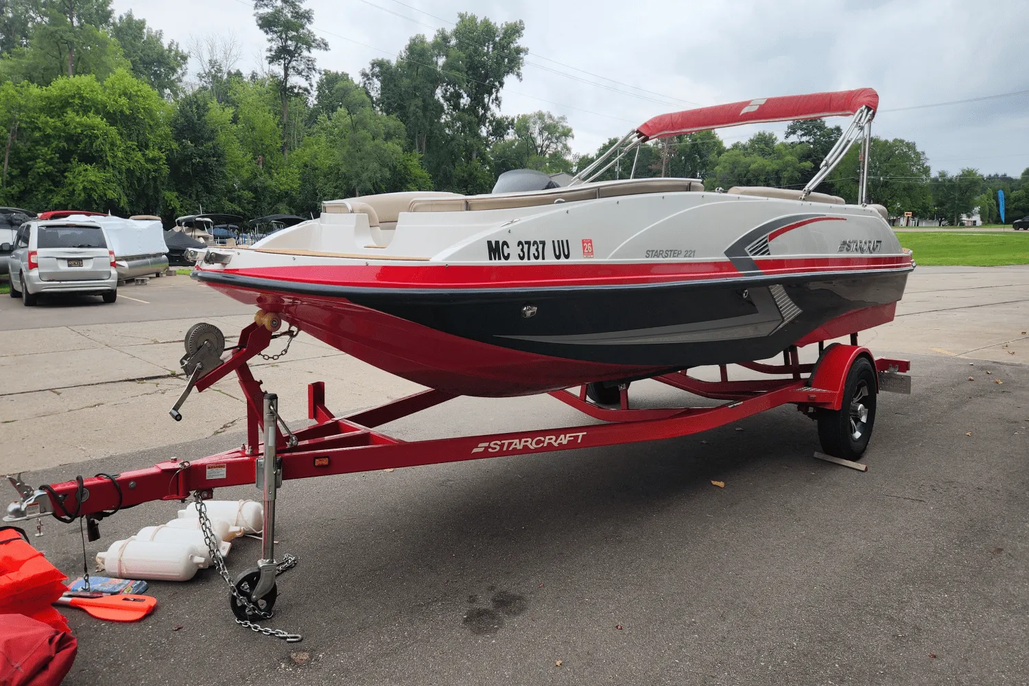Make every day on the water unforgettable with the 2022 Starcraft 221 Starstep - The ultimate blend of performance, comfort, and style. Whether you're cruising the lake, pulling skiers, or anchoring at the sandbar, the 221 StarStep delivers with its spacious layout, powerful performance, and premium amenities. Options included are the legendary 4.5 Mercruiser V6 sporting 200 HP. Good enough for speeds in the 40mph range. Snap in marine mat and matching trailer included!