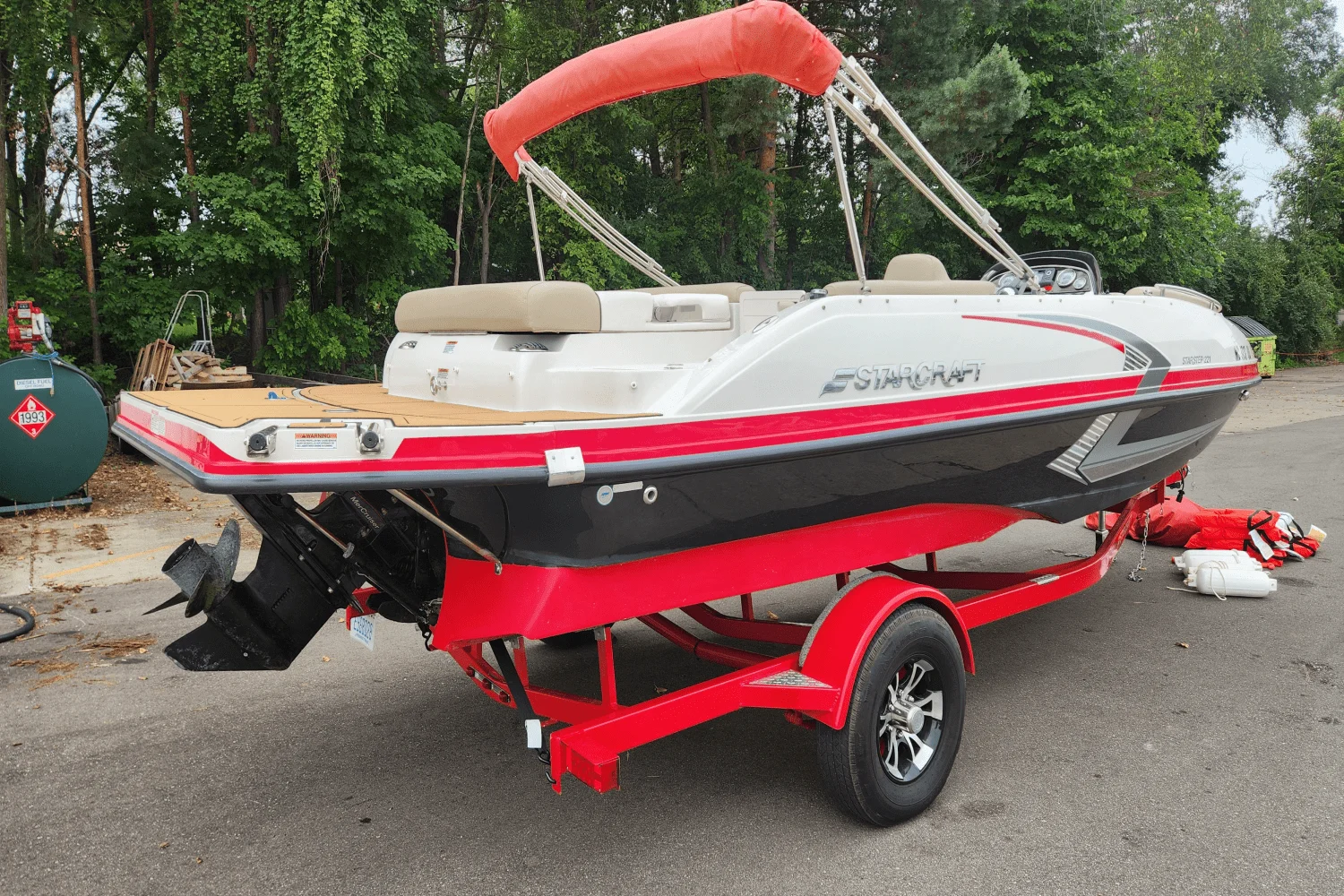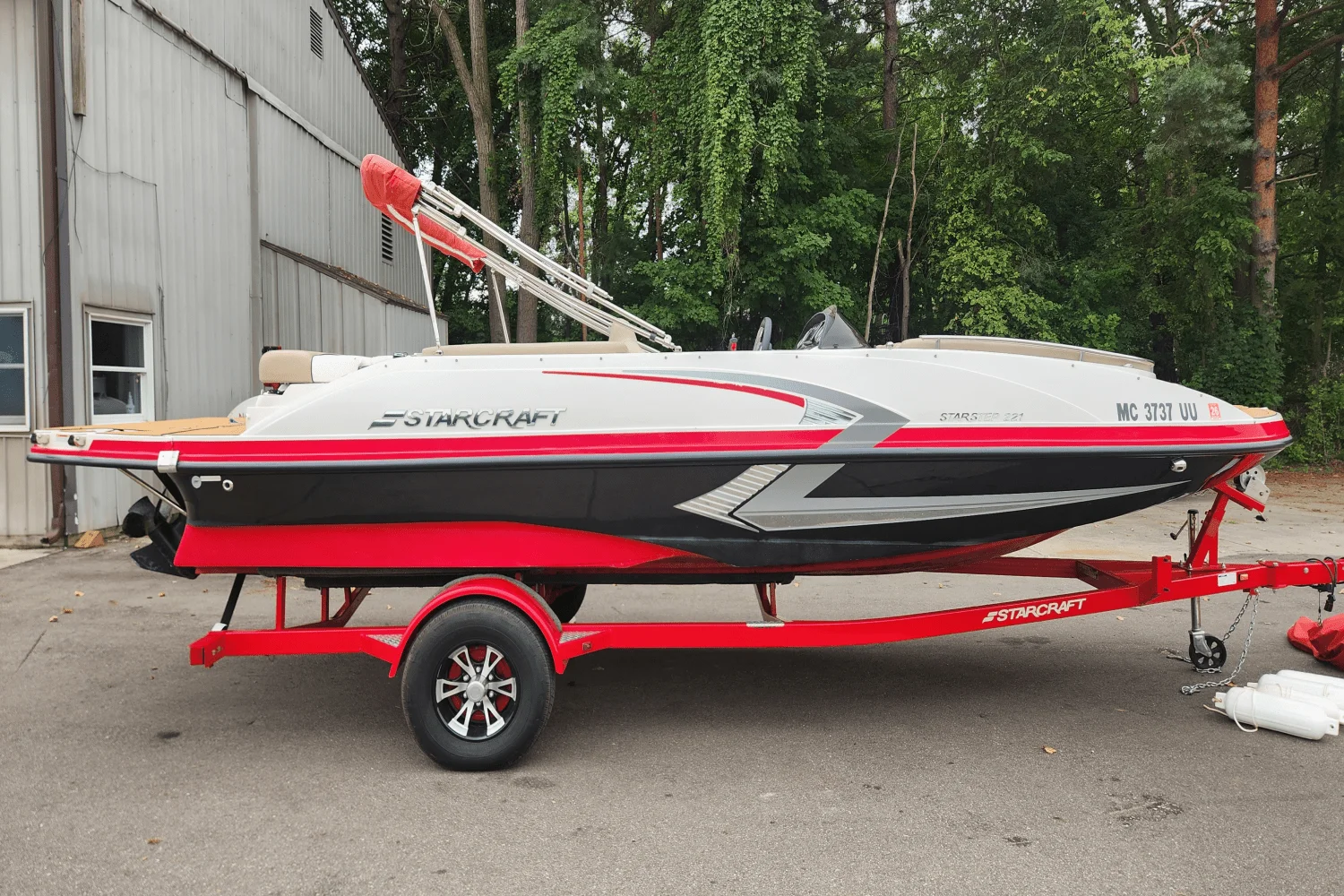 Check out this 2022 Starcraft 221 Starstep and make every day on the water unforgettable! - The ultimate blend of performance, comfort, and style. Whether you're cruising the lake, pulling skiers, or anchoring at the sandbar, the 221 StarStep delivers with its spacious layout, powerful performance, and premium amenities. This 2022 Starcraft 221 Starstep is the perfect boat for friends, family or a day or cruising out on the lake. Options included are the legendary 4.5 Mercruiser V6 sporting 200 HP. Good enough for speeds in the 40mph range. Snap in marine mat, cover, accessories and matching trailer is included!