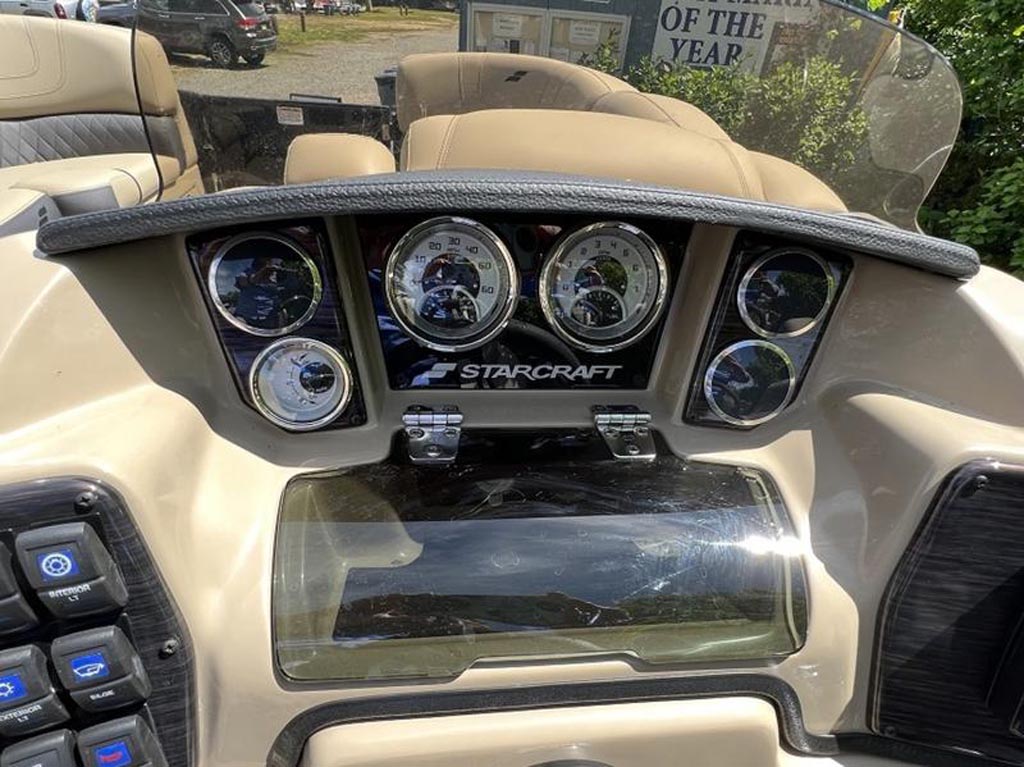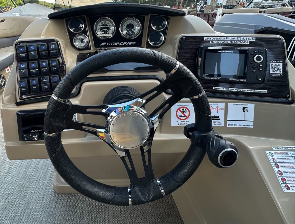 The onyx Starcraft Marine SLS 3 is furnished with gorgeous upholstery and plush bucket seats.