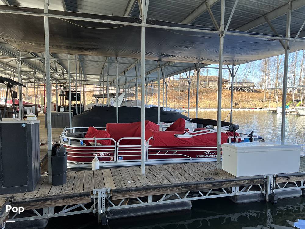 2022 SUN TRACKER FISHIN' BARGE 20 DLX WITH MERCURY OUTBOARD, READY AND IN THE WATER