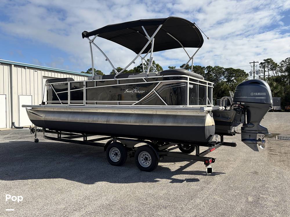 This 2022 Sunchaser Geneva 22 Pontoon boat comes with a 2023 Yamaha 115hp 4-stroke outboard engine and a dual axle trailer!