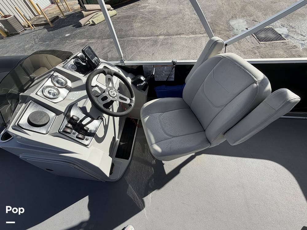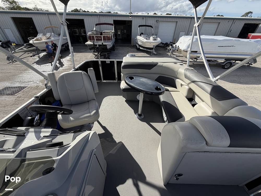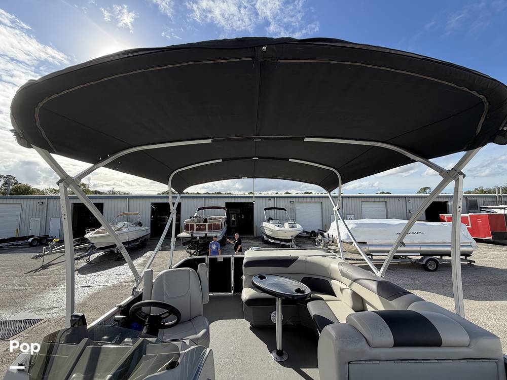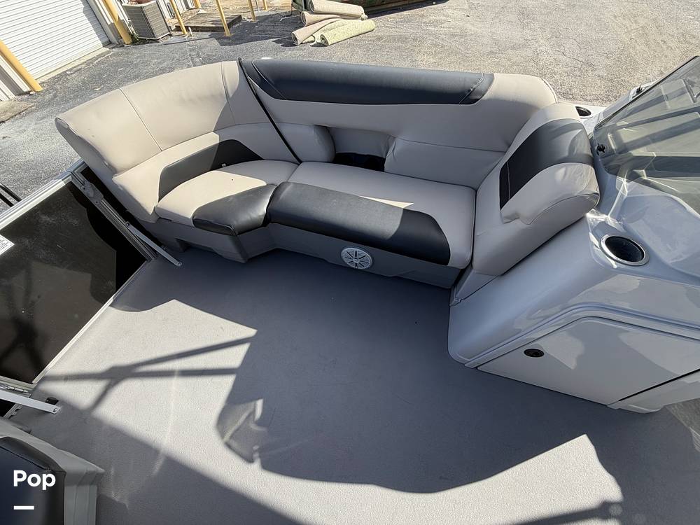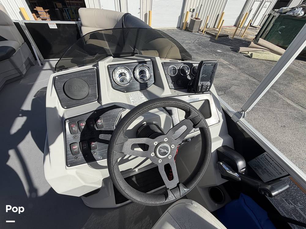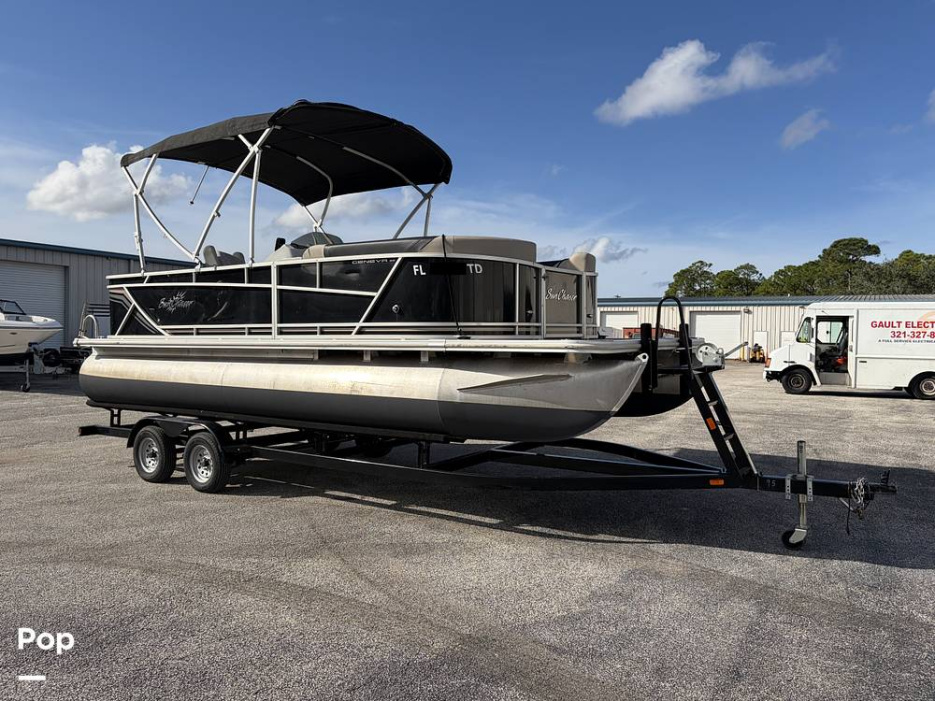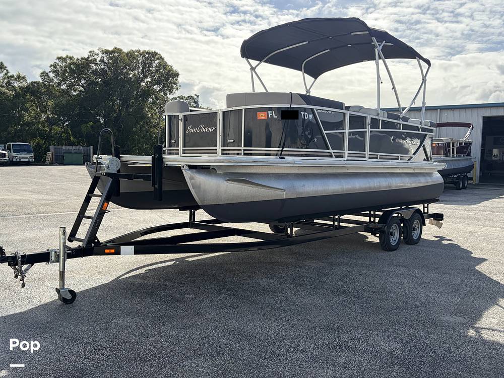 This Sunchaser design is perfect for families and friends with tons of seating and room! It has a Boss stereo, gauges, a Bimini top, Garmin electronics, and more!