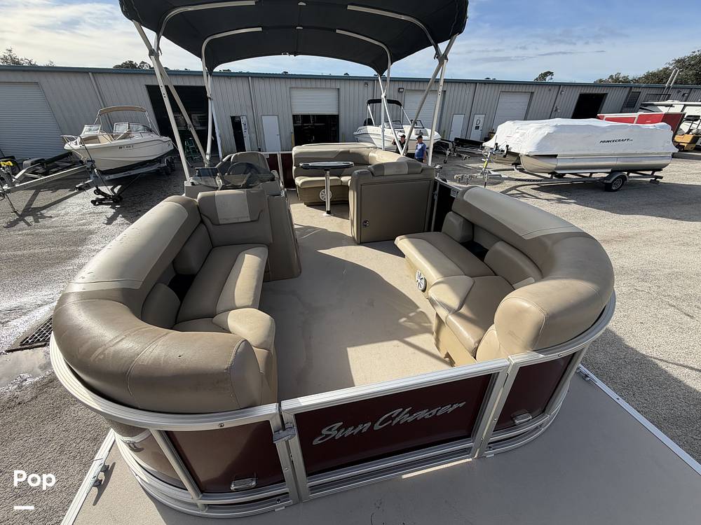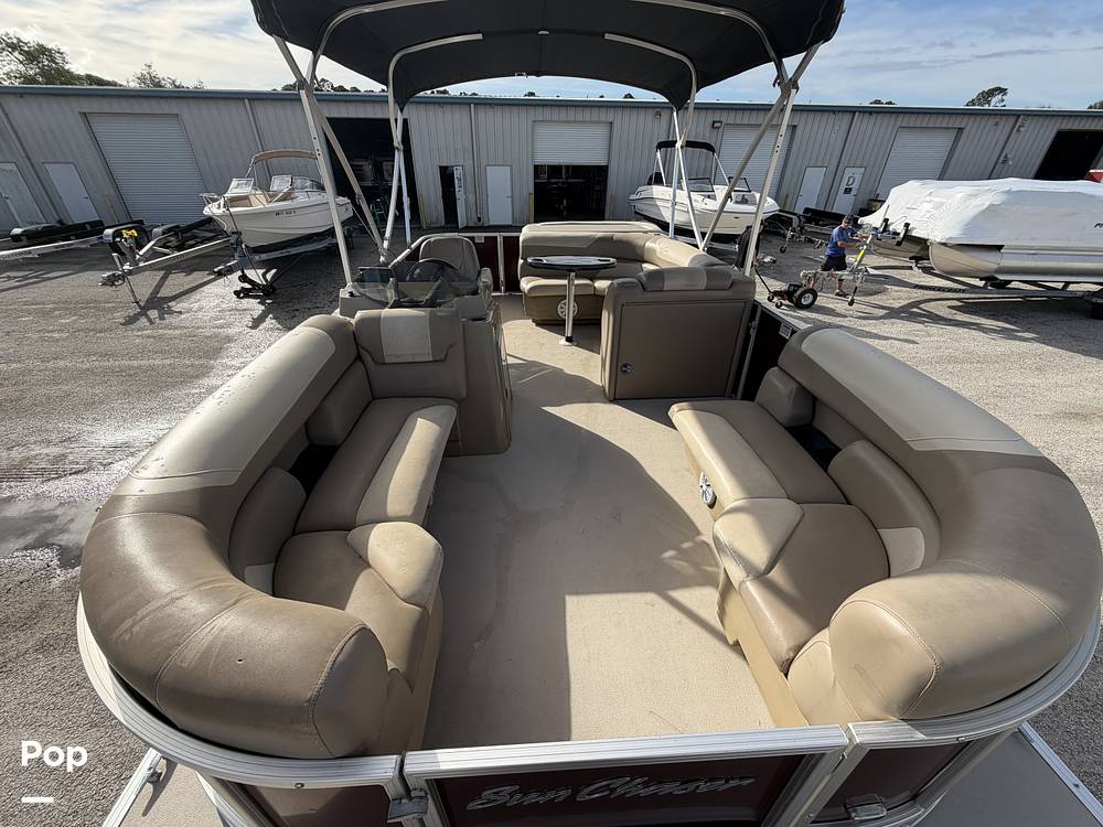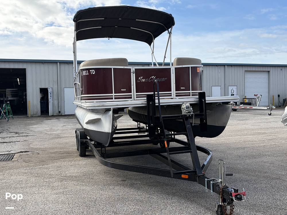 This Sunchaser pontoon is perfect for friends and family with the large passenger capacity, tons of seating, bimini top, and more!