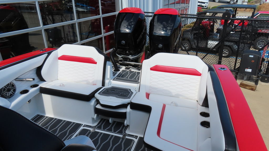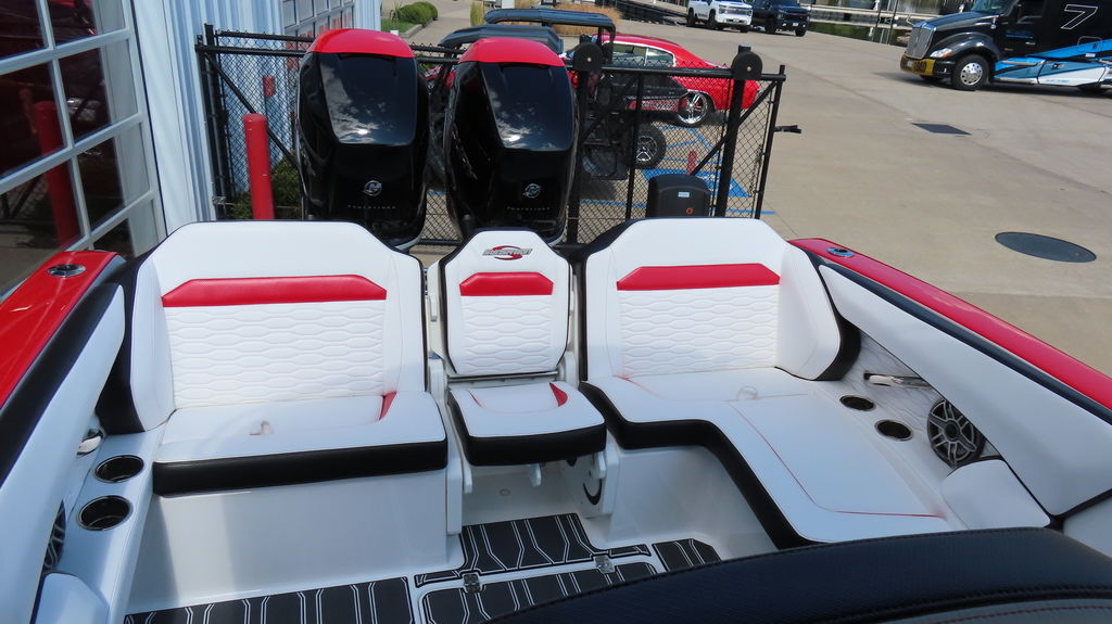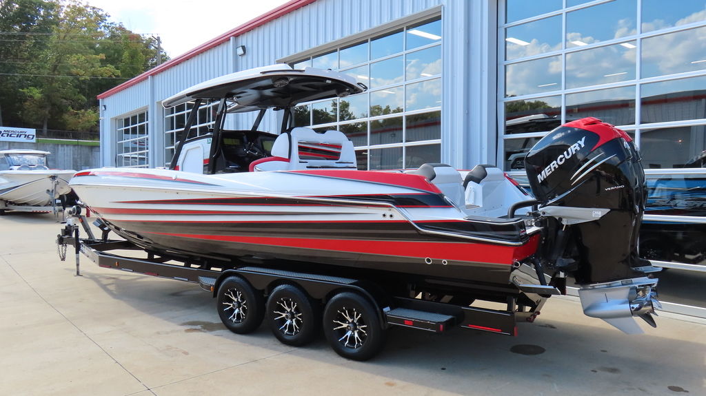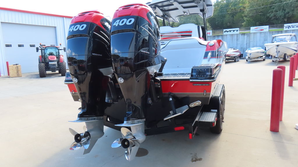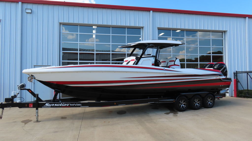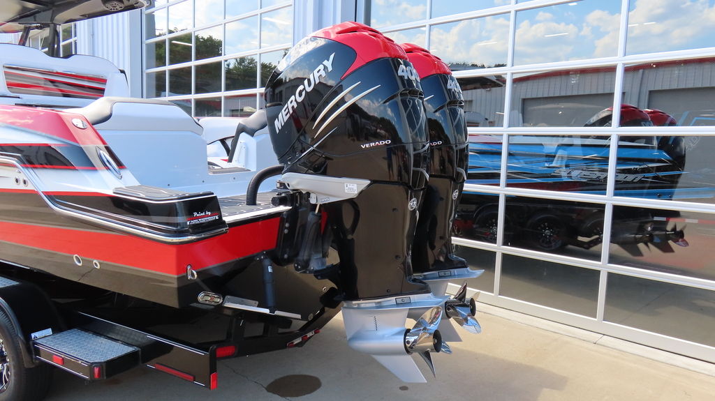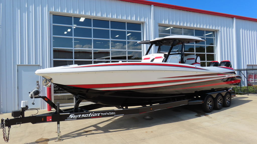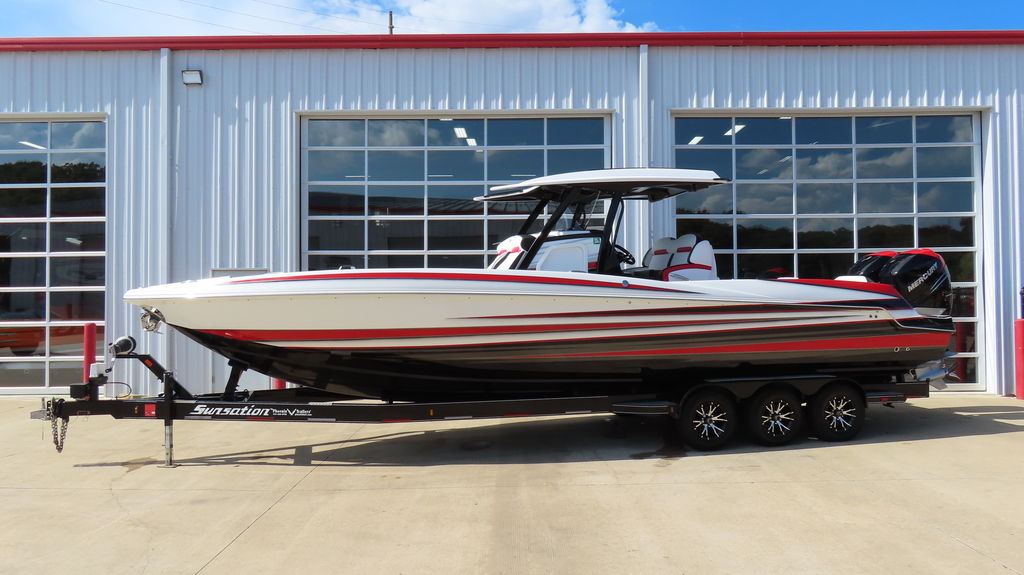 2022 Sunsation 32ccx powered by Twin Mercury 400 Verado with only 174 hours, Custom paint by Performance, 2- Garmin GPS, Mercury Vesselview, Tilt steering wheel, Mercury DTS, Billet push button controls, Windless anchor, Trim Tabs, Fusions stereo with JL components, Bow stereo remote with usb charging station, Sea deck flooring, Cabin with porti potty, Led lighting, Led lit cupholders, Underwater lights, Battery charger, Flip down helm bolsters, Full cover, Painted phoenix steel trailer included