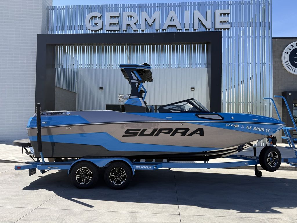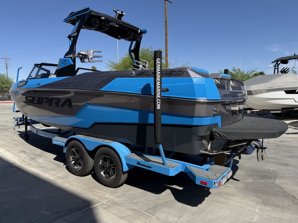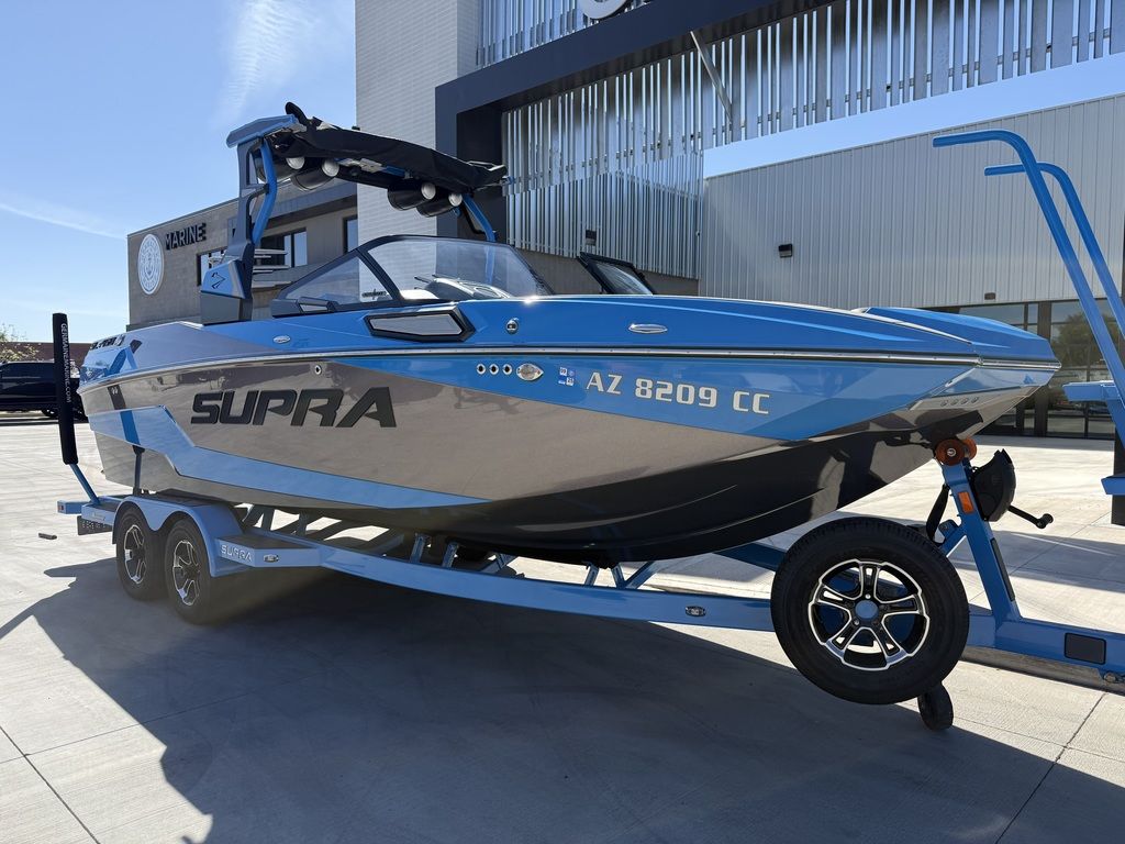 Overview Boat: 2022 Supra SL450 Trailer: 2022 Boatmate Tandem Axle with 5 brand-new Goodyear Endurance tires Hours: 216* (one-owner Arizona boat) Warranty: Factory warranty until April 2027 Condition: Like new, stored in a climate-controlled garage, ceramic coated, no damage and no stress cracksAccessories Included Mission Mat Obrien Three Person Tube Phase Five Skim Boards: Model X, Fish, Scamp Viland Designs Surf Style Surf Boards (2) Ronix RXT Wakeboard Slalom Ski Surf Ropes (3), Slalom Rope (1), Tube Rope (1) Flags (2), Life Jackets (10) Fire Extinguisher, Oar, Throw Cushion Babz Balls (4), Taylor Made Fenders (6) Shore Spike, Box Anchor w/Bungee Line Under Seat Coolers (2), In-Floor Custom Cooler 1250 lbs of Lead Dock Line, Cleaning SuppliesService History 20 Hour Service: June 2022 100 Hour Service: August 2023 Fuel Filter: April 2024 Spark Plugs / Ballast Impellors: June 2024 175 Hour Service: September 2024 Ballast Pump Impellors: July 2025 Full