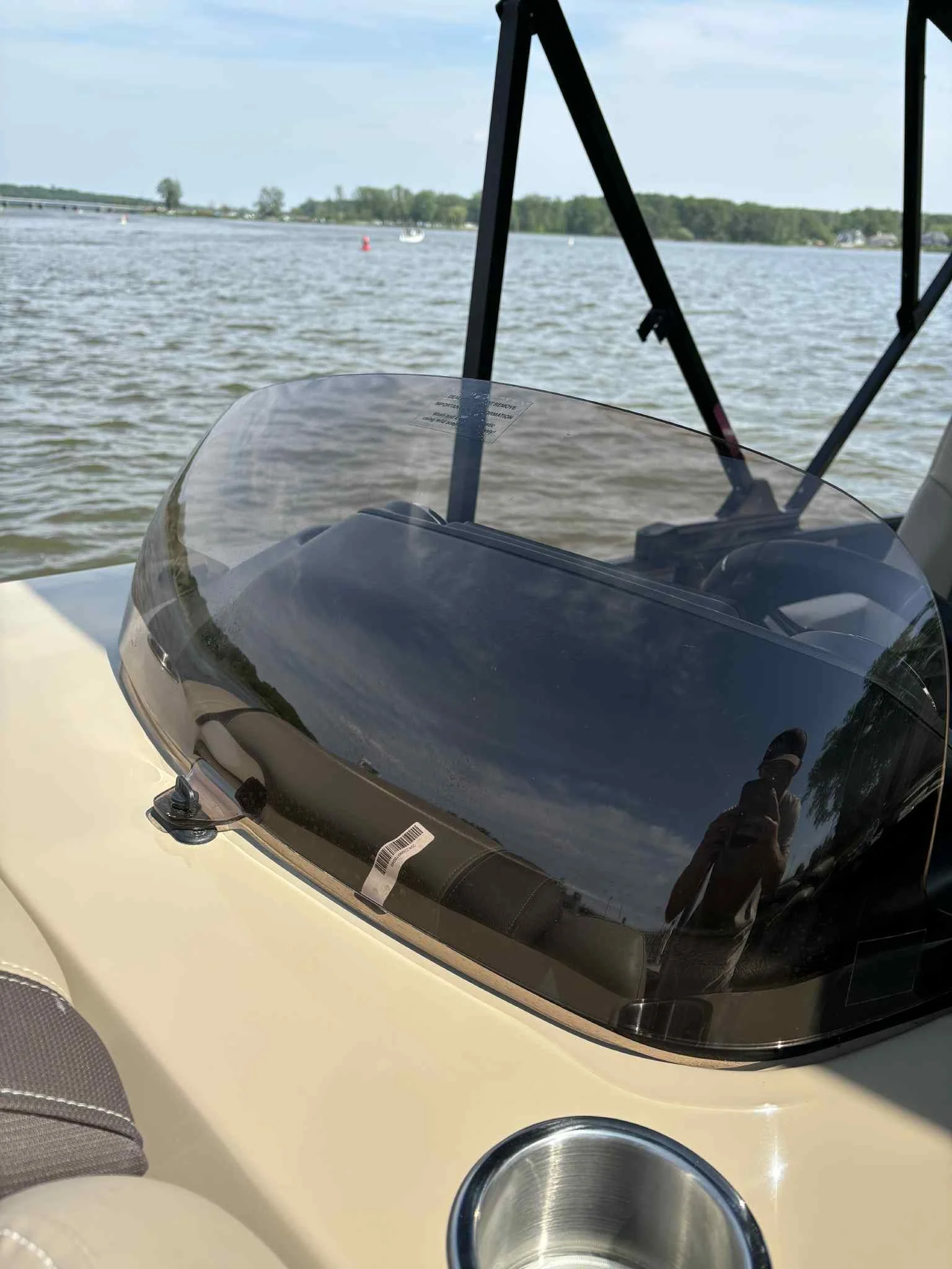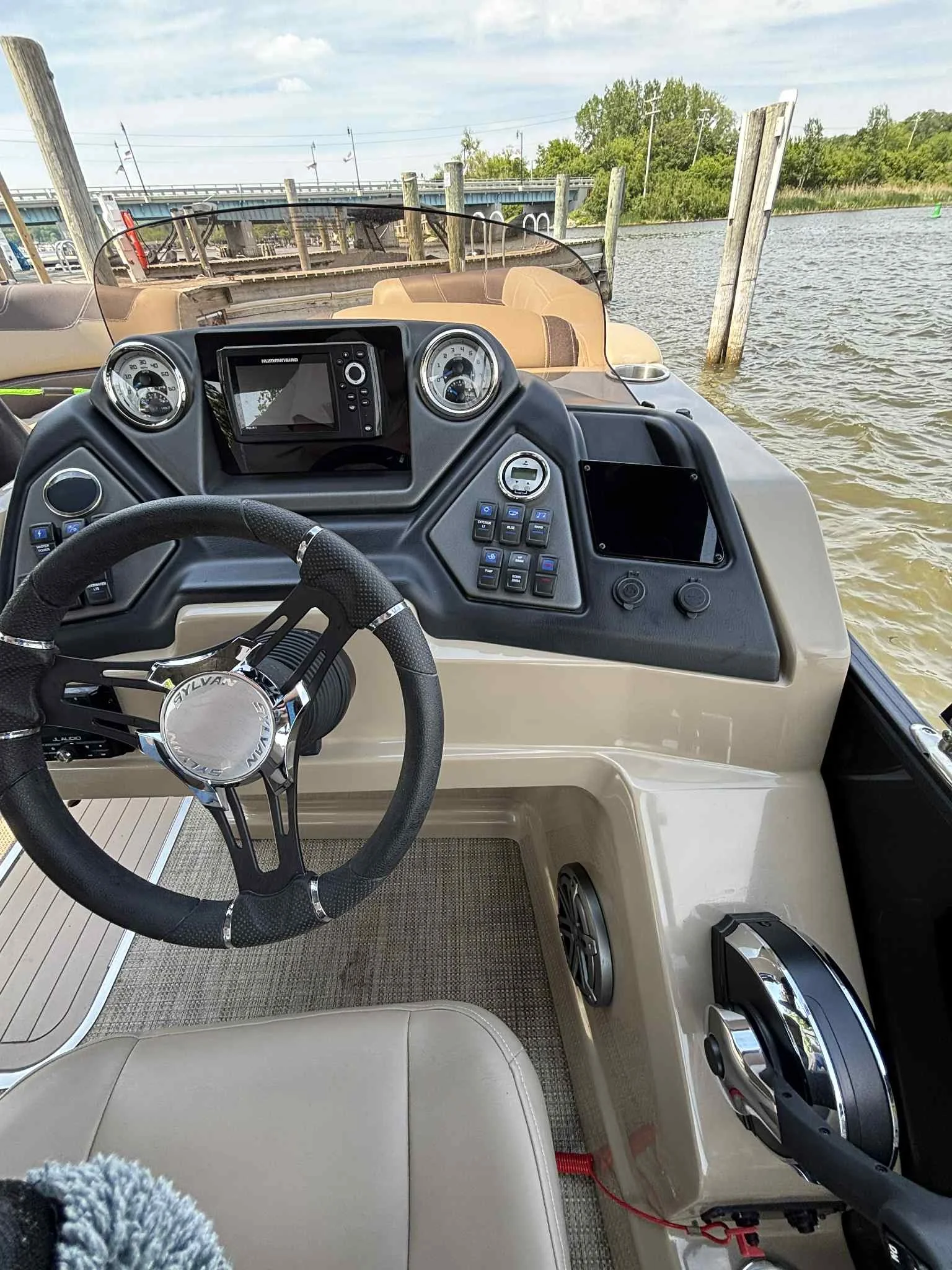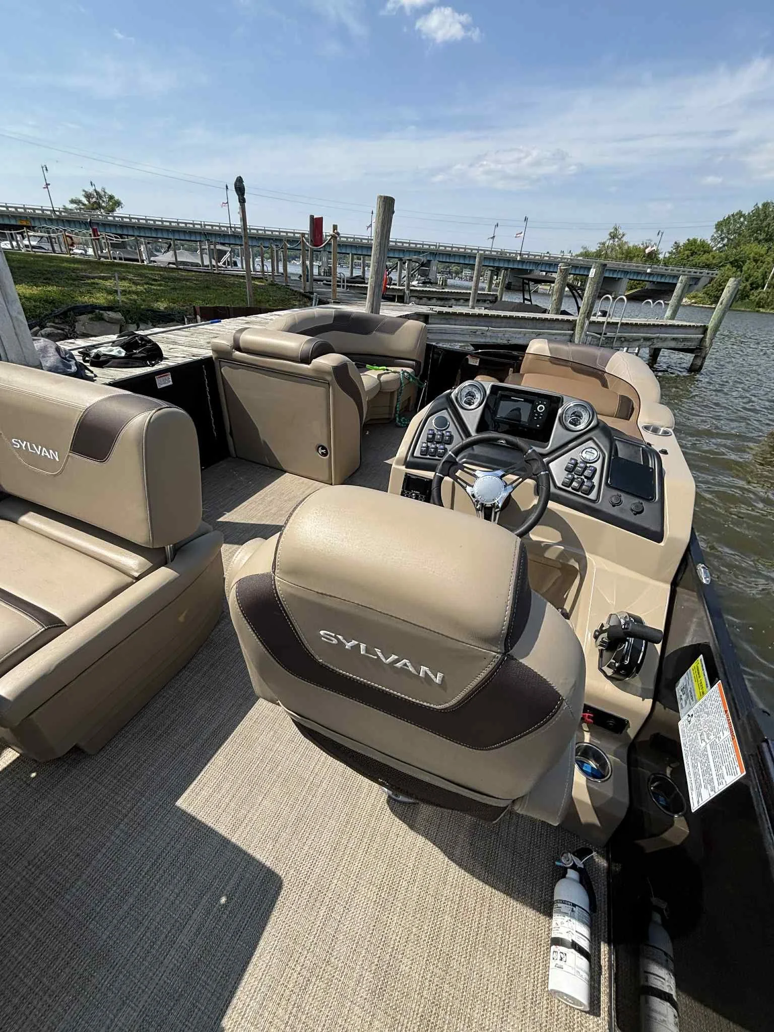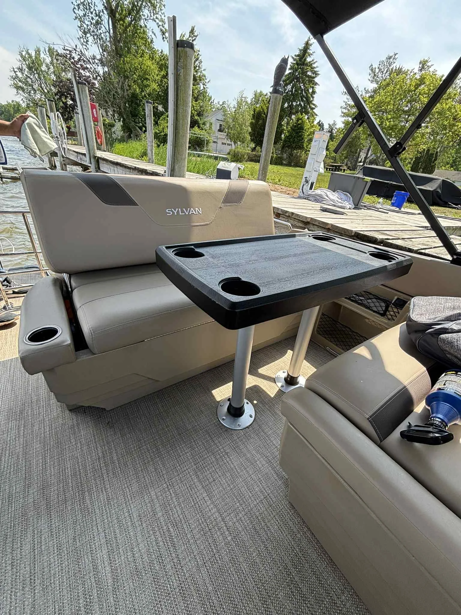 2022 Sylvan L1 DLZ Tritoon with Mercury 115hp Pro XS Outboard - The ultimate adventure awaits! Set sail in style with the 2022 Sylvan L1 DLZ Tritoon, powered by the reliable Mercury 115hp Pro XS Outboard. Whether you are cruising, fishing, or enjoying a day of watersports, this boat is built for performance and comfort. Equipped with a power bimini top for effortless sun protection and a full playpen cover to keep everything clean and dry when docked, this boat is designed to make every outing easy and enjoyable. You will also enjoy convenient features like a depth finder to keep you safe on the water, lighted cup holders for nighttime ambiance at the helm, and sleek black rails that add a touch of modern style. Don't wait, make the most of your time on the water with a boat that is built to impress. Financing available!