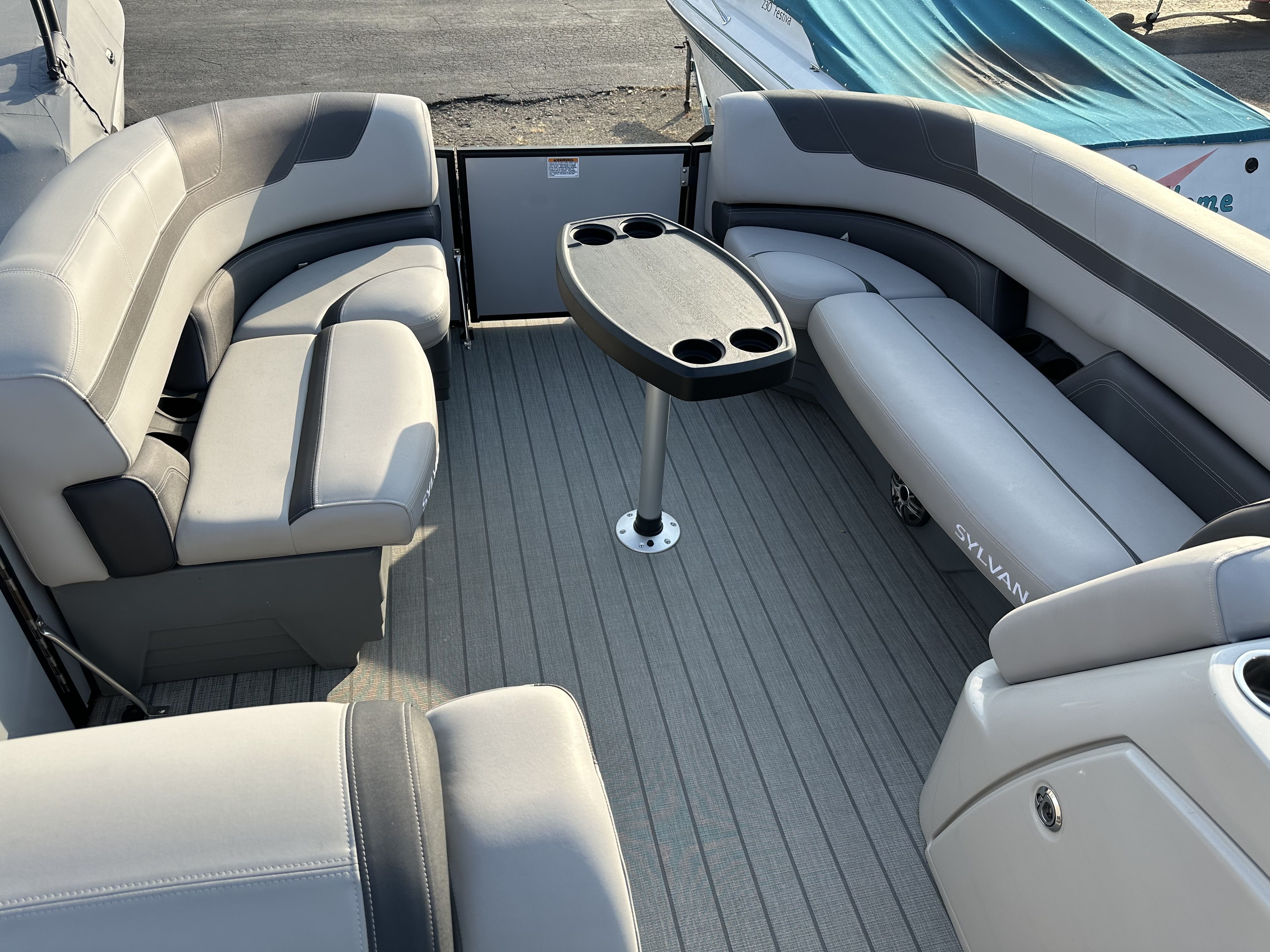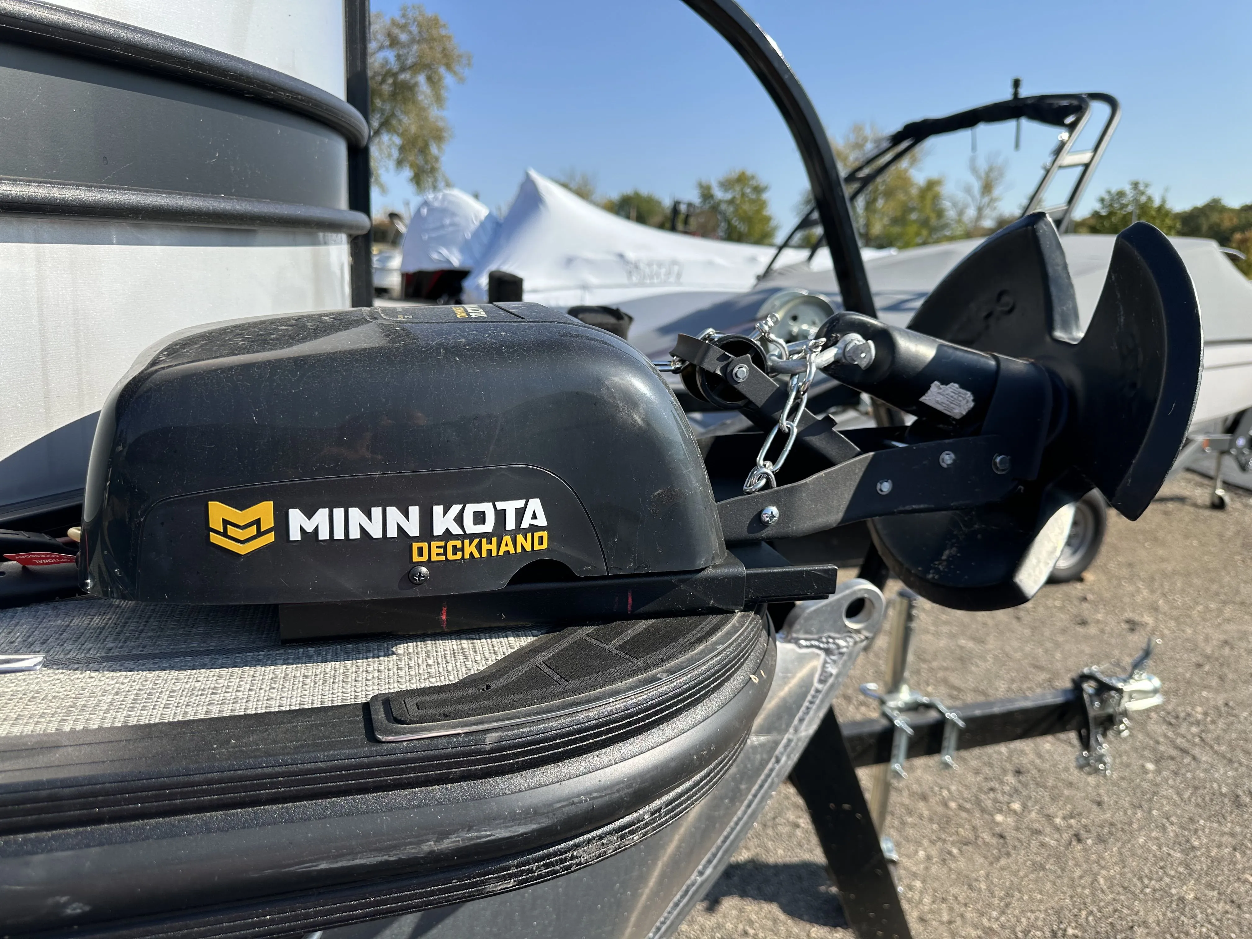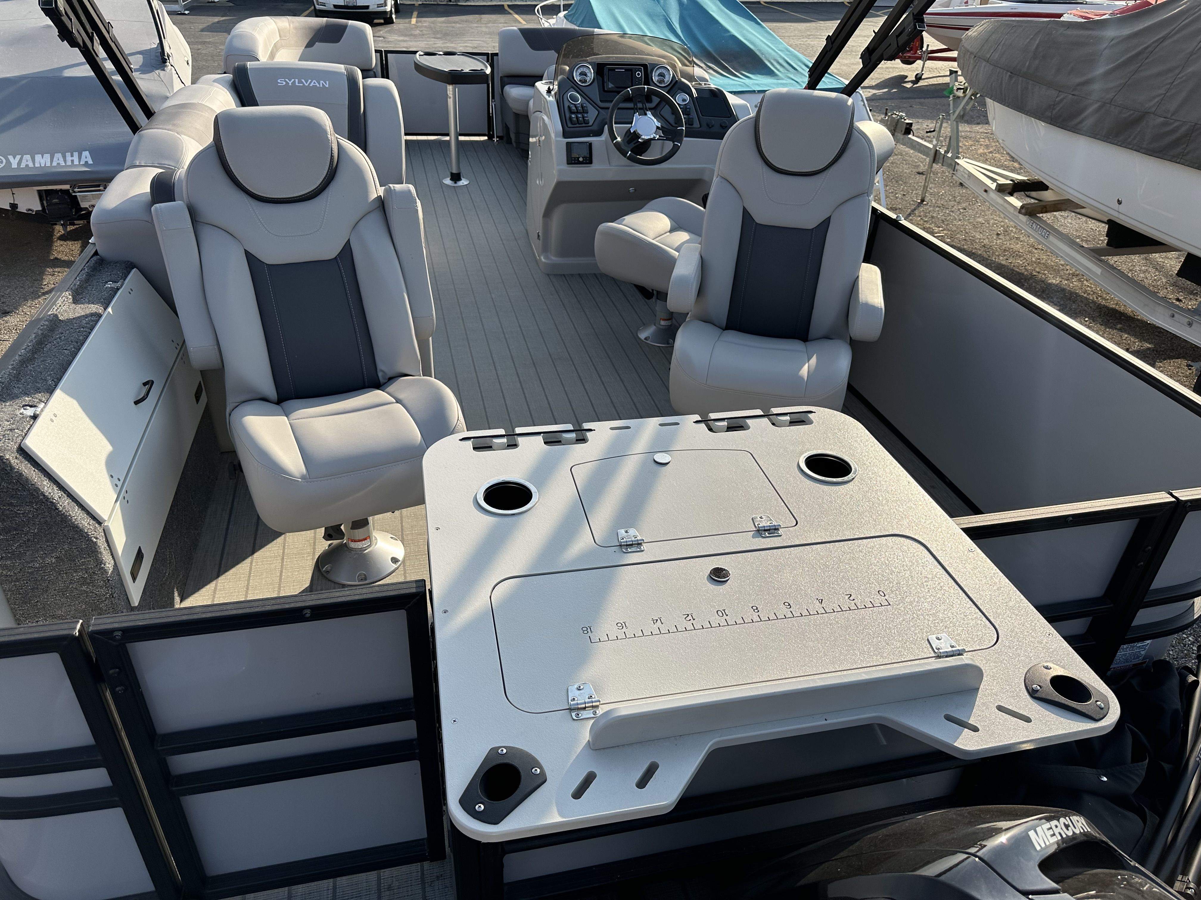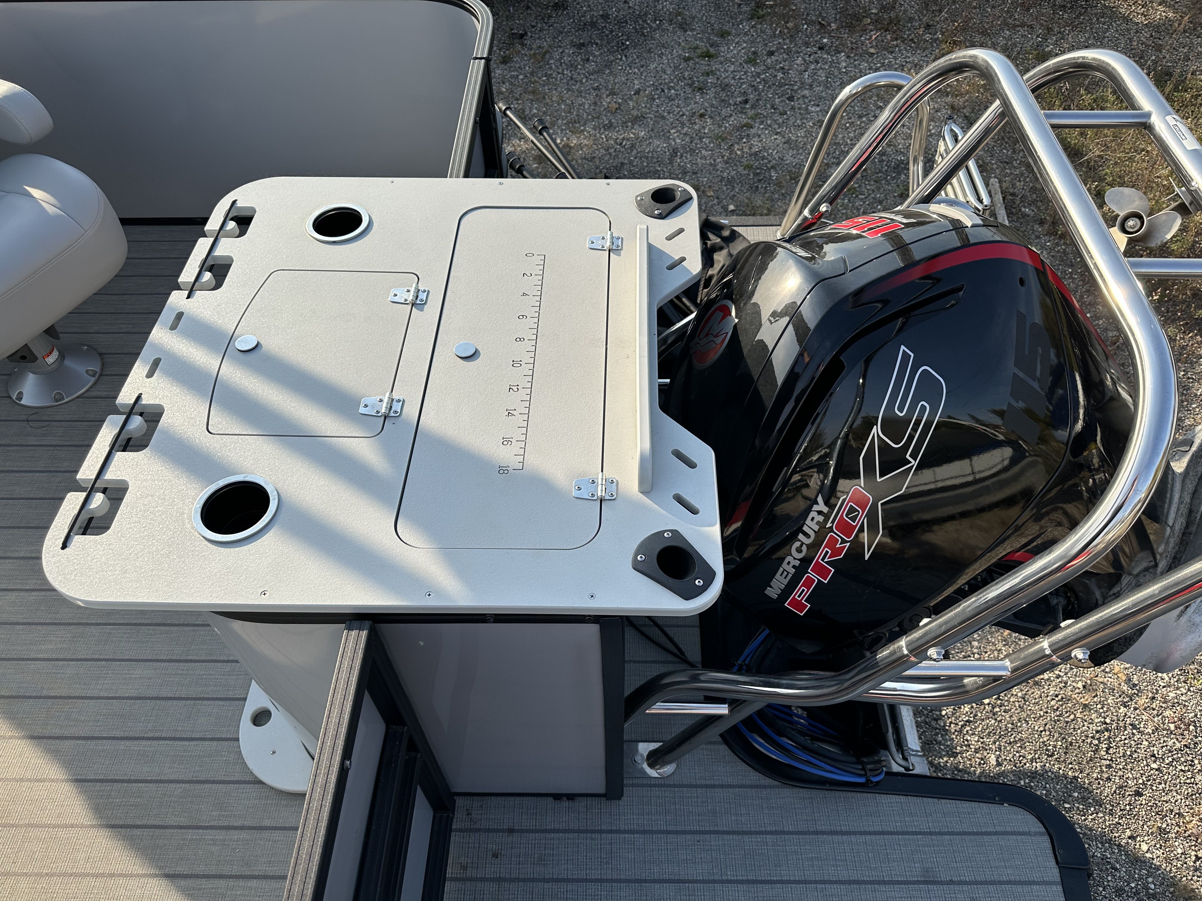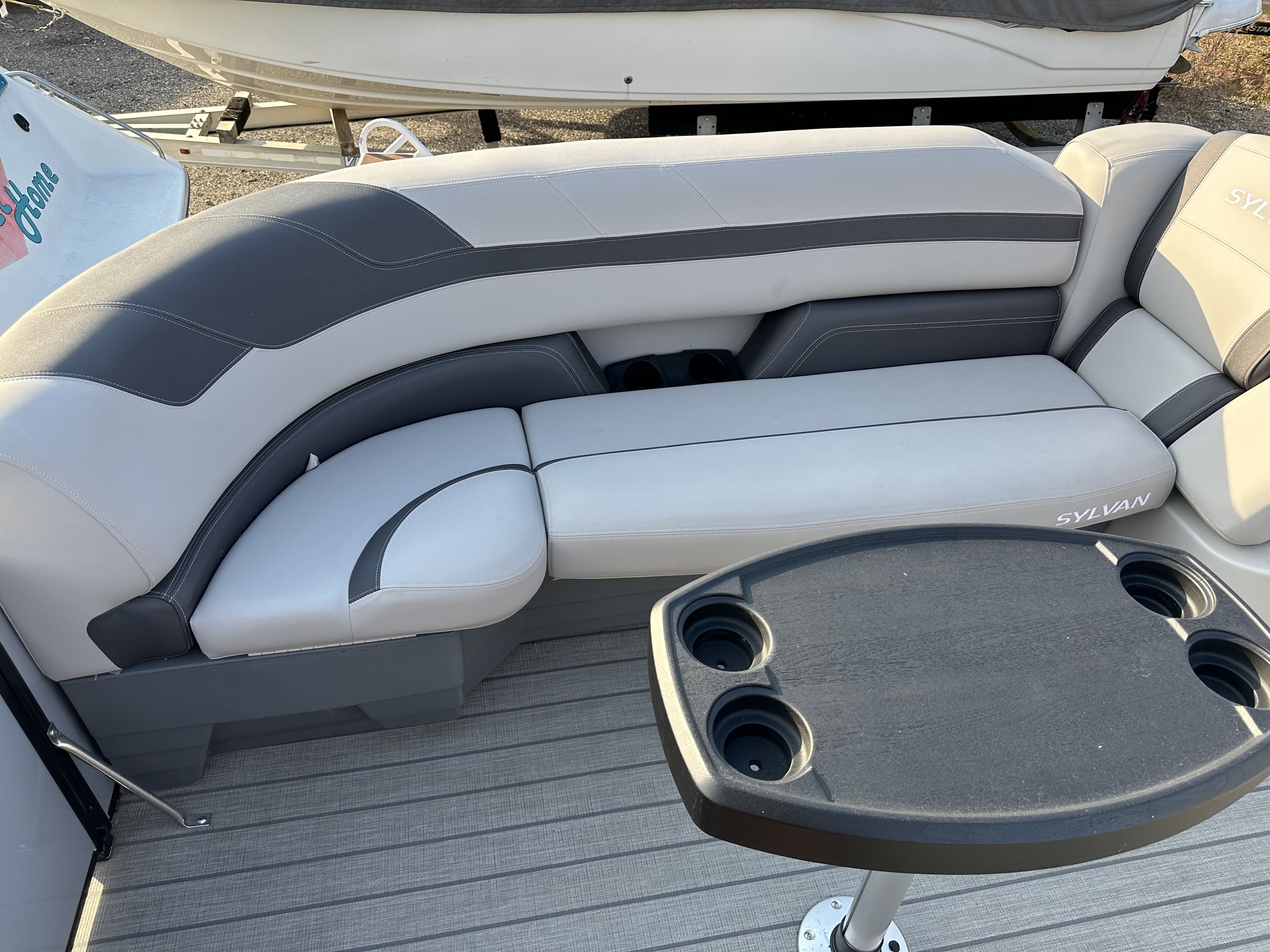 Lightly used! The Sylvan party Fish pontoon is great as a family friendly fishing boat. Equipped with a dedicated fishing station, remote powered MinnKota deckhand electric anchor, power bimini top, ski tow and plush high back chairs. Powered by Mercury 115 ProXS with very little usage. Call today! Trades considered.