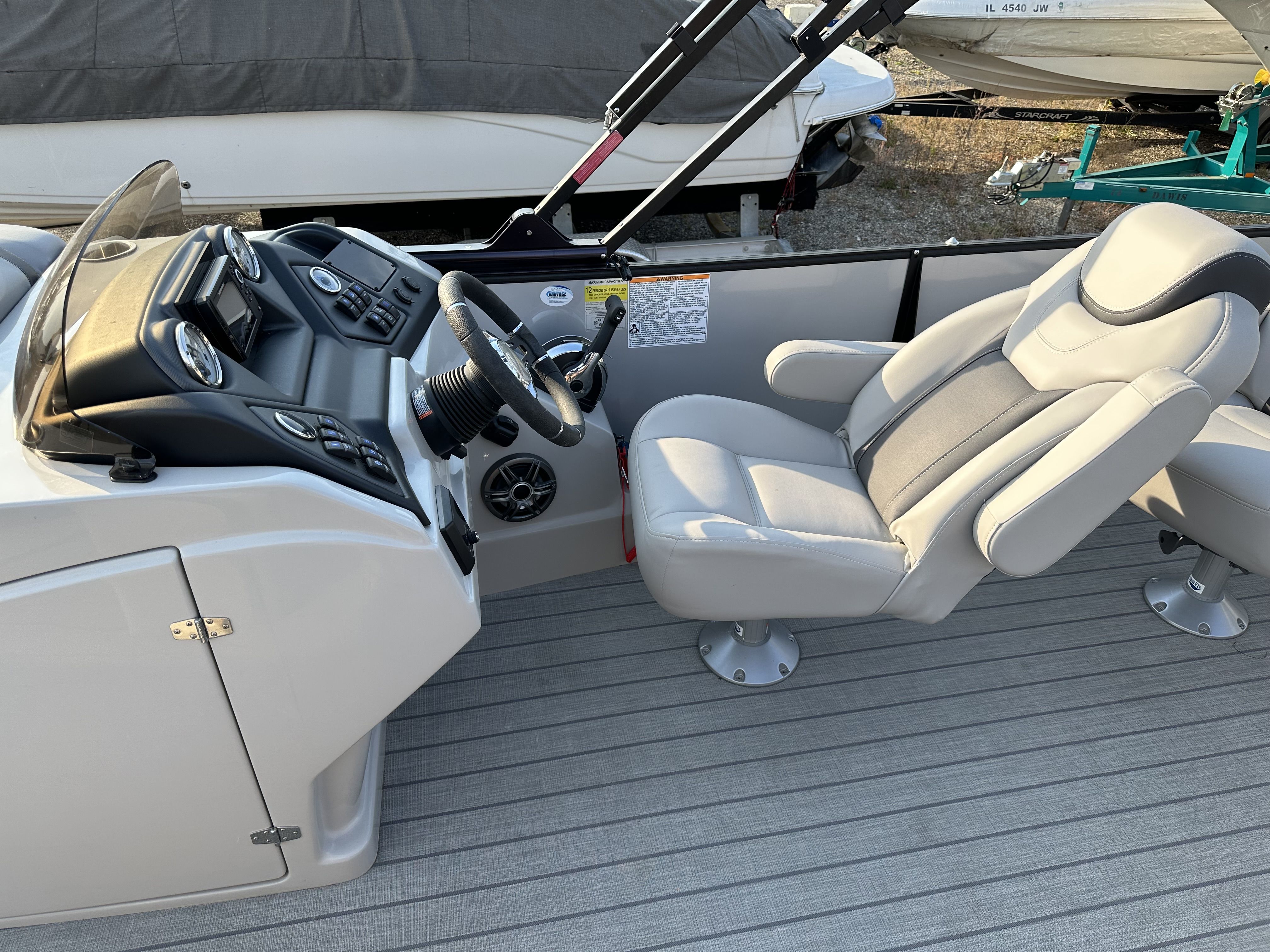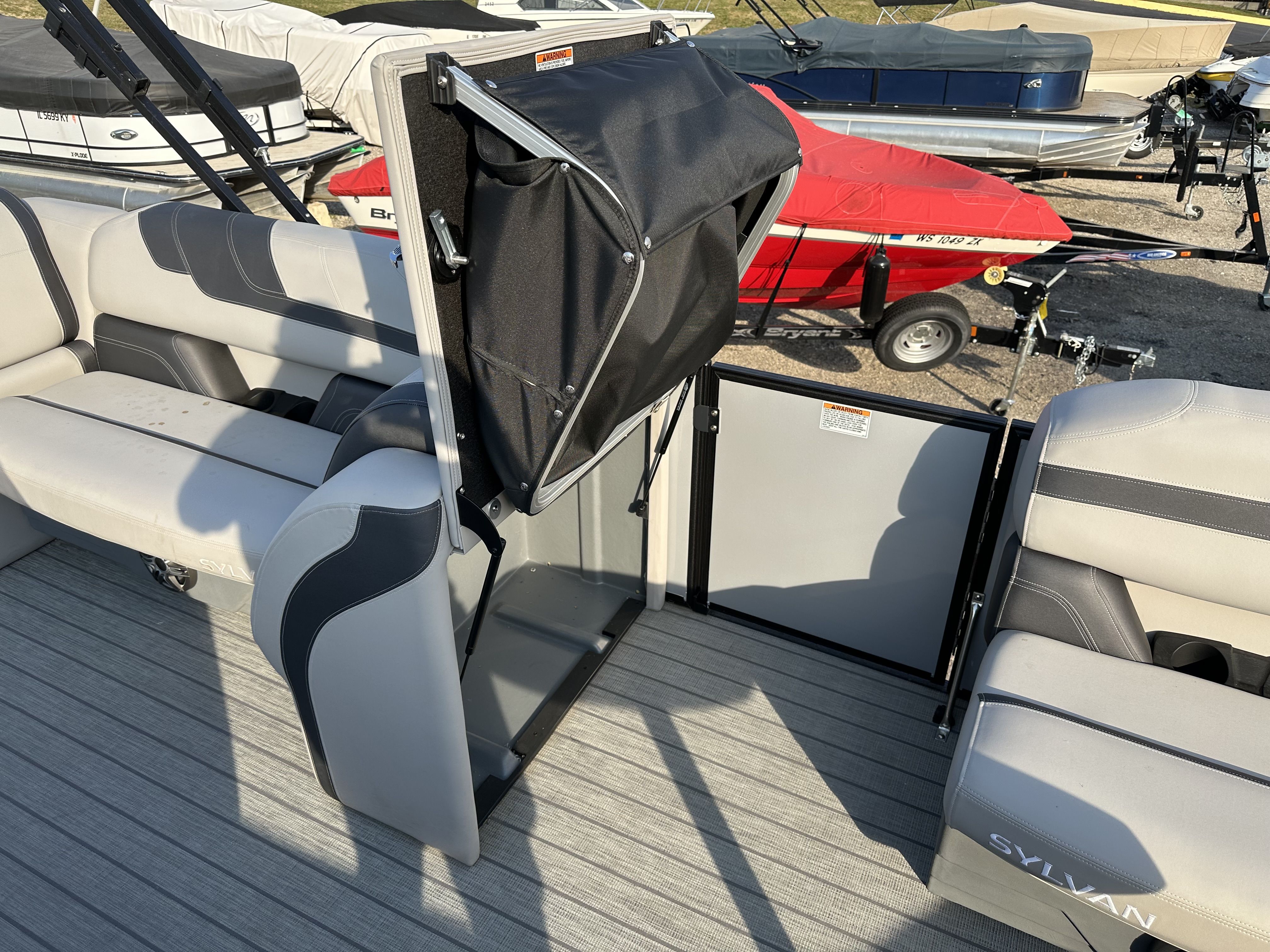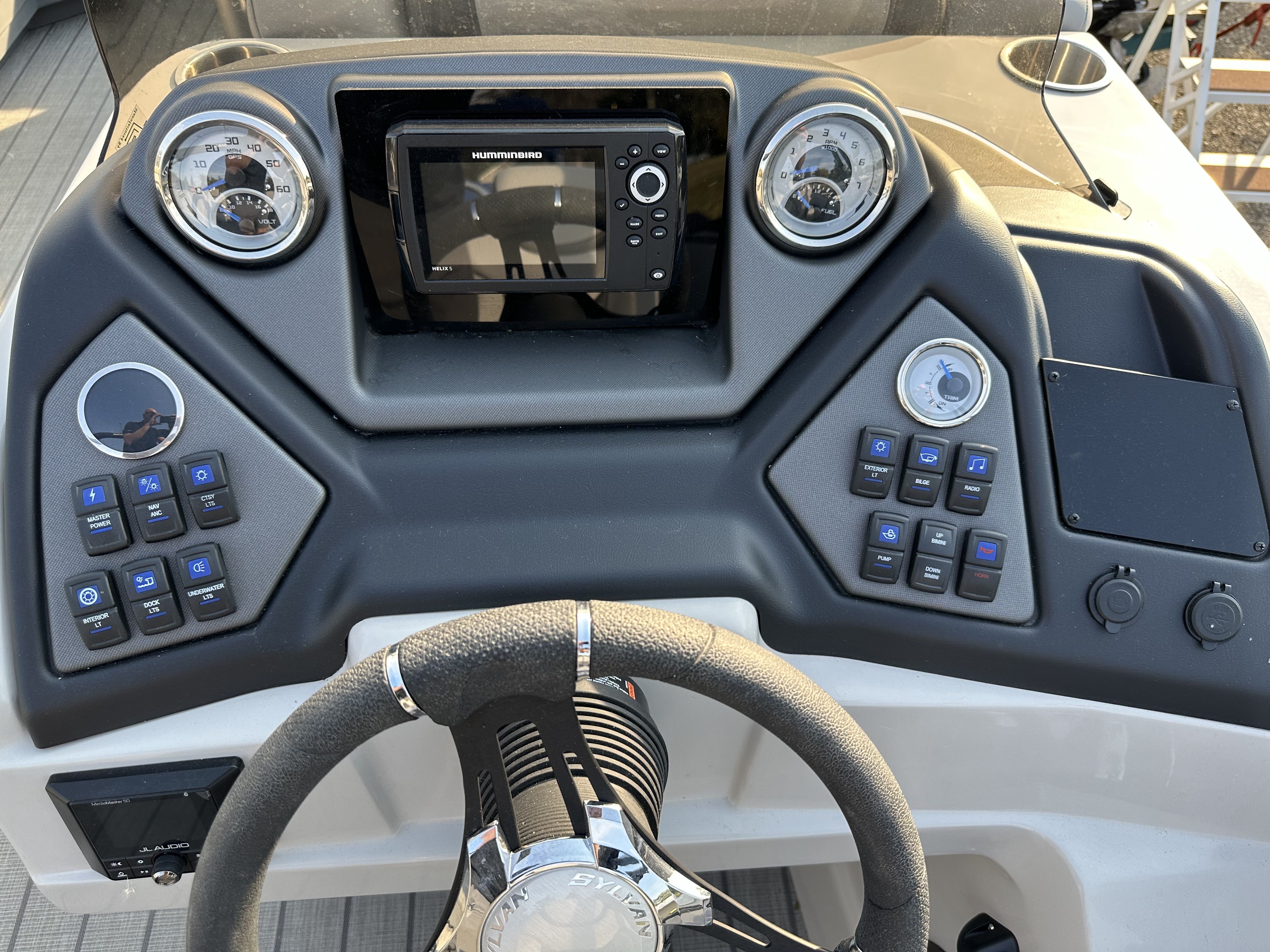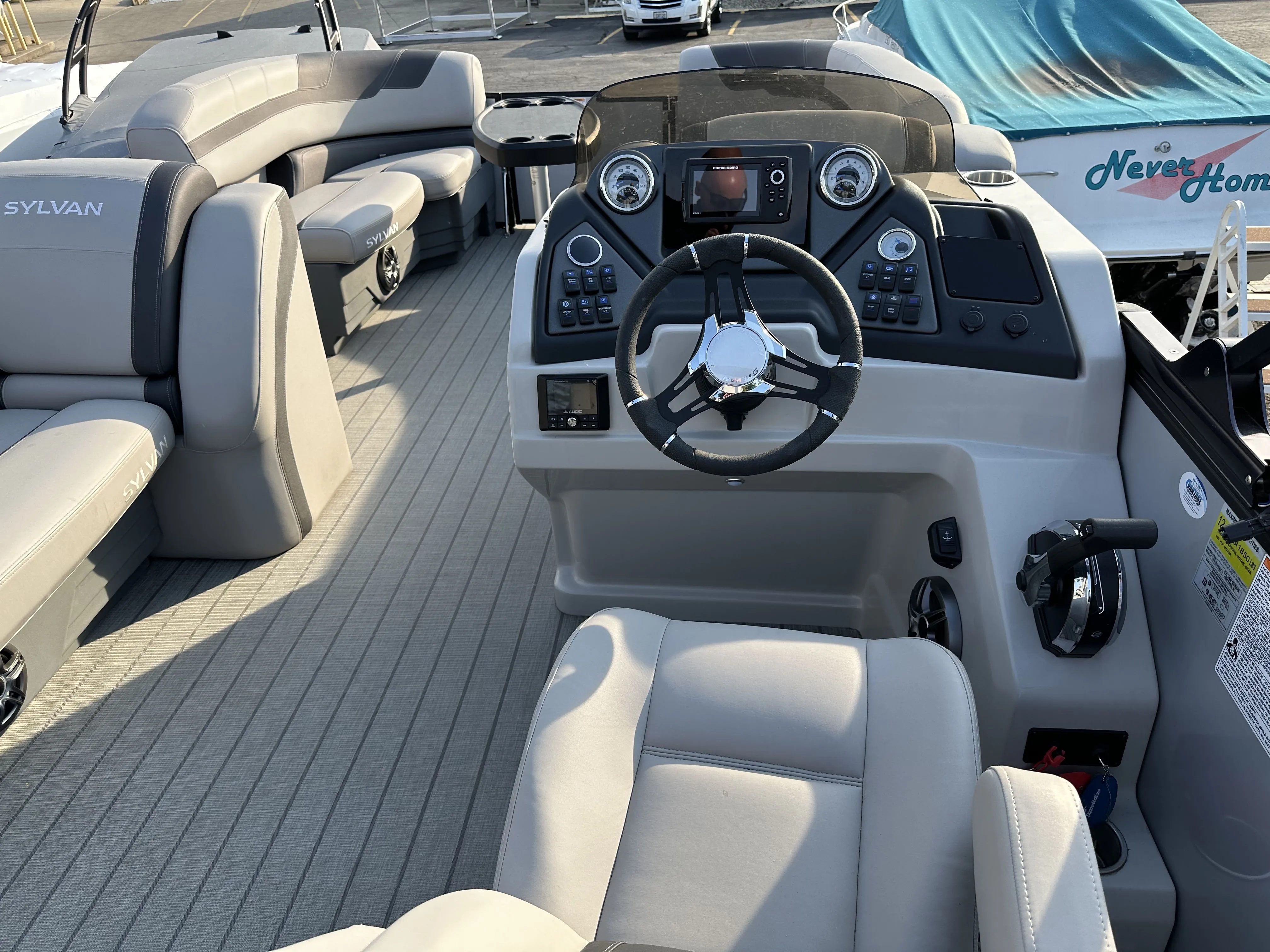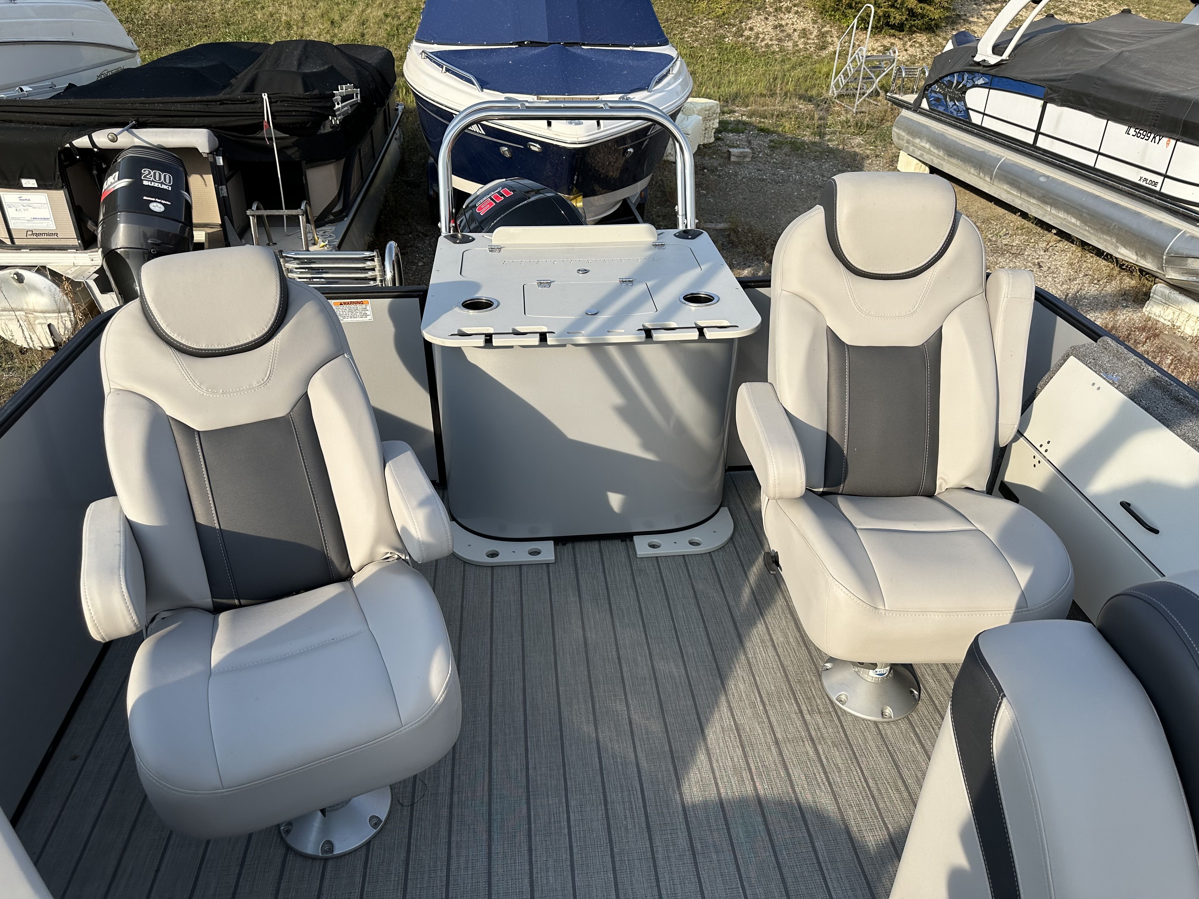 Lightly used! The Sylvan party Fish pontoon is great as a family friendly fishing boat. Equipped with a dedicated fishing station, remote powered MinnKota deckhand electric anchor, power bimini top, ski tow and plush high back chairs. Powered by Mercury 115 ProXS with very little usage. Call today! Trades considered.