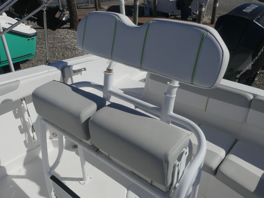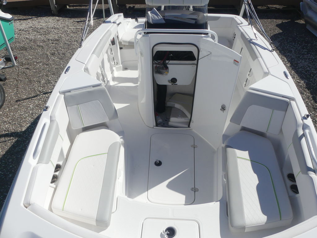 When it’s time to fish, the center console means you can cast and work your catch from all sides of the boat without anything getting in the way. Plus, the standard depthfinder reveals right where your catch it at. You can also lounge on the comfortable seating throughout, including under the standard Bimini top aft. Or, take a dip off the fore and aft swim platforms—both with telescoping boarding ladders so you can reboard and do it again!