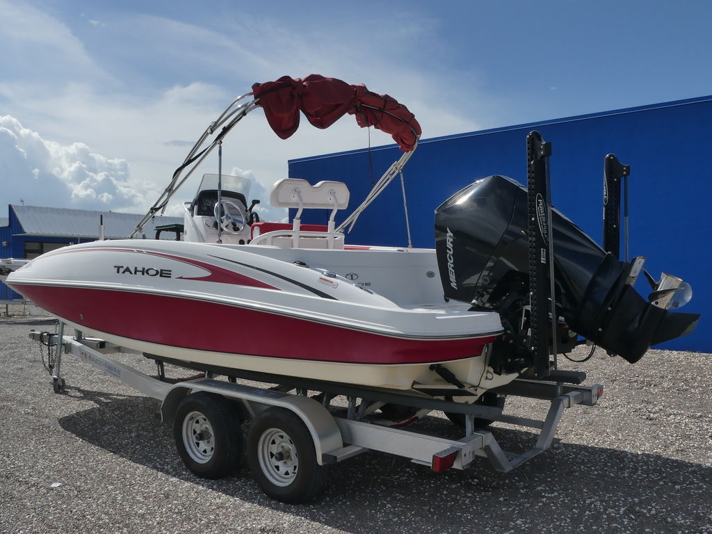 At 21’1” long with an 8’6” beam, this boat is loaded with plenty of seating space for everyone you want to share the fun with, as well as plenty of storage for all their gear. As with all TAHOE models, the storage compartments are even finished gelcoat to allow for easy cleanup. New features include a standard depthfinder, battery charger and a TRACKER® Lithium cranking battery for all-day reliability. With up to 225 horses on tap combined with a POWERGLIDE® hull designed for cruising and skiing, there will be no shortage of exhilaration.