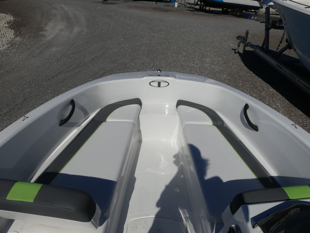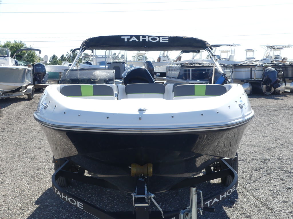 Featuring all-new composite construction, this TAHOE® is ready for a lifetime of fun and adventure. The T16 comes standard with an automatic bilge pump and a depthfinder that add capability to the spirited performance. Twin bow lounges open to reveal storages and the aft features a wide lounge that matches the cockpit bench seating with flip-open driver and passenger seats. Rounding out this package is a standard trailer and 60-horsepower Mercury® FourStroke for economical and reliable performance.