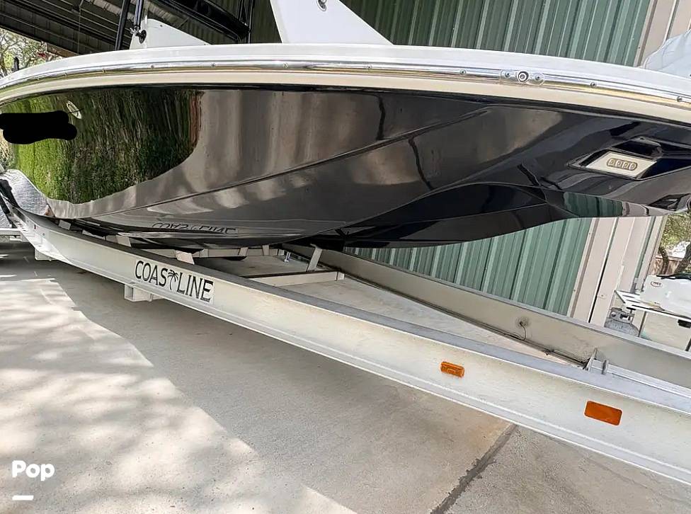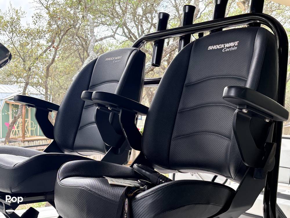 Designed with both performance and comfort in mind, the 2022 model includes Shockwave suspension helm seating, hydraulic steering, premium electronics displays, and trolling motor for shallow-water fishing setups. Features such as raw-water washdown, rod holders, powder-coated hardware, LED lighting, and JBL sound systems enhance usability and onboard comfort.