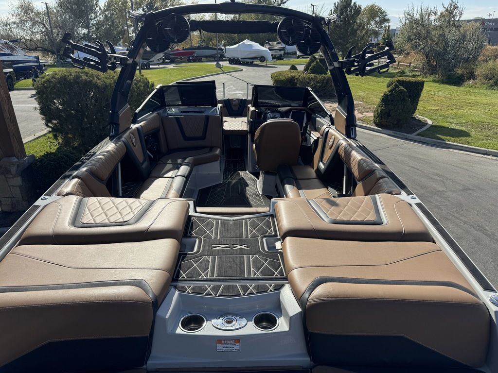 Discover huge performance, leading-edge tech, and head-turning design on the Tige 25ZX. The 25ZX may be big, but we paid attention to all the little things. With seating for 19 and ample storage, the 25-foot flagship will allow for your whole crew to come along for a day full of wakesurfing, wakeboarding, or skiing.