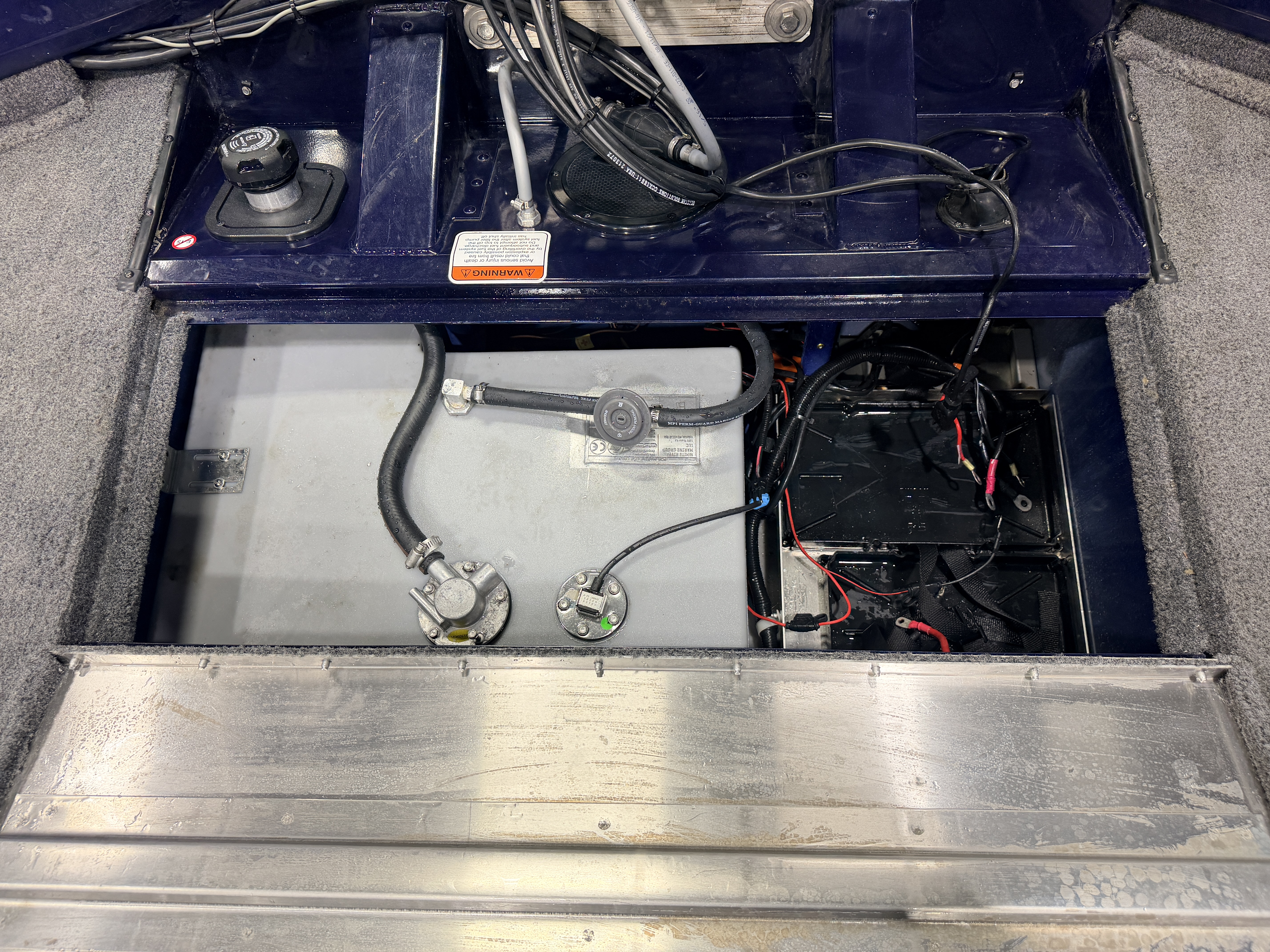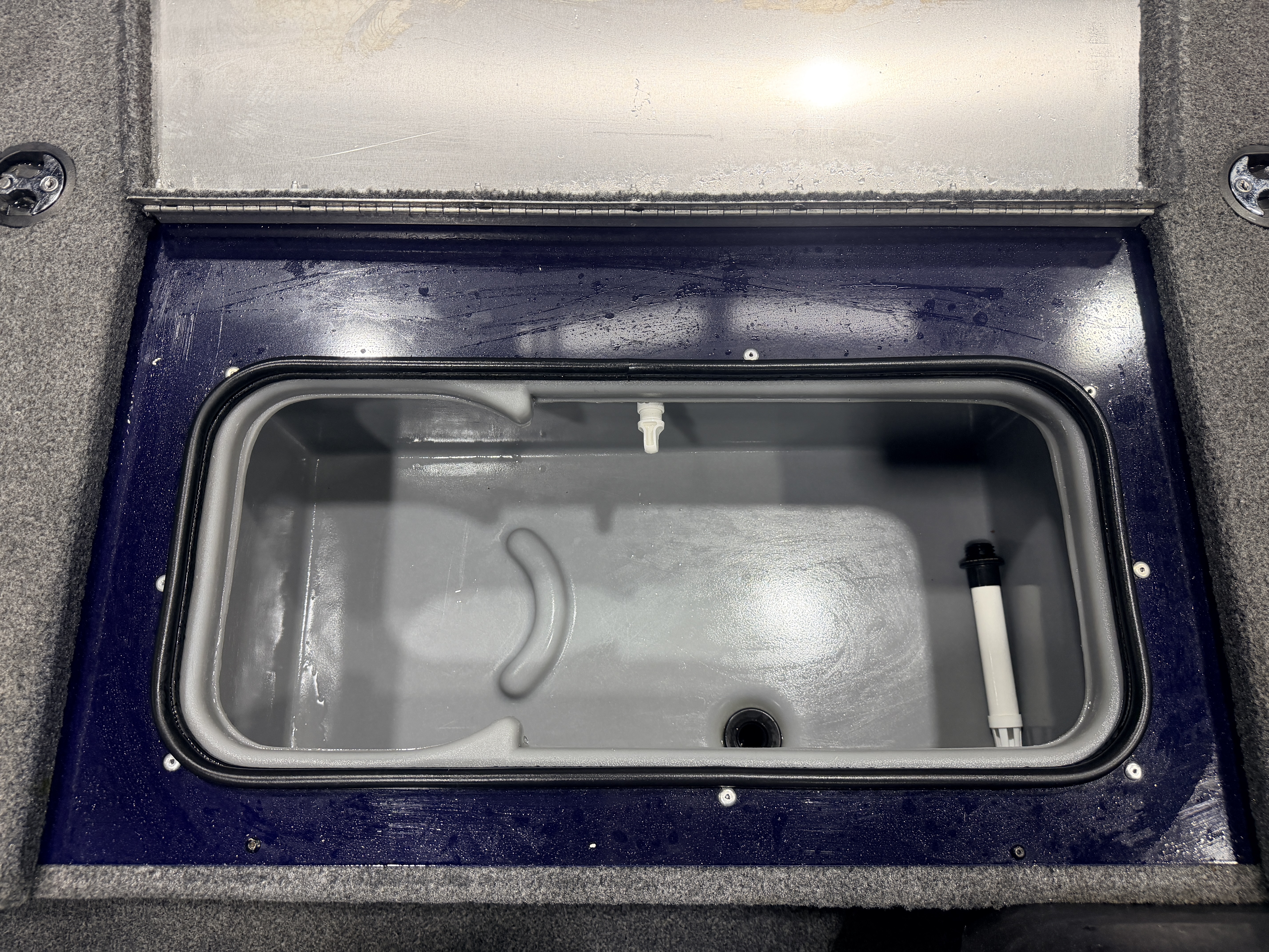 features 2 compartments with drains, a livewell and an access door to the fuel