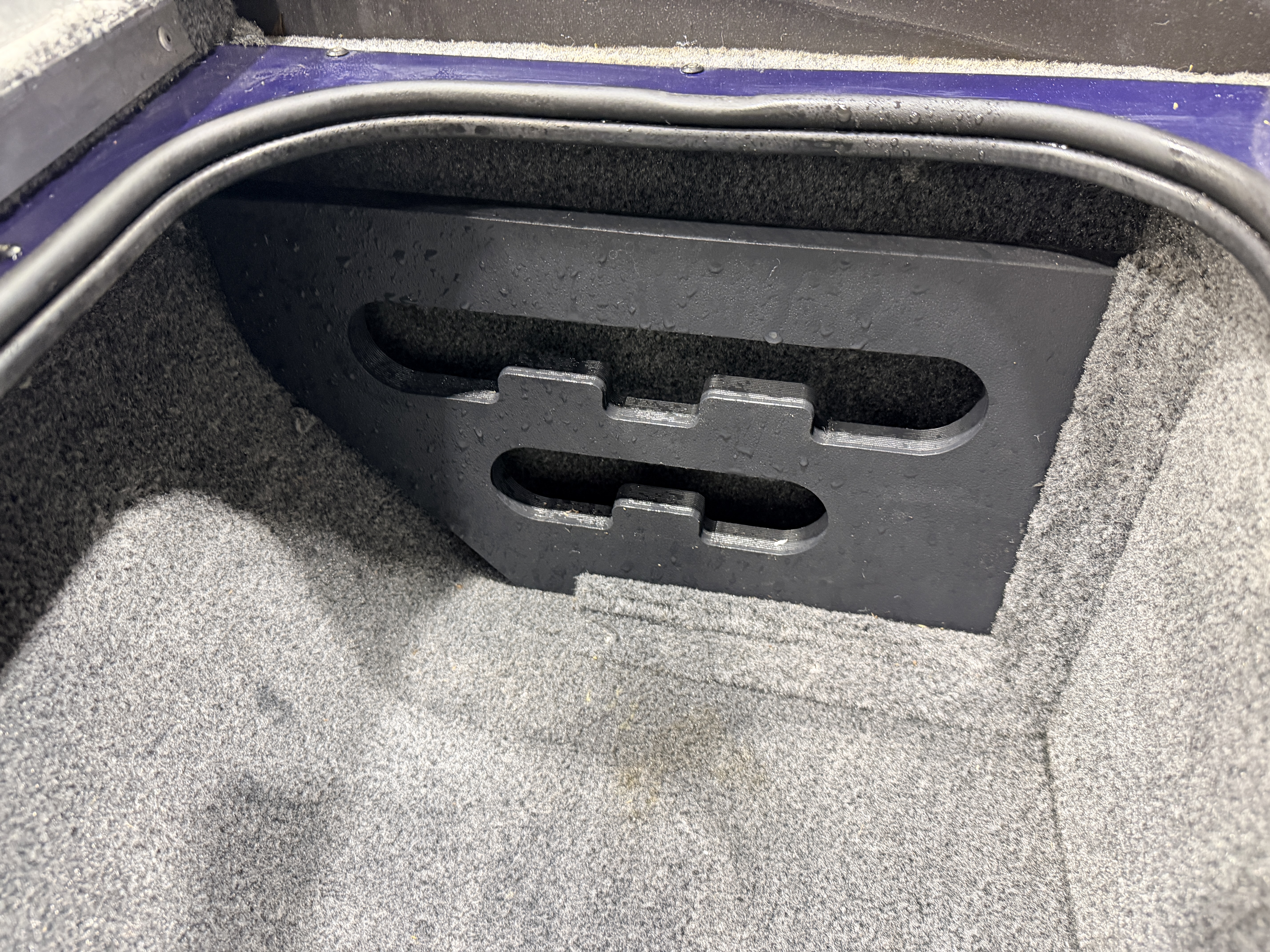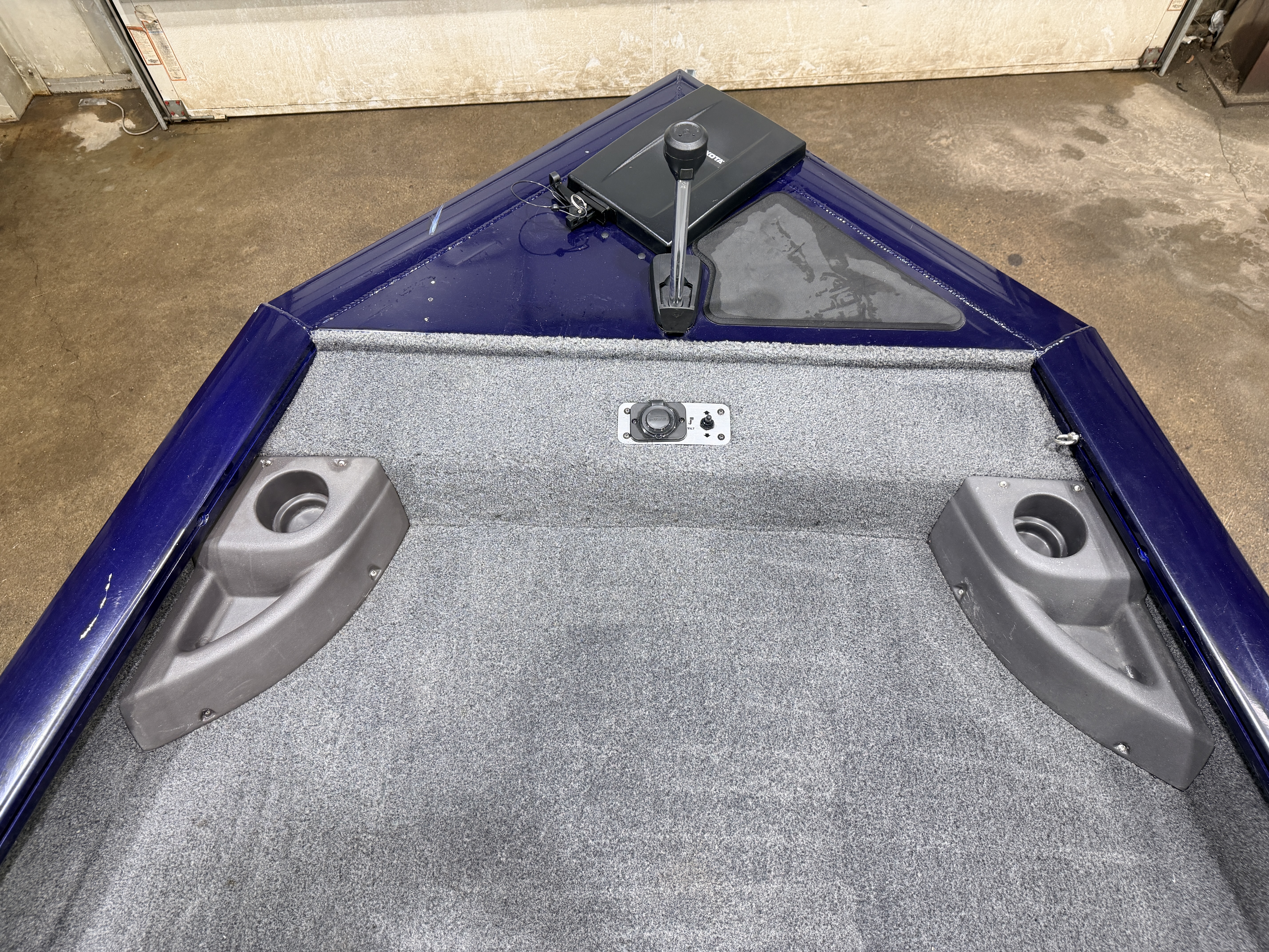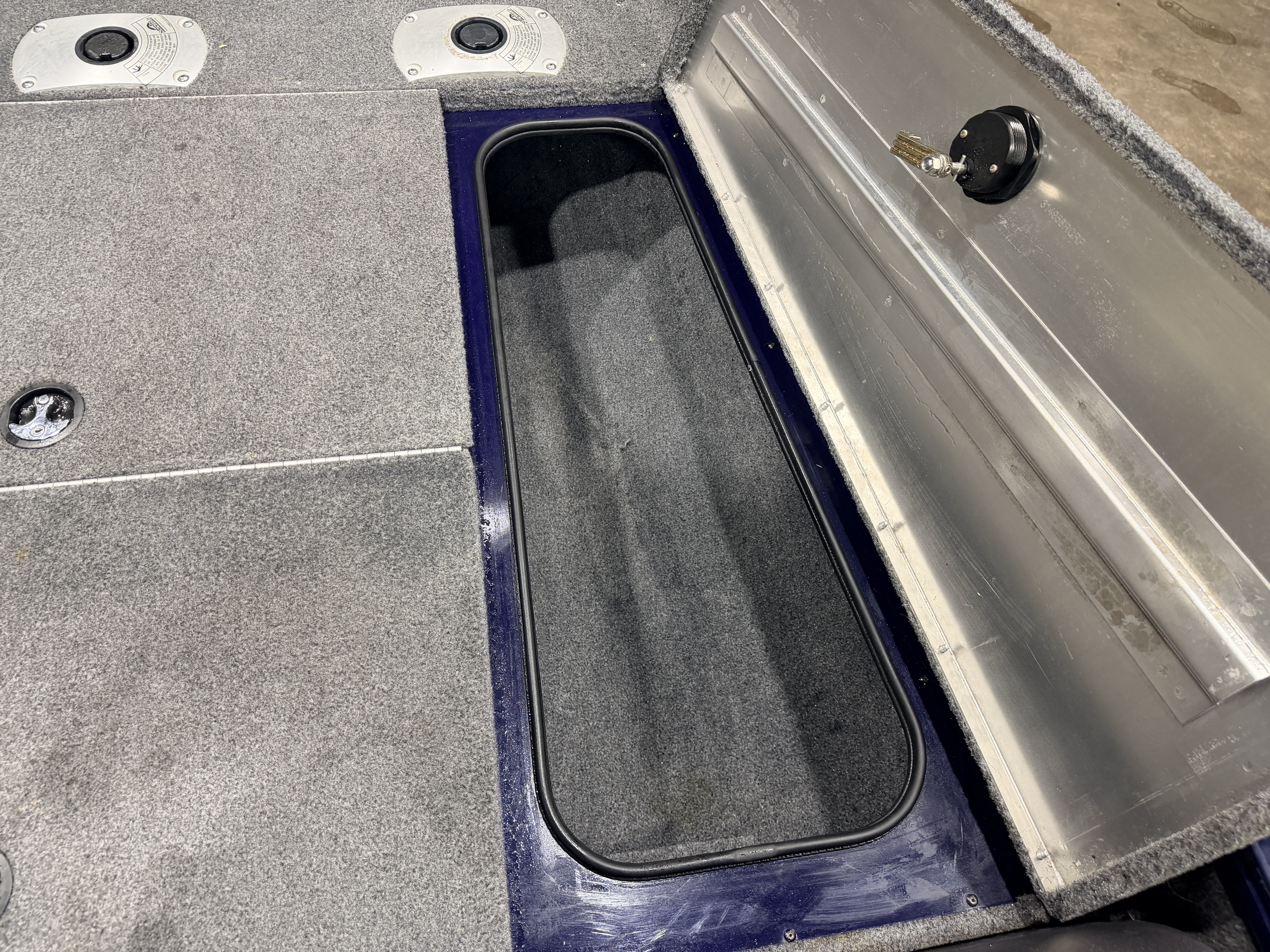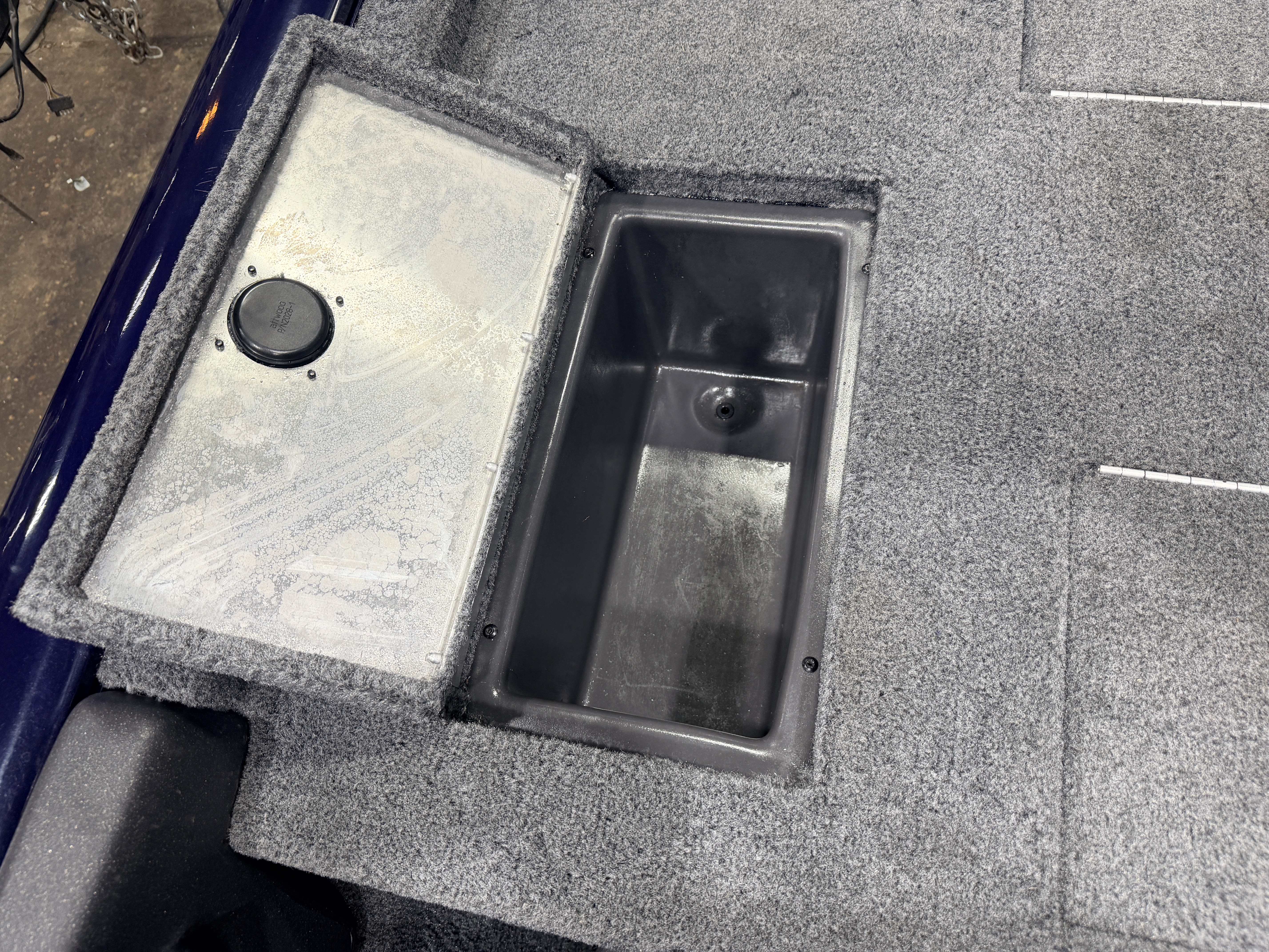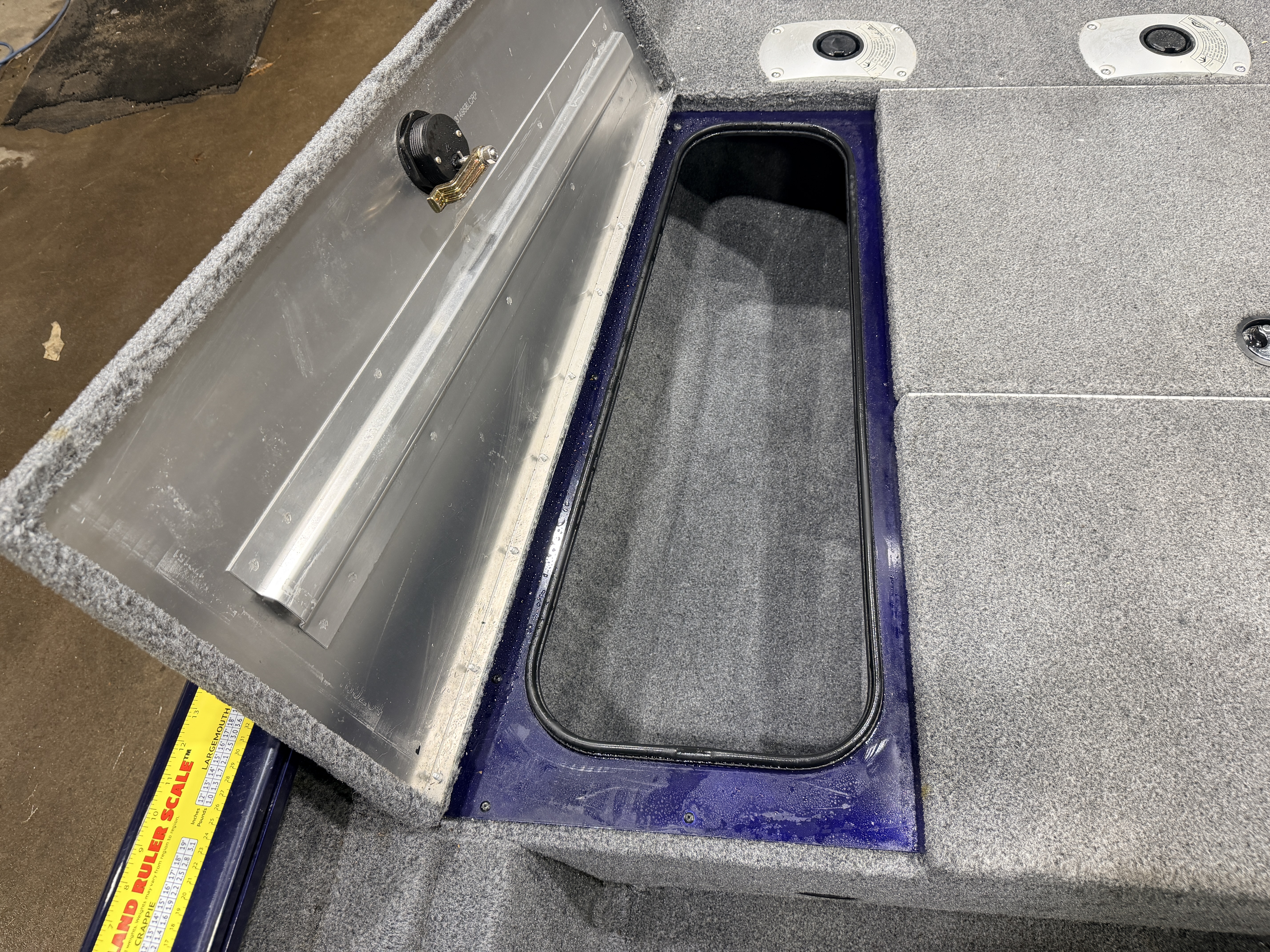 and a livewell. There is a mount plate for a trolling motor on the bow. There is