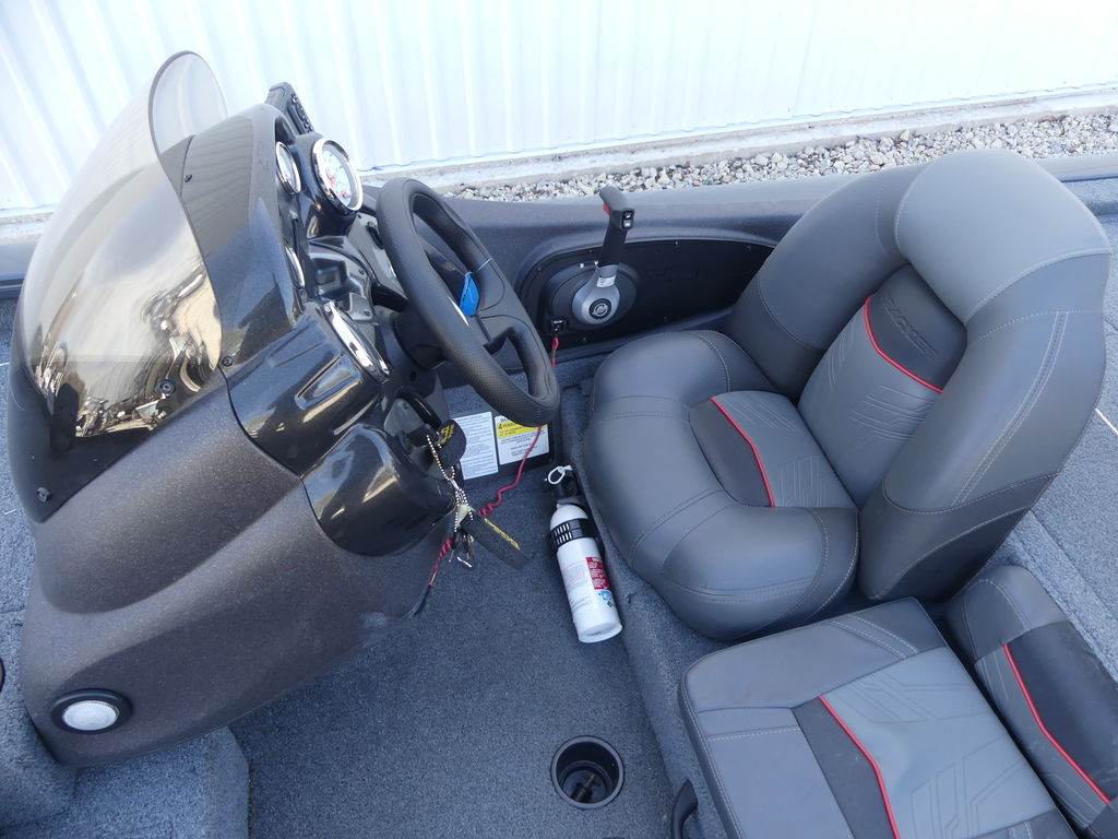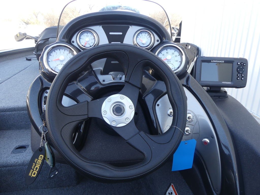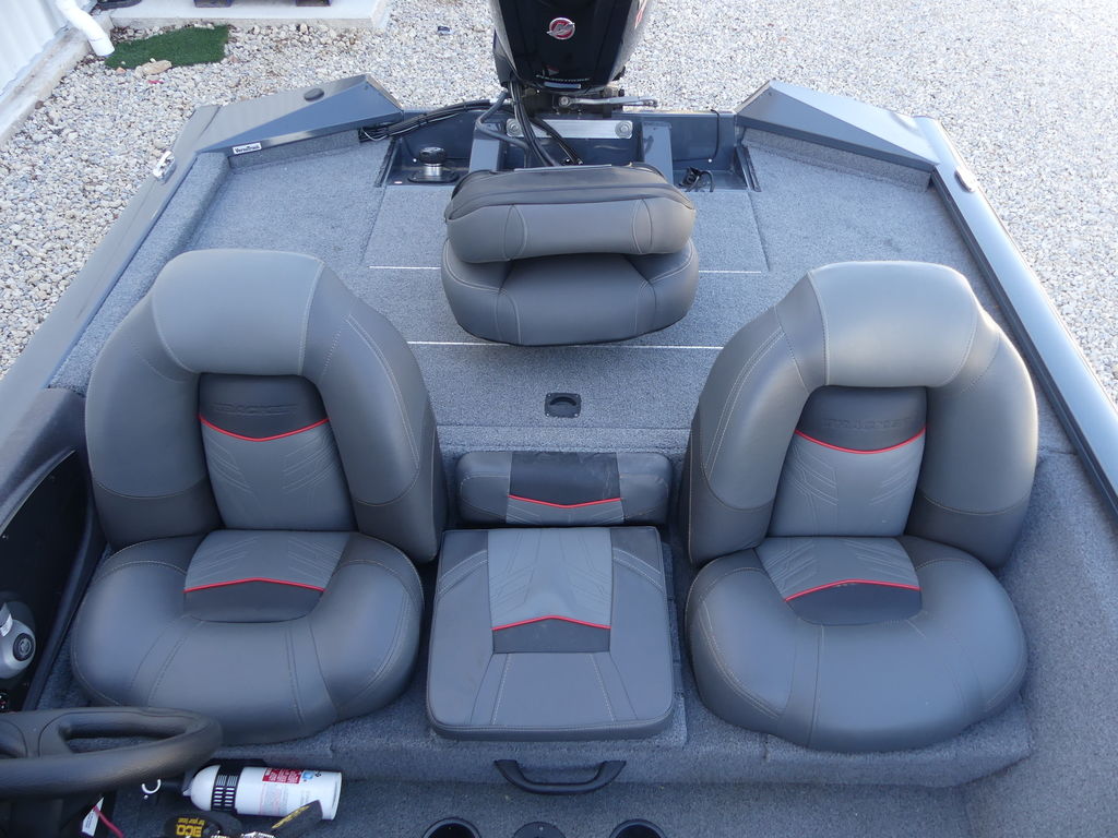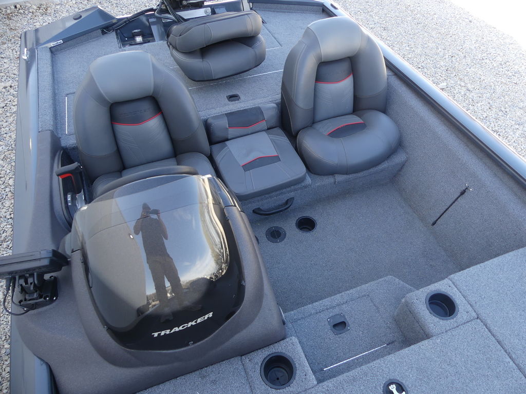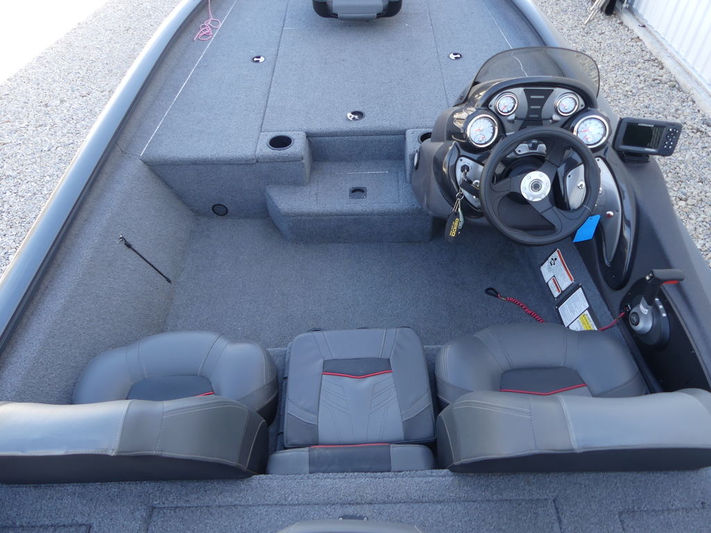 The TRACKER® PRO TEAM™ 190 TX sports a tournament-style deck layout, including dual 7' rod boxes with tip organizers, a giant tackle compartment and bag organizer, a step with a cooler and more.