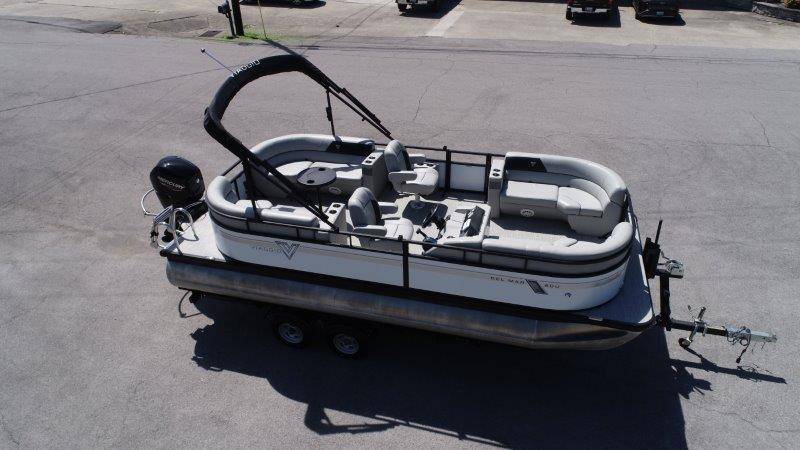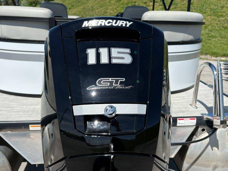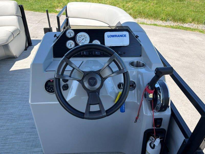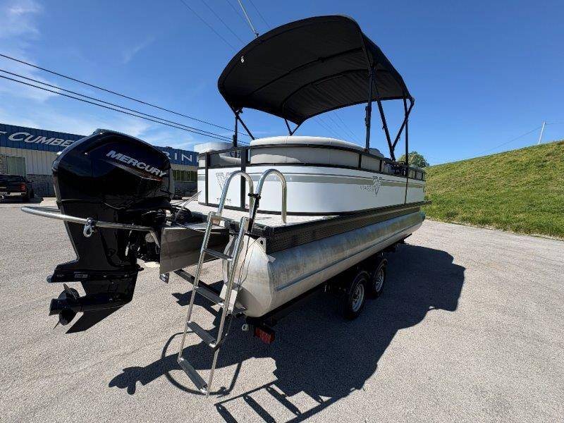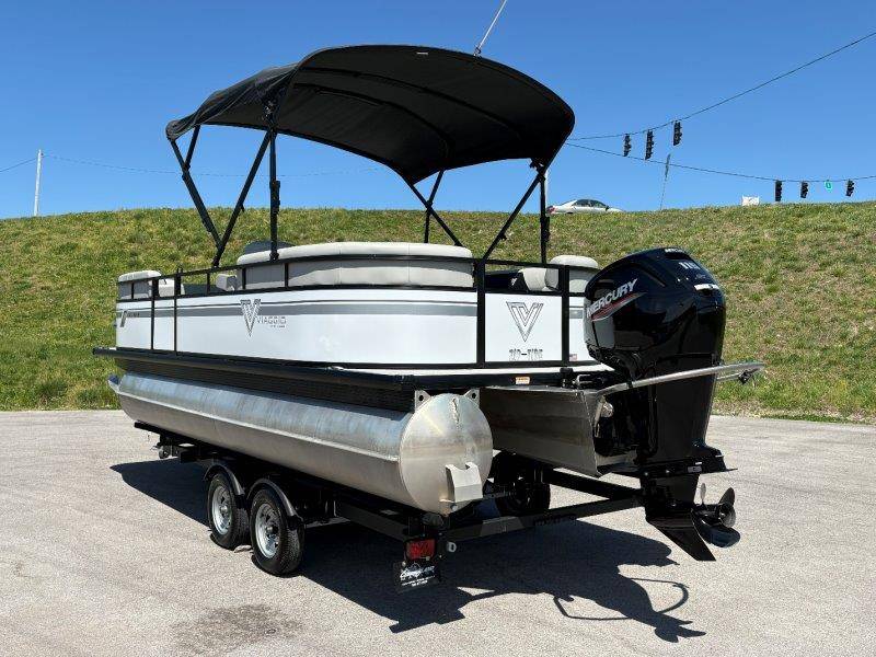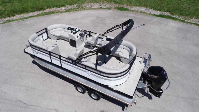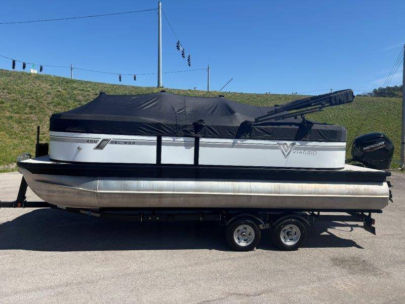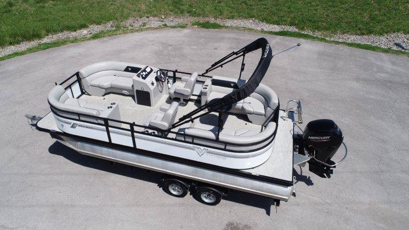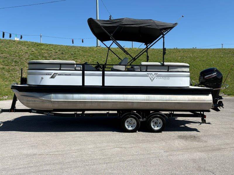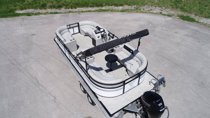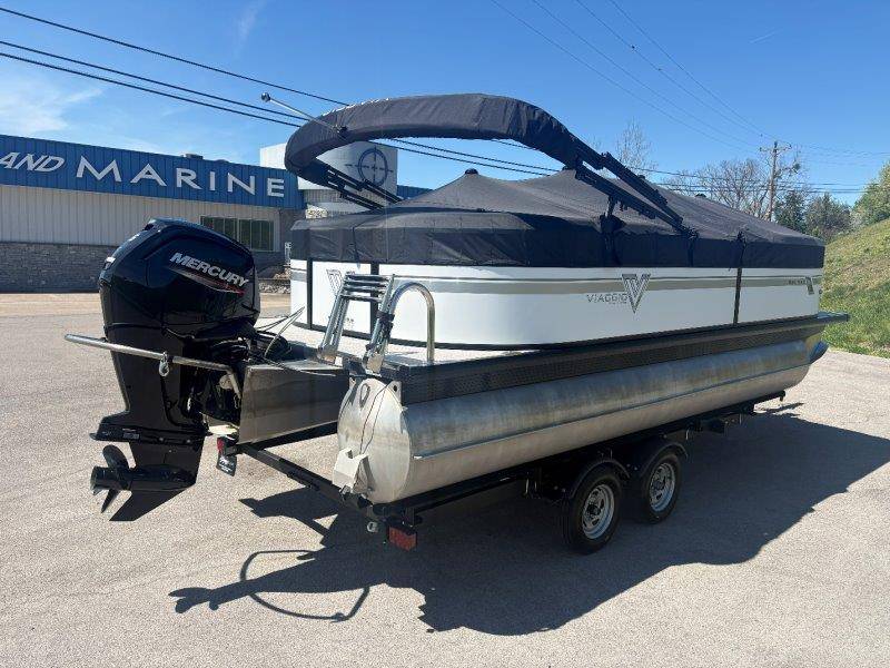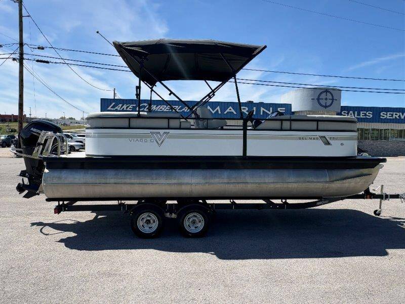 2022 Viaggio DM20U Mercury 115 Command Thrust (73 hours) 4 Blade Aluminum Prop Rear Boarding Ladder Turbo Swing Tilt Steering Boss Bluetooth Audio Lowrance Fish Finder – GPS RPM, Volt, Fuel & Trim Gauges Bimini Top with Boot Full Cover 11 Passenger Capacity Dual Axle Trailer with Surge Brakes