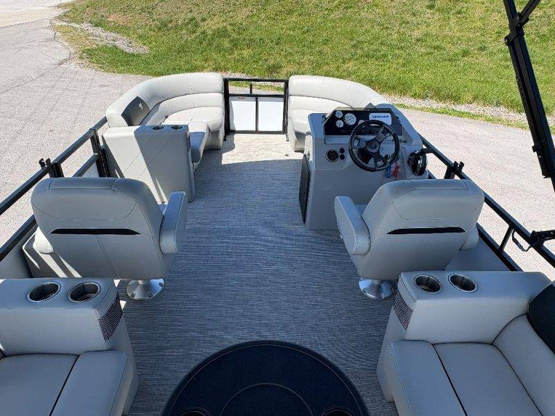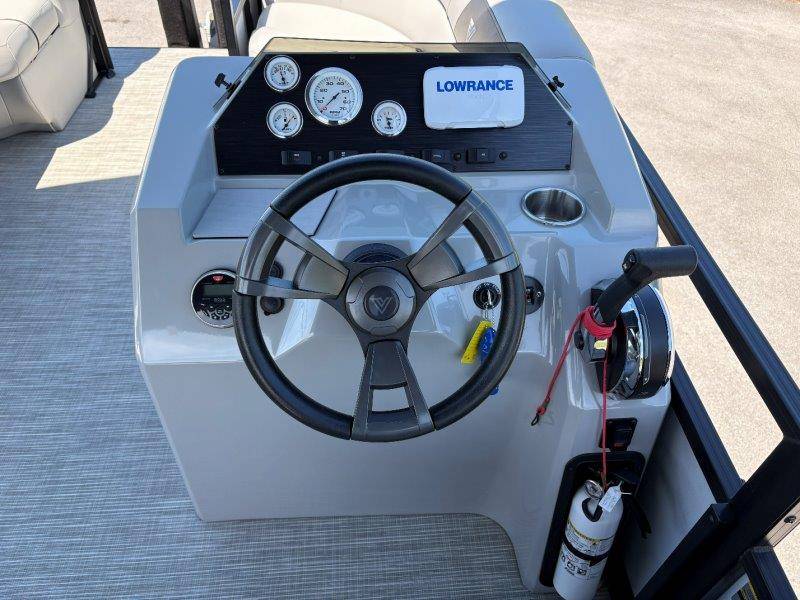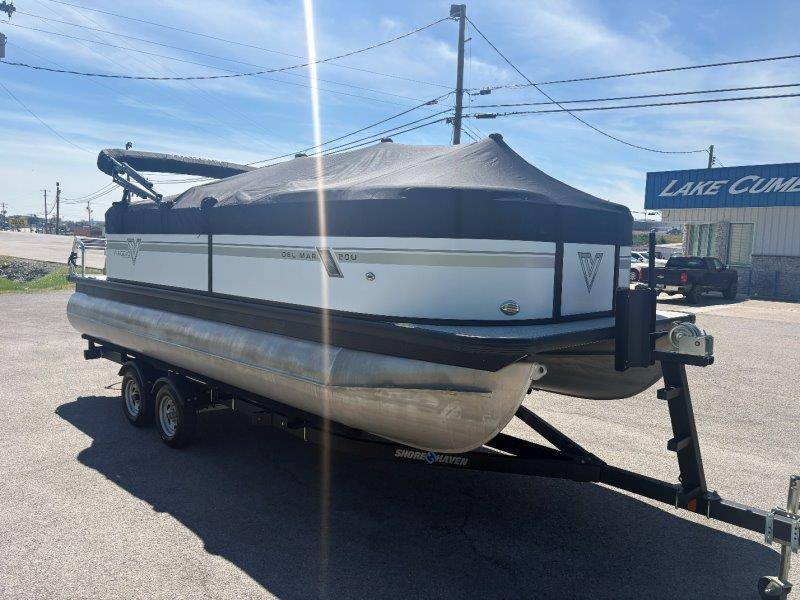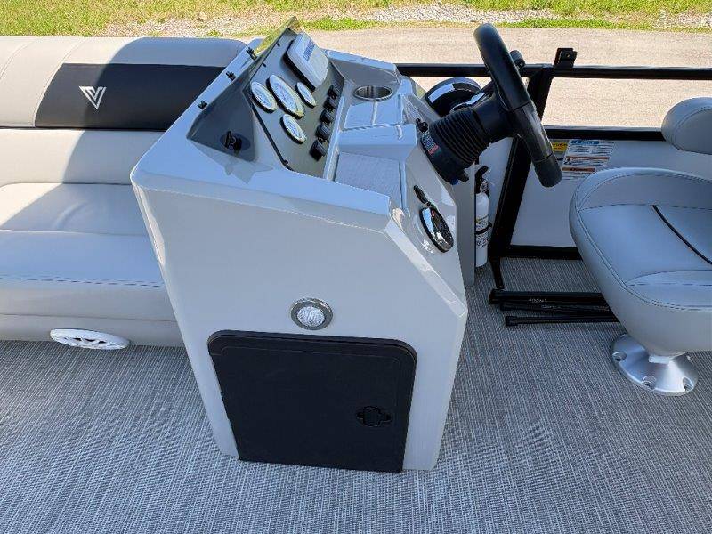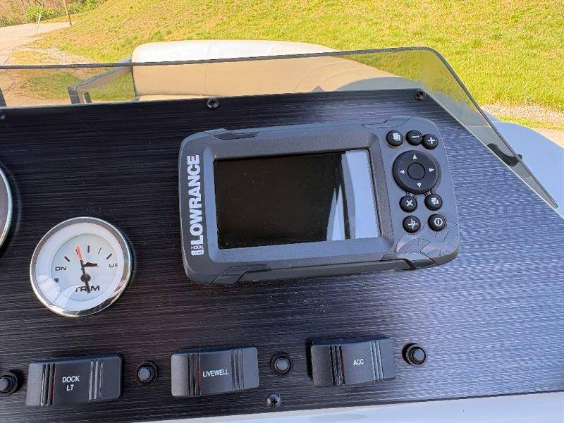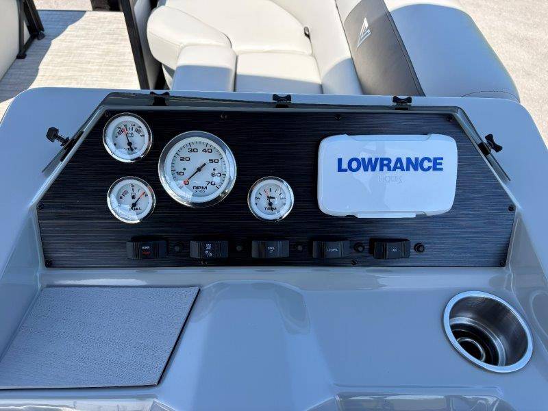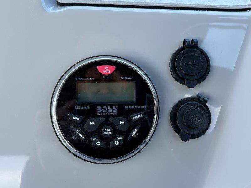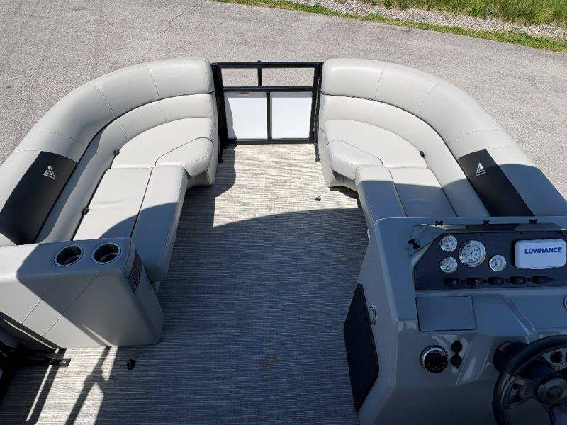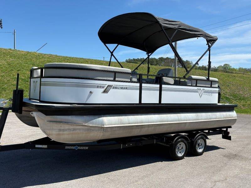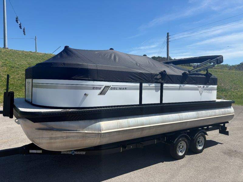 2022 Viaggio DM20U Mercury 115 Command Thrust (73 hours) 4 Blade Aluminum Prop Rear Boarding Ladder Turbo Swing Tilt Steering Boss Bluetooth Audio Lowrance Fish Finder – GPS RPM, Volt, Fuel & Trim Gauges Bimini Top with Boot Full Cover 11 Passenger Capacity Dual Axle Trailer with Surge Brakes