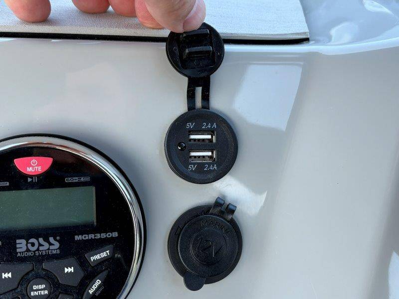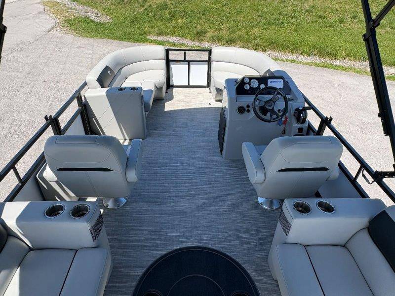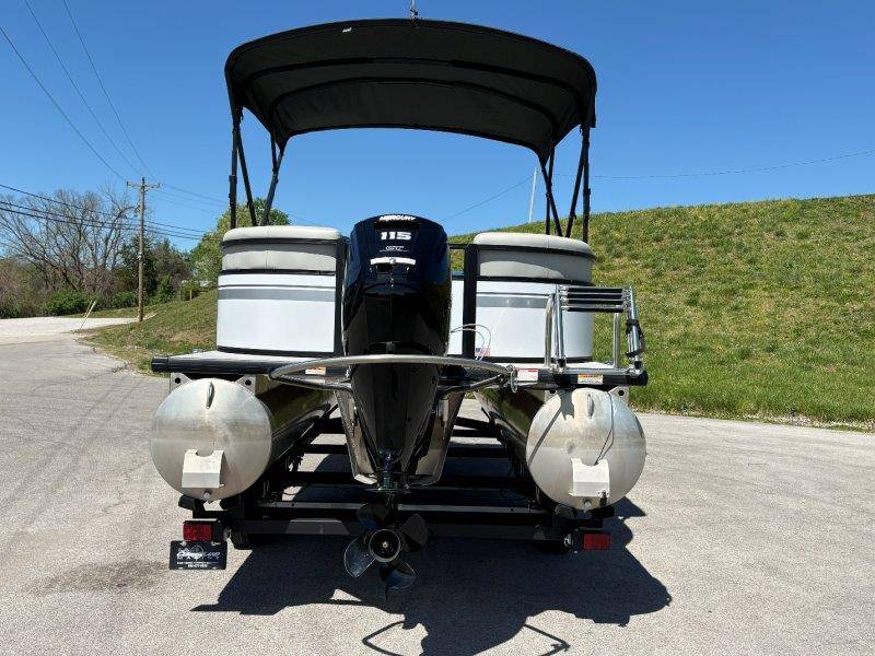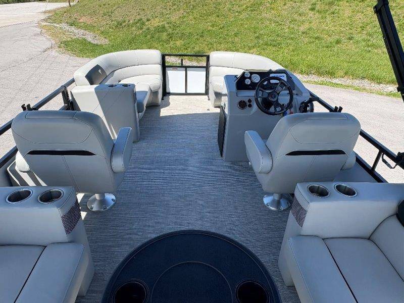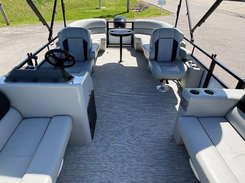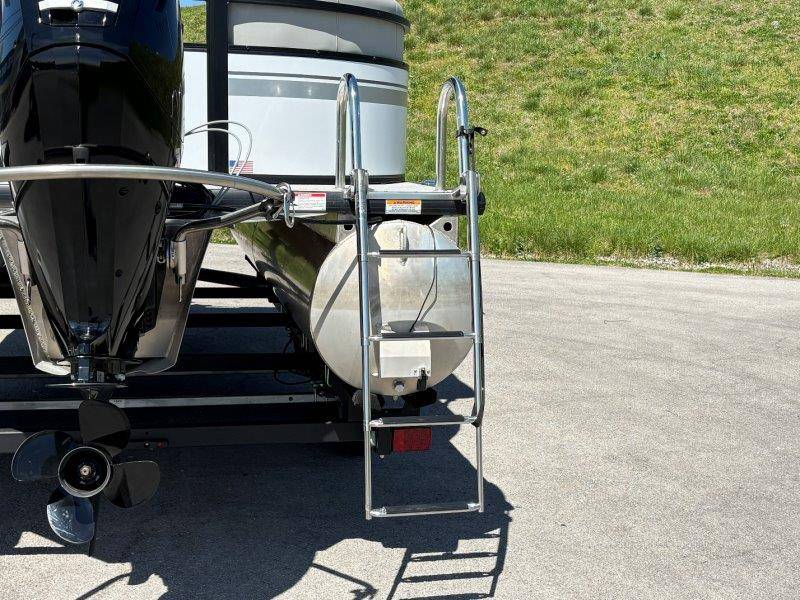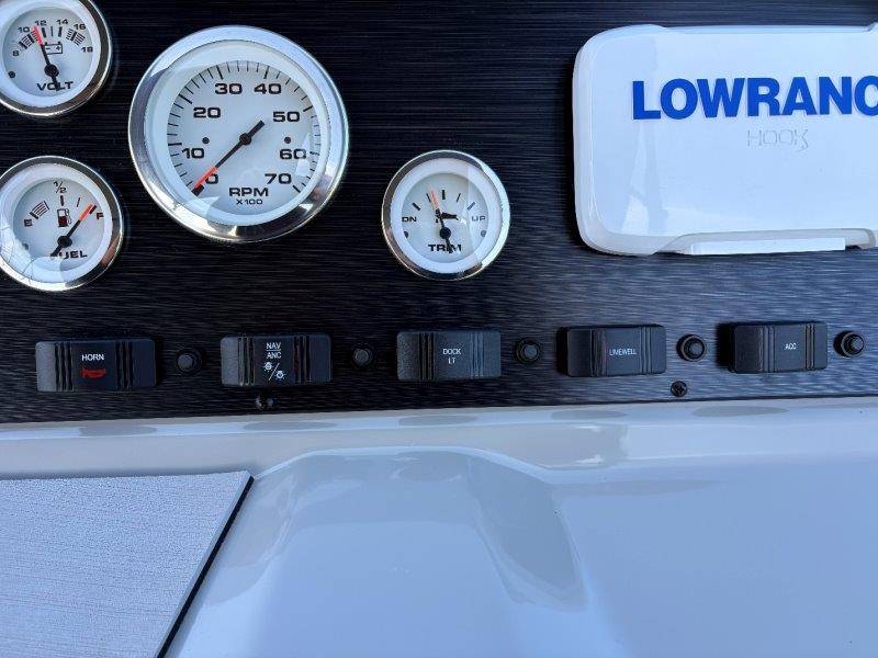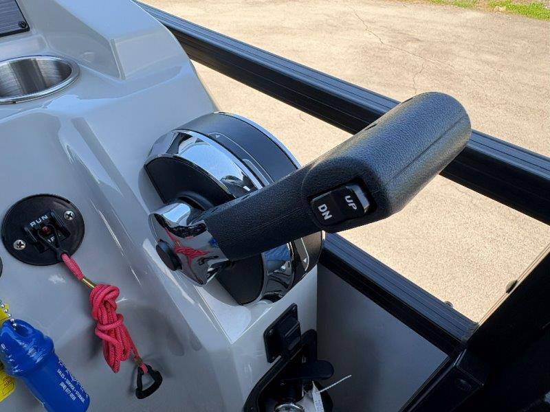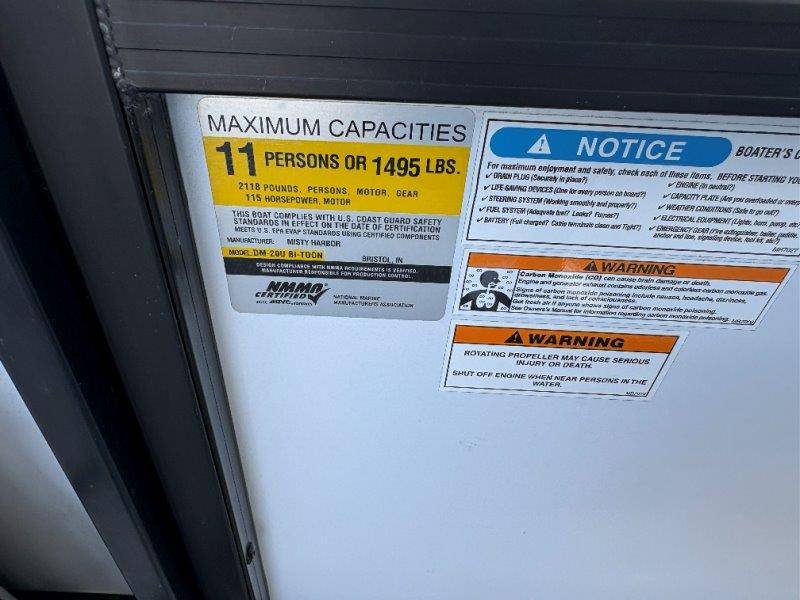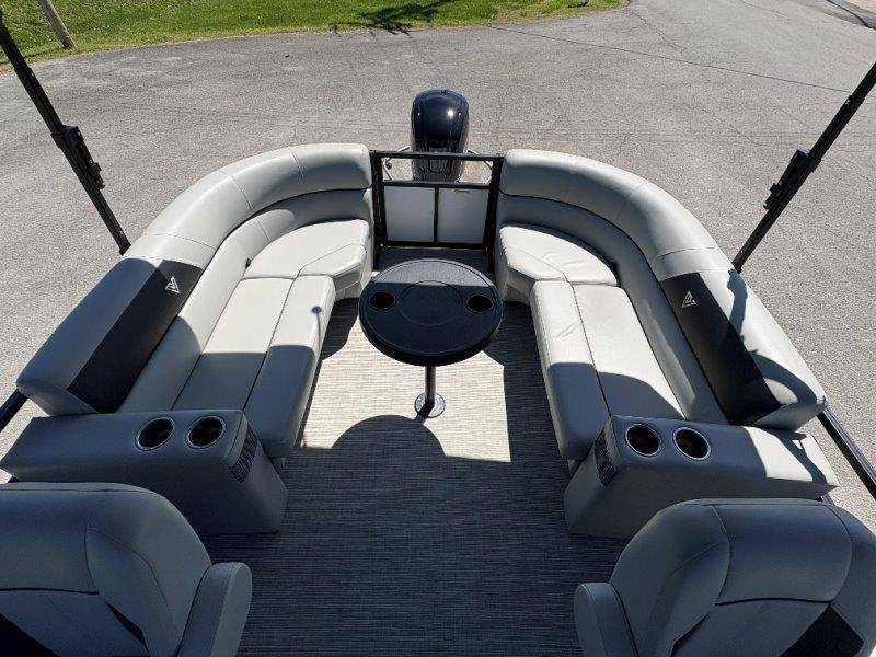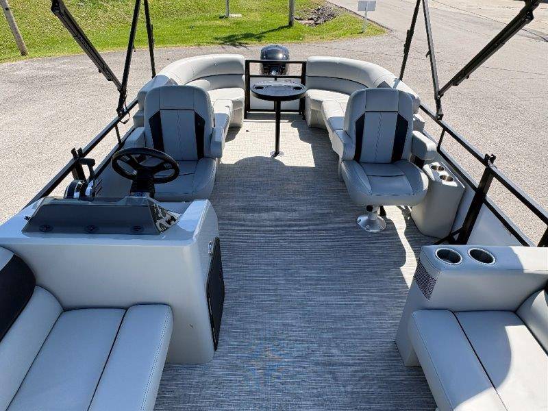 2022 Viaggio DM20U Mercury 115 Command Thrust (73 hours) 4 Blade Aluminum Prop Rear Boarding Ladder Turbo Swing Tilt Steering Boss Bluetooth Audio Lowrance Fish Finder – GPS RPM, Volt, Fuel & Trim Gauges Bimini Top with Boot Full Cover 11 Passenger Capacity Dual Axle Trailer with Surge Brakes