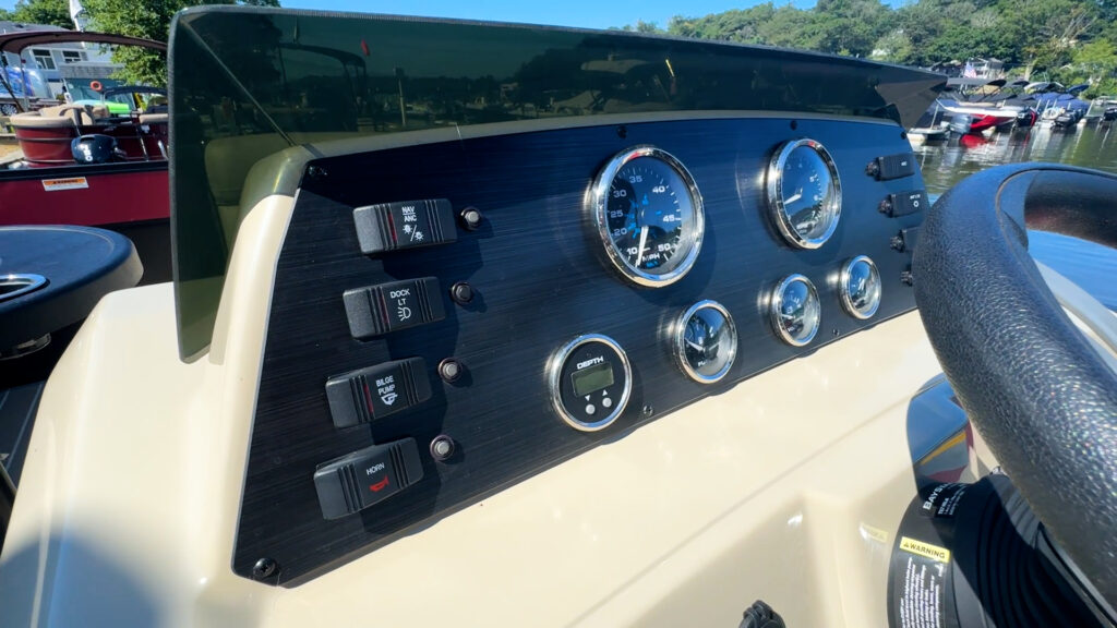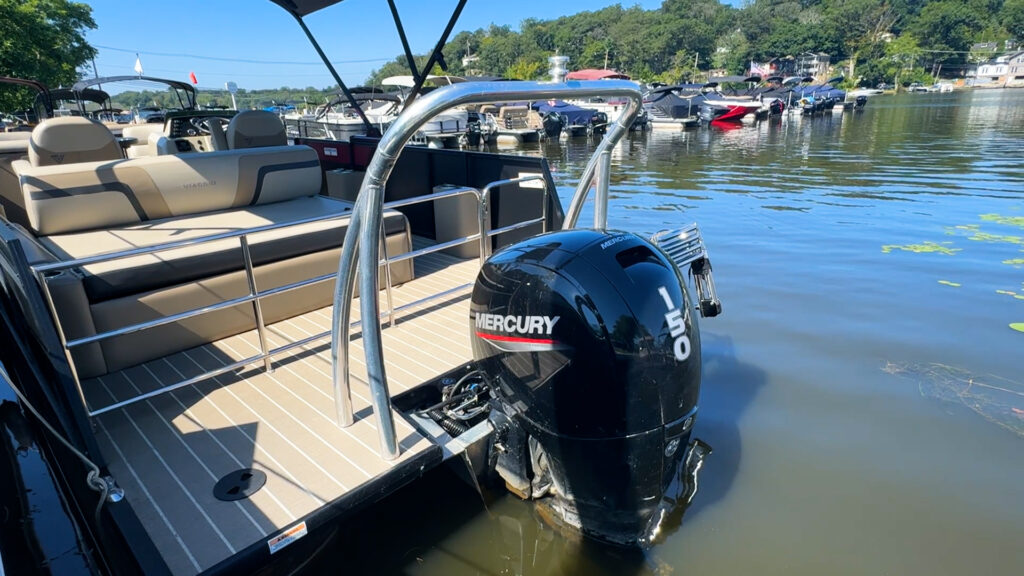 This Viaggio features the Sport Toon Package upgrade with 3/4 center sport toon with 2 lifting strakes, full underdeck performance shield, and hydraulic steering.