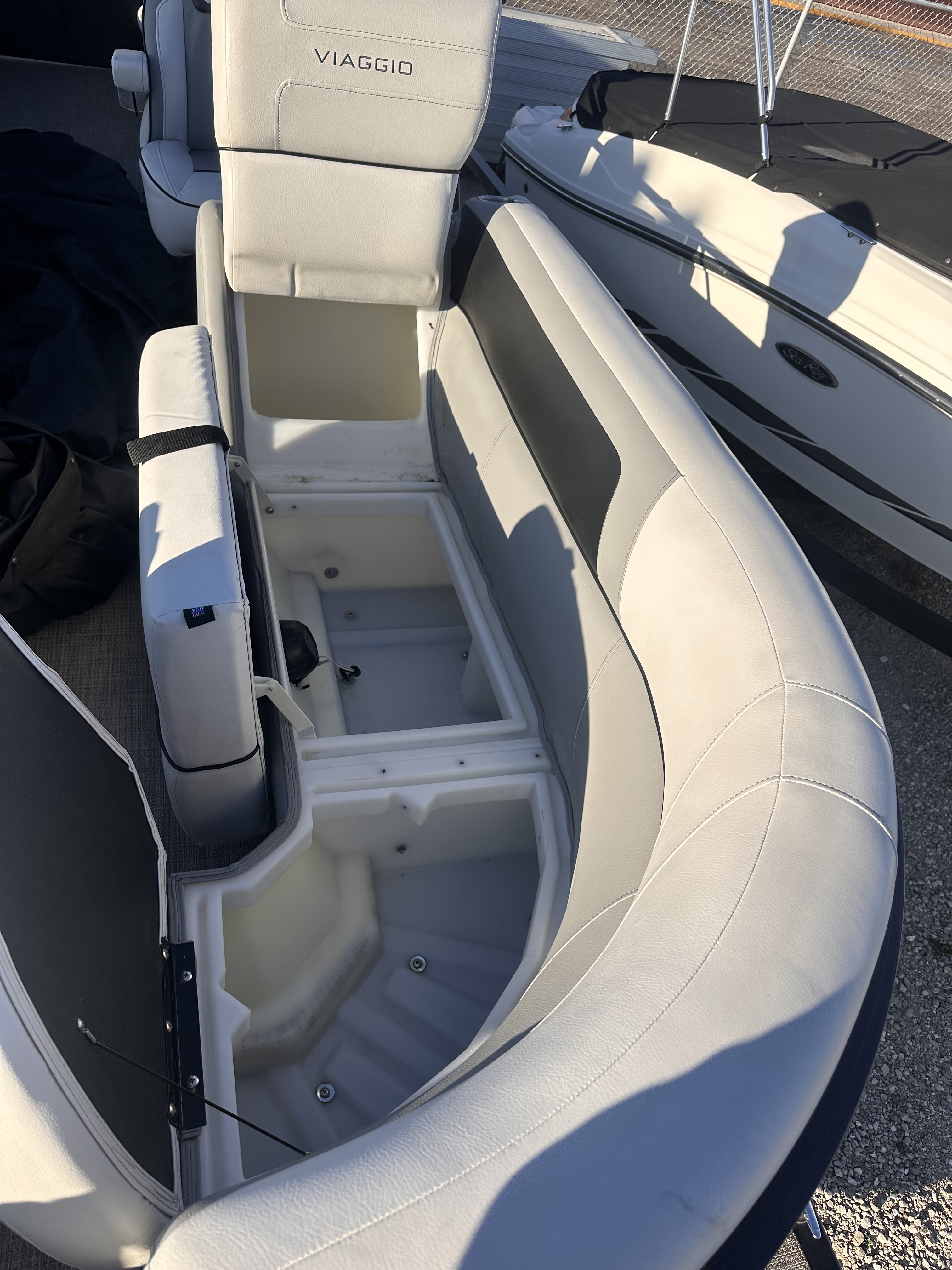 Step aboard the 2022 Viaggio Lago U22 pontoon and enjoy the perfect blend of modern design, spacious comfort, and reliable Honda 90HP performance. With only 67 hours, this boat is clean, lightly used, and ready for family outings, weekend cruising, or entertaining friends on the water.