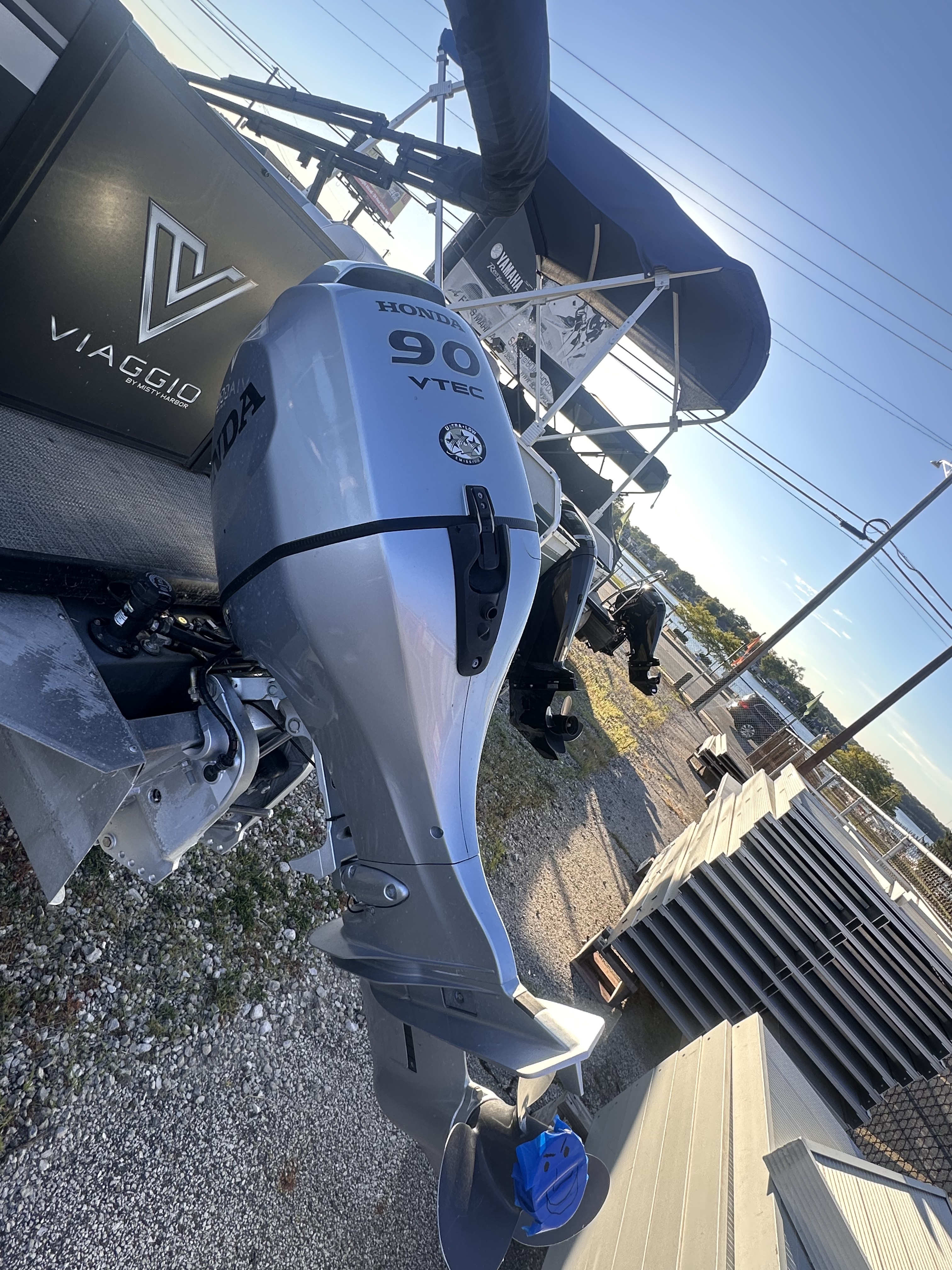 Low-hour 2022 Viaggio Lago U22 Pontoon with Honda 90HP – only 67 hours! Spacious ‘U’ lounge, premium features, and ready for family fun. Available now at Fay’s Marina in La Porte, IN. Call today to schedule a walkthrough