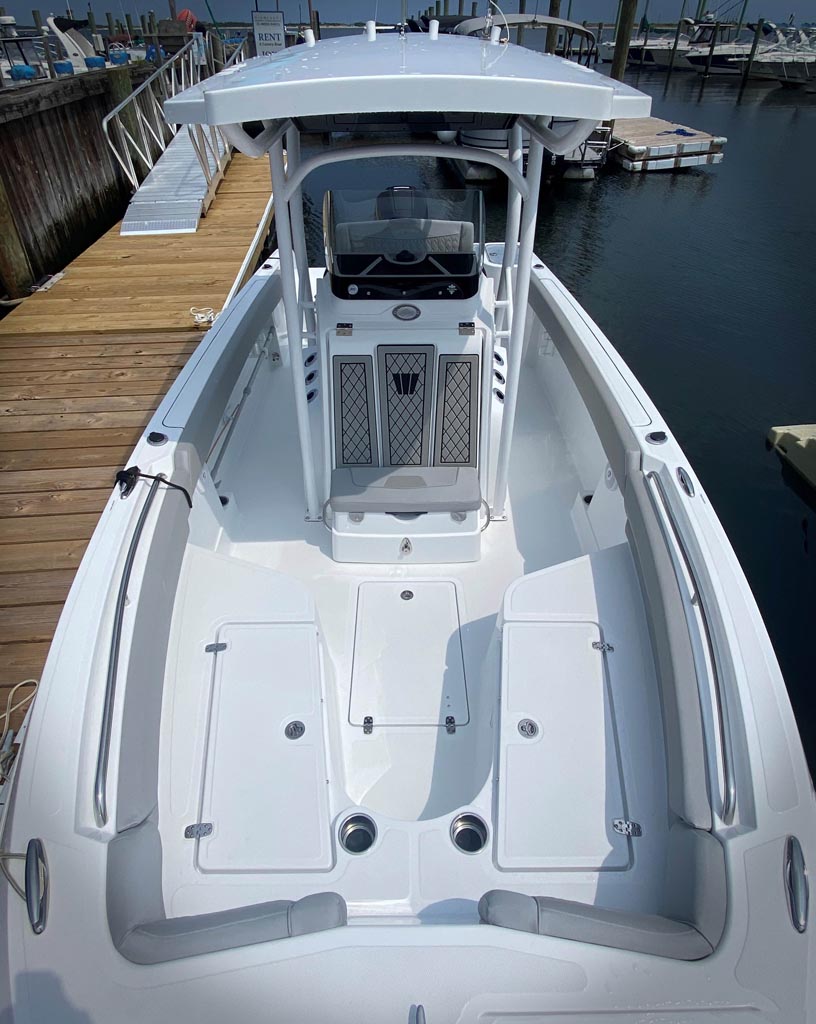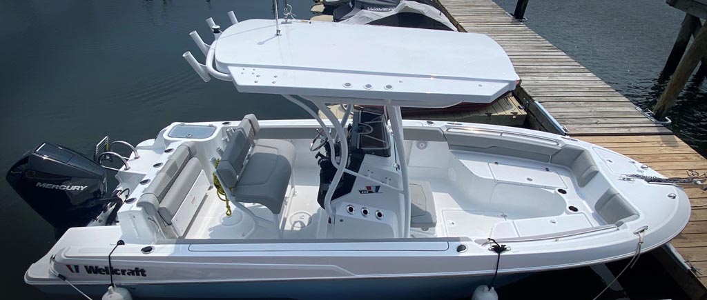 Features include deluxe fiberglass T-Top, GPS and depth sounder, VHF radio and stereo system, rod holders, and more! Plus, a bow seating package for additional comfort to passengers, making this boat perfect for families.