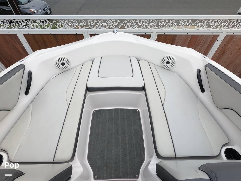 With the capacity to sleep 8, this Yamaha feels larger, as there's a lot of storage room aboard. An anchor locker in the bow helps with clutter, while the storage under the bow seats extends way under the helm, so you can even store fishing rods aboard.