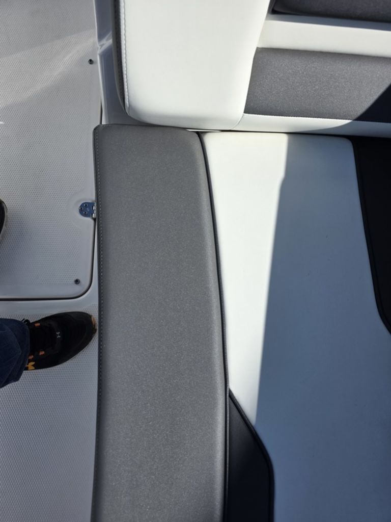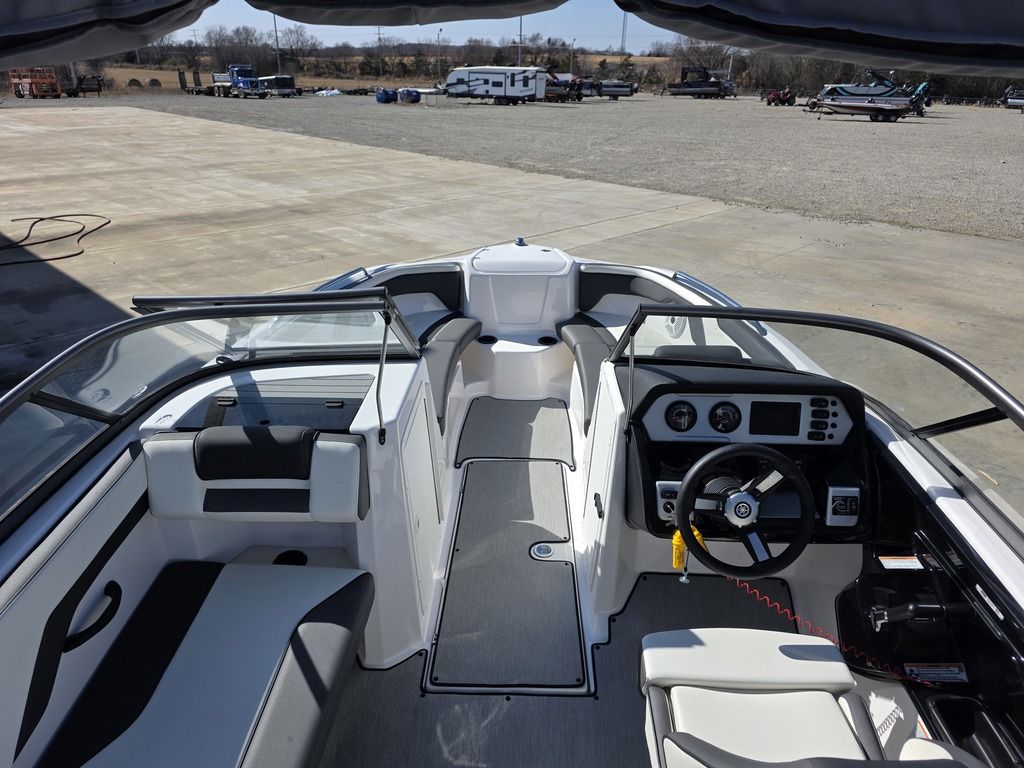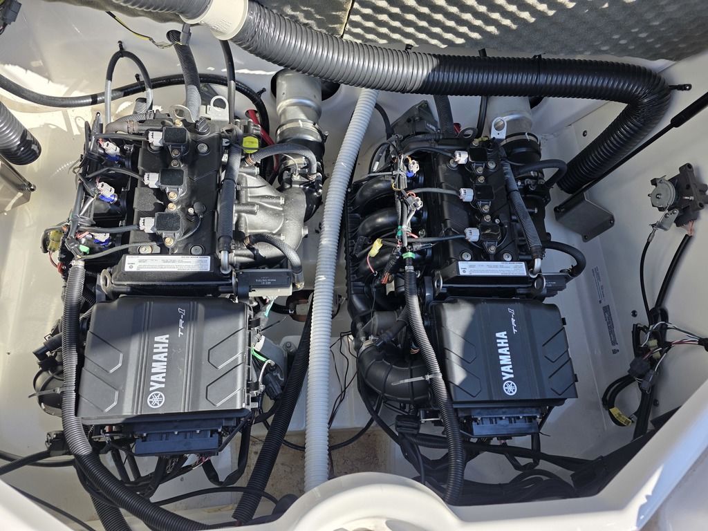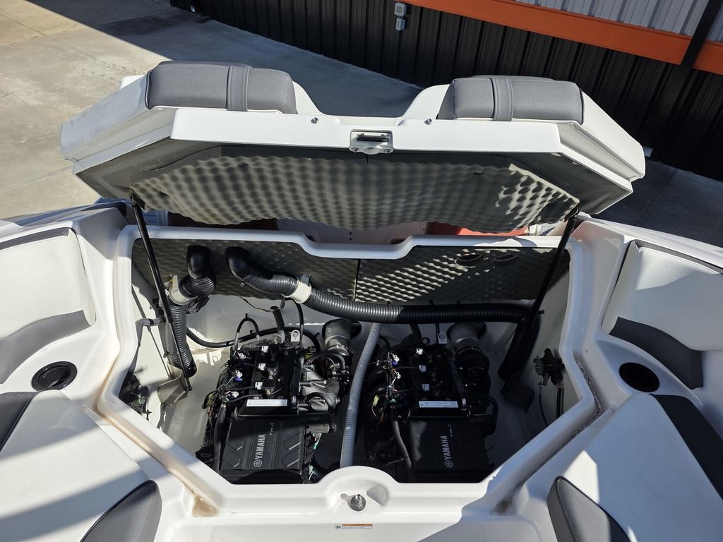 Powered by twin Yamaha marine engines with jet propulsion, this boat offers shallow draft operation, smooth acceleration, and added safety around swimmers with no exposed prop.