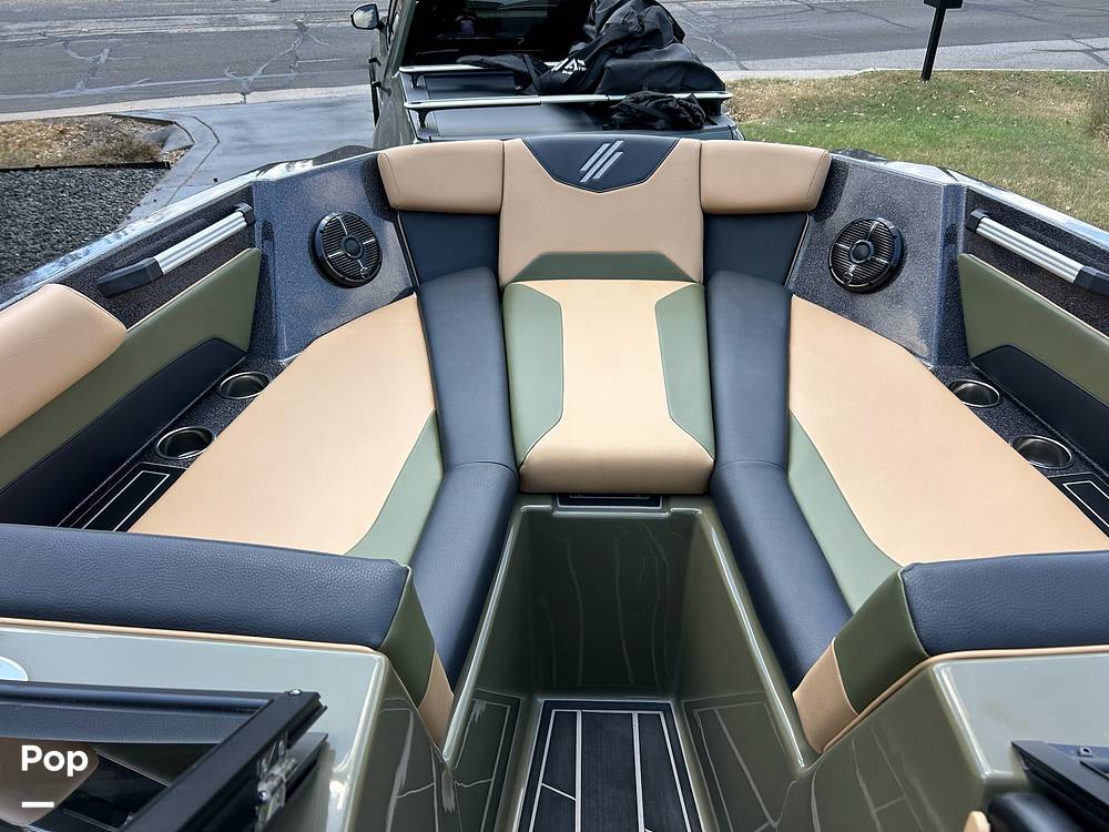 The rear-facing observer seat provides a comfortable viewing platform for friends and family, while the integrated transom storage offers convenient storage for wakeboards, ropes, and other gear.