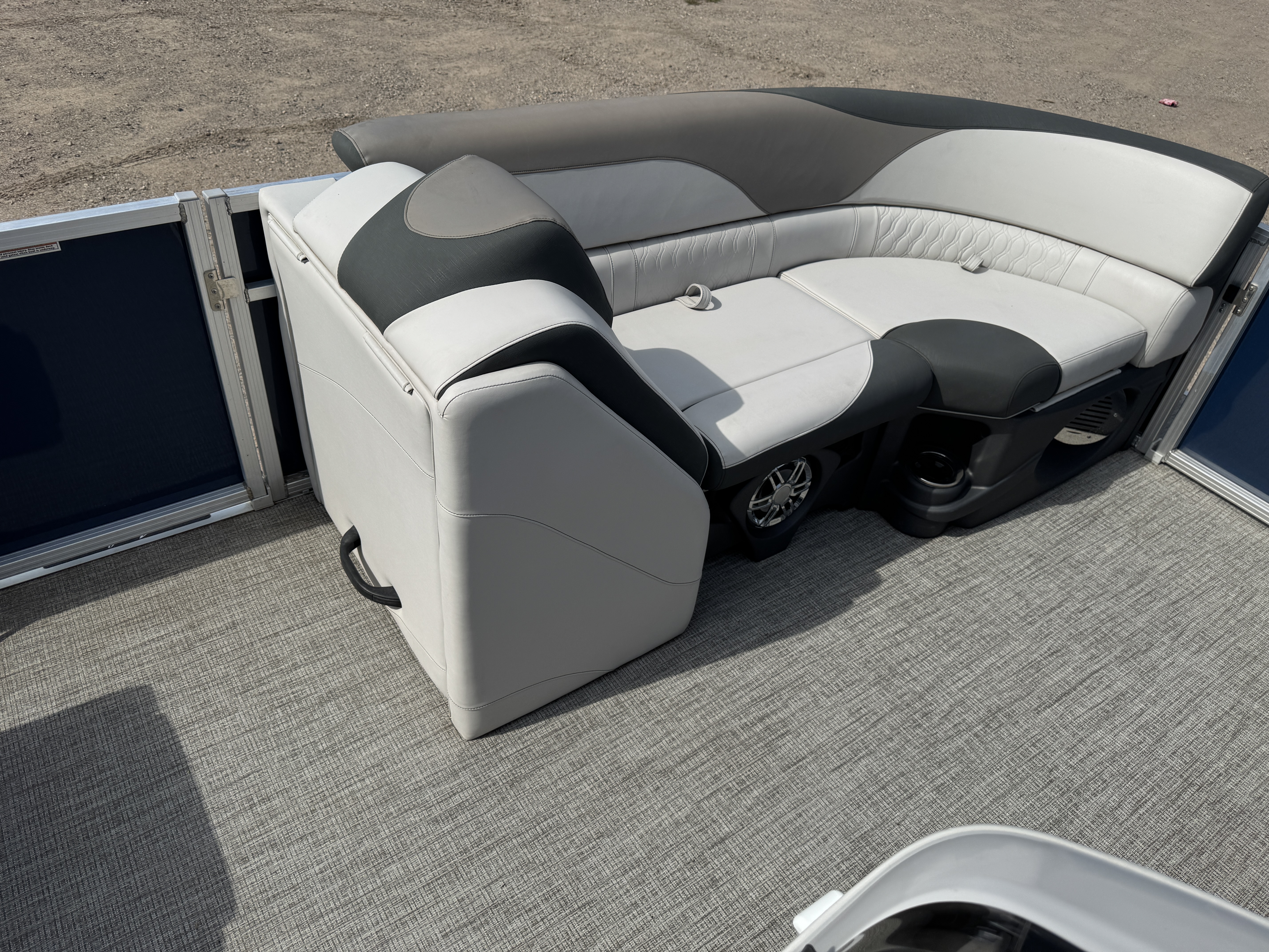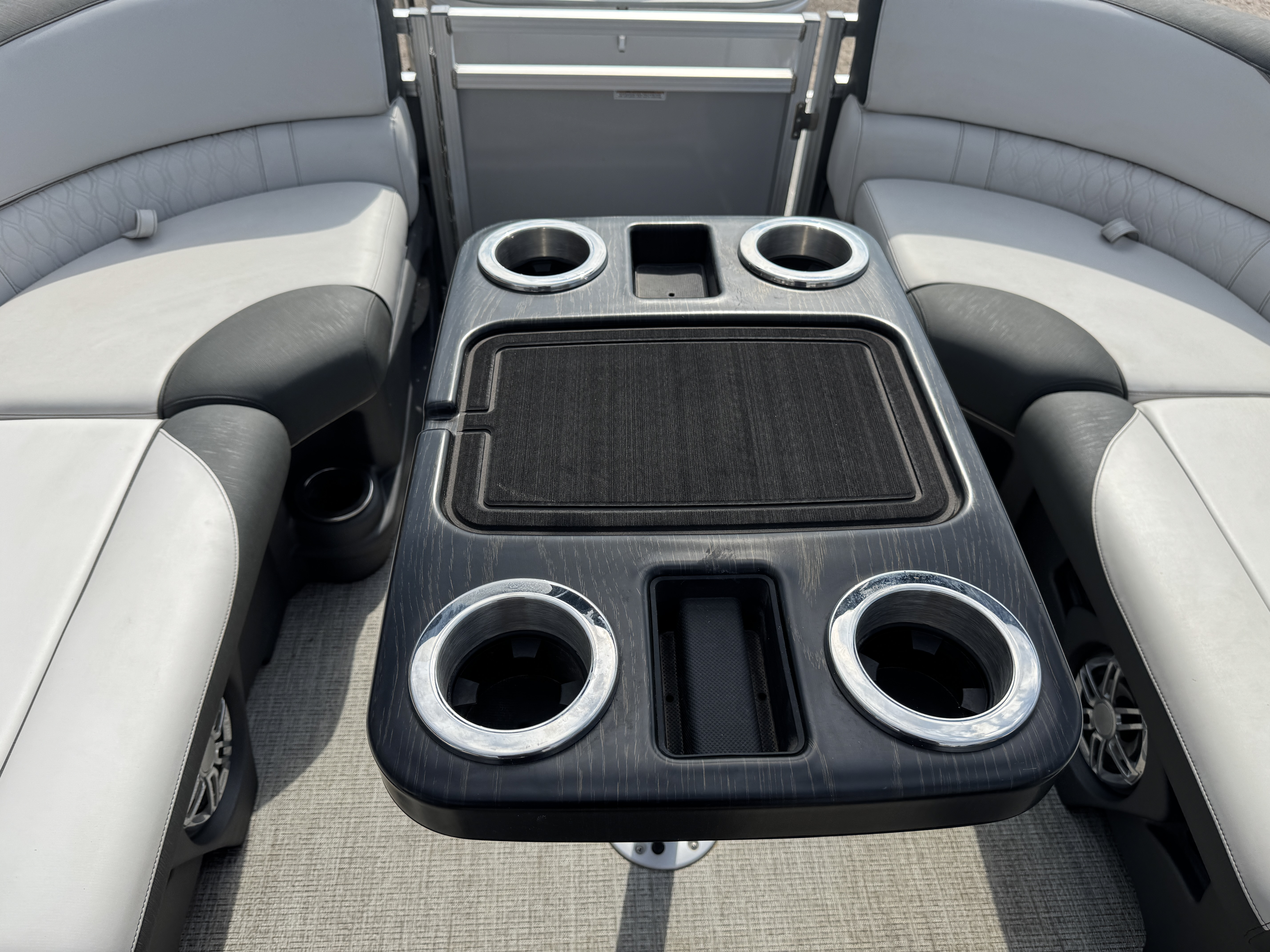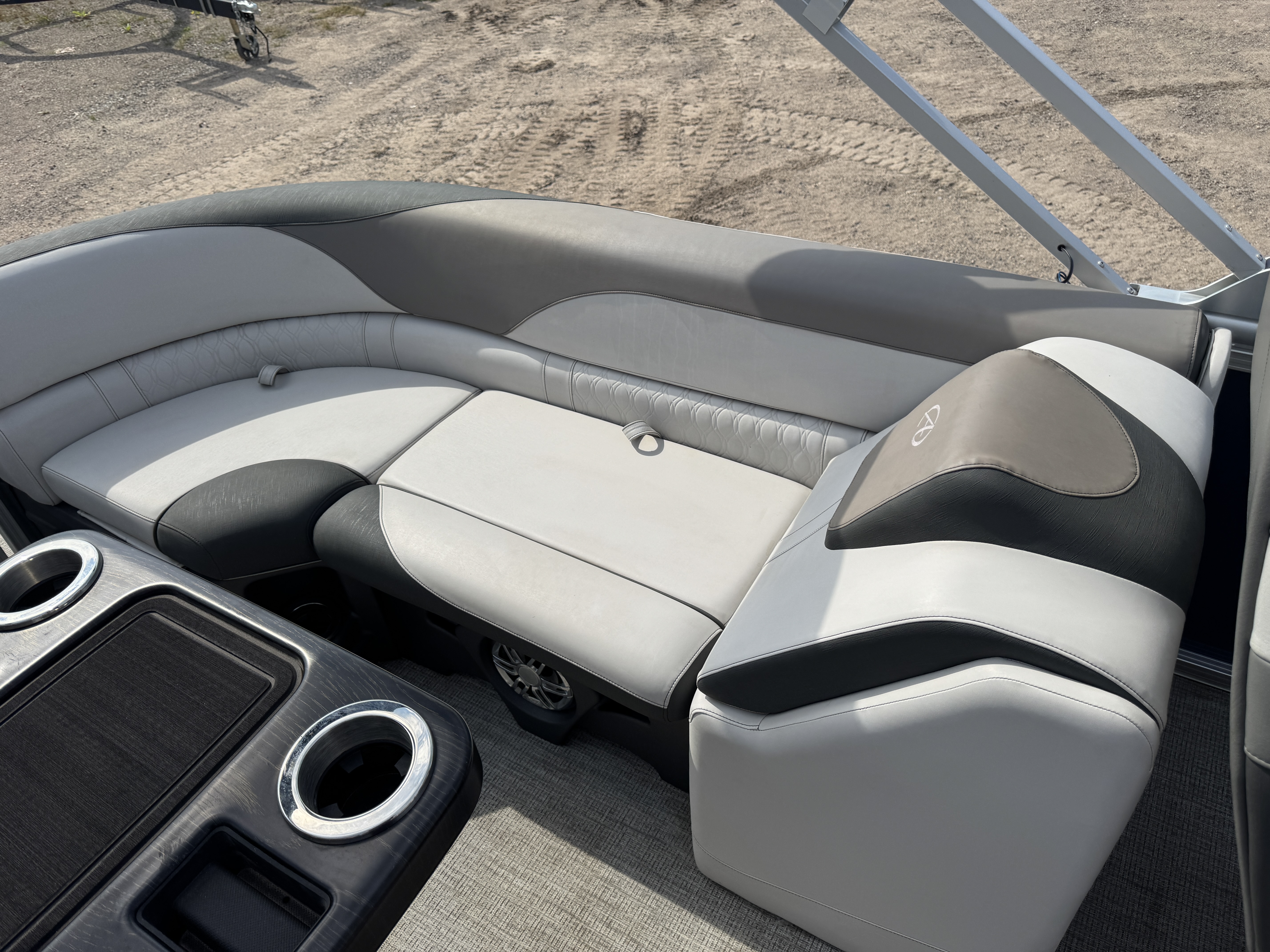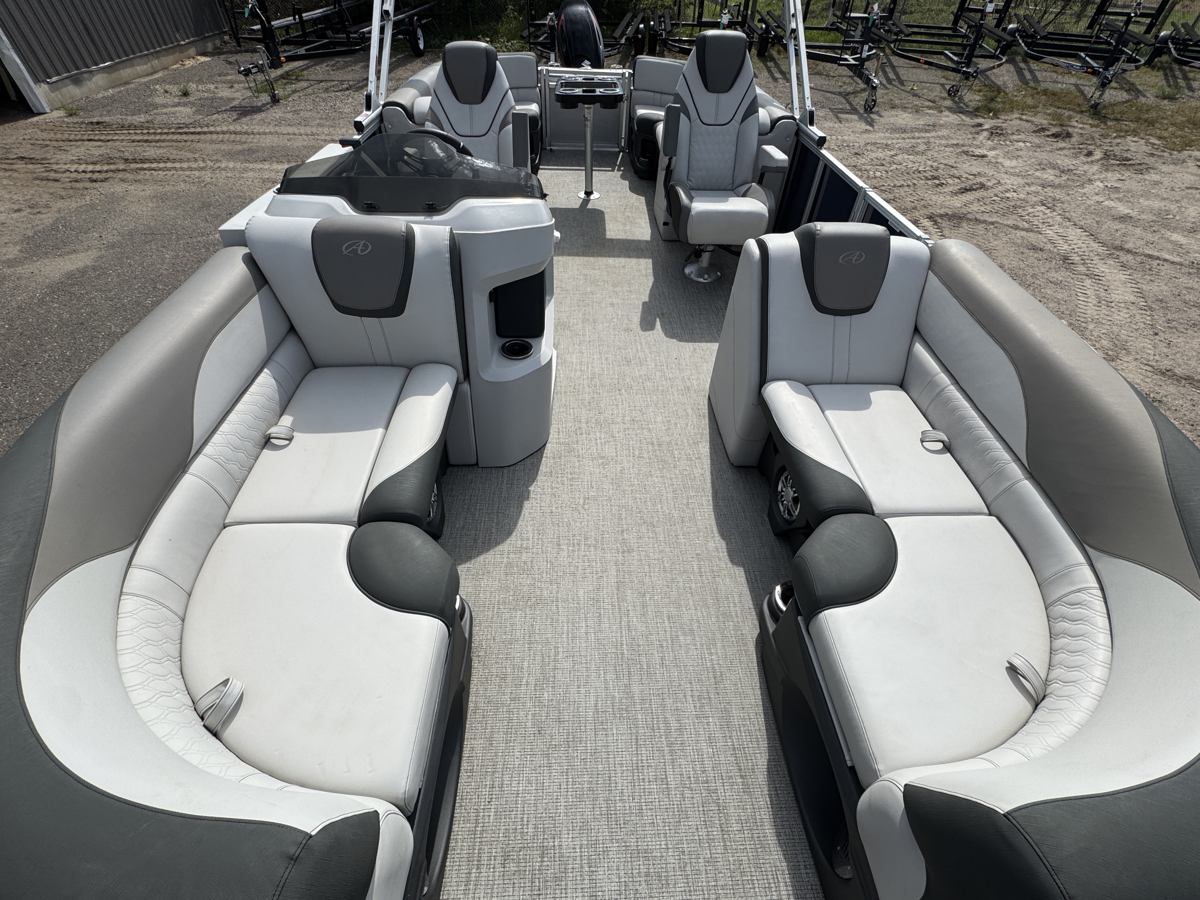 Quad Lounge layout tritoon has 4 lounge style couches; 1 in each corner of the