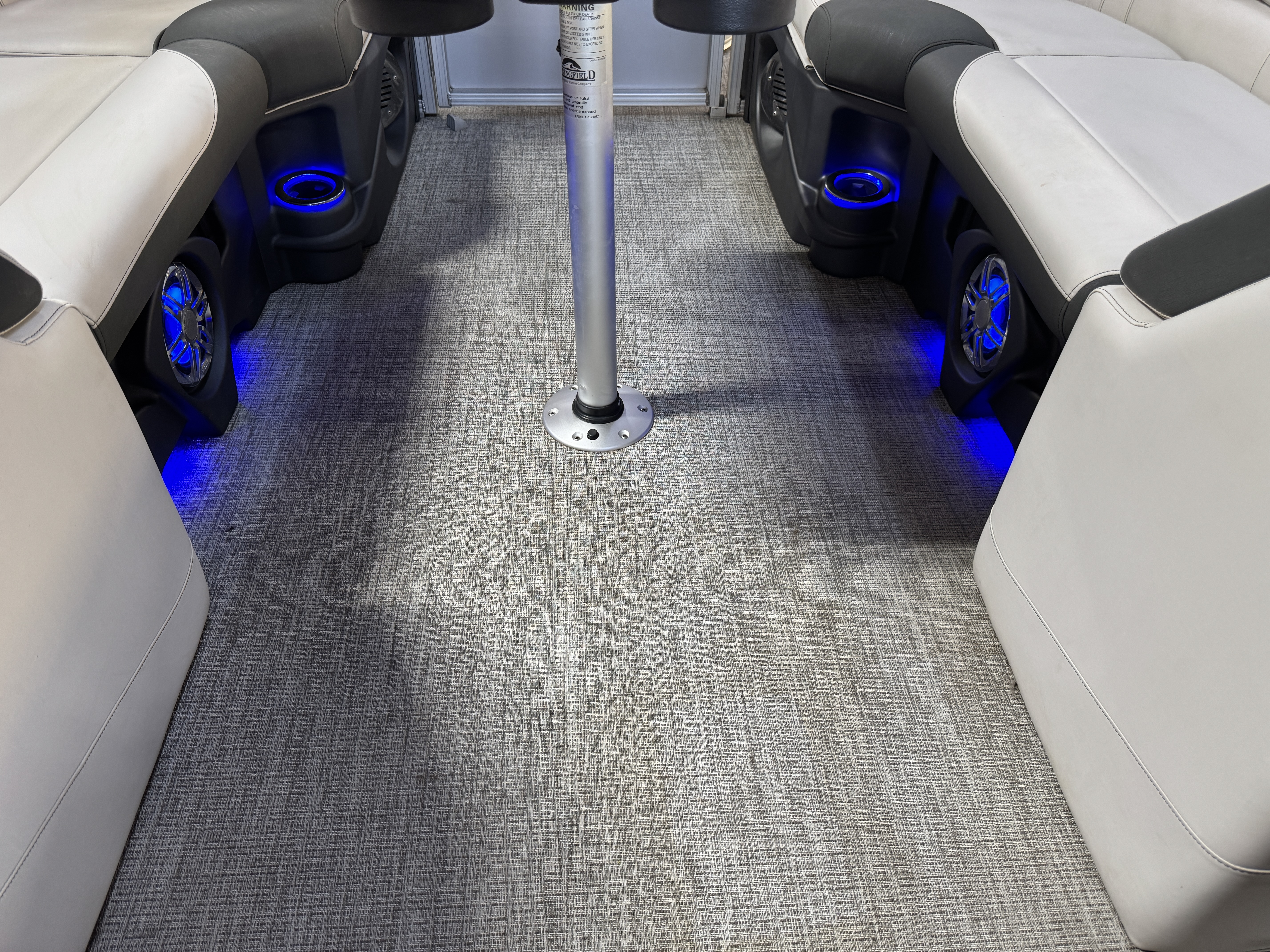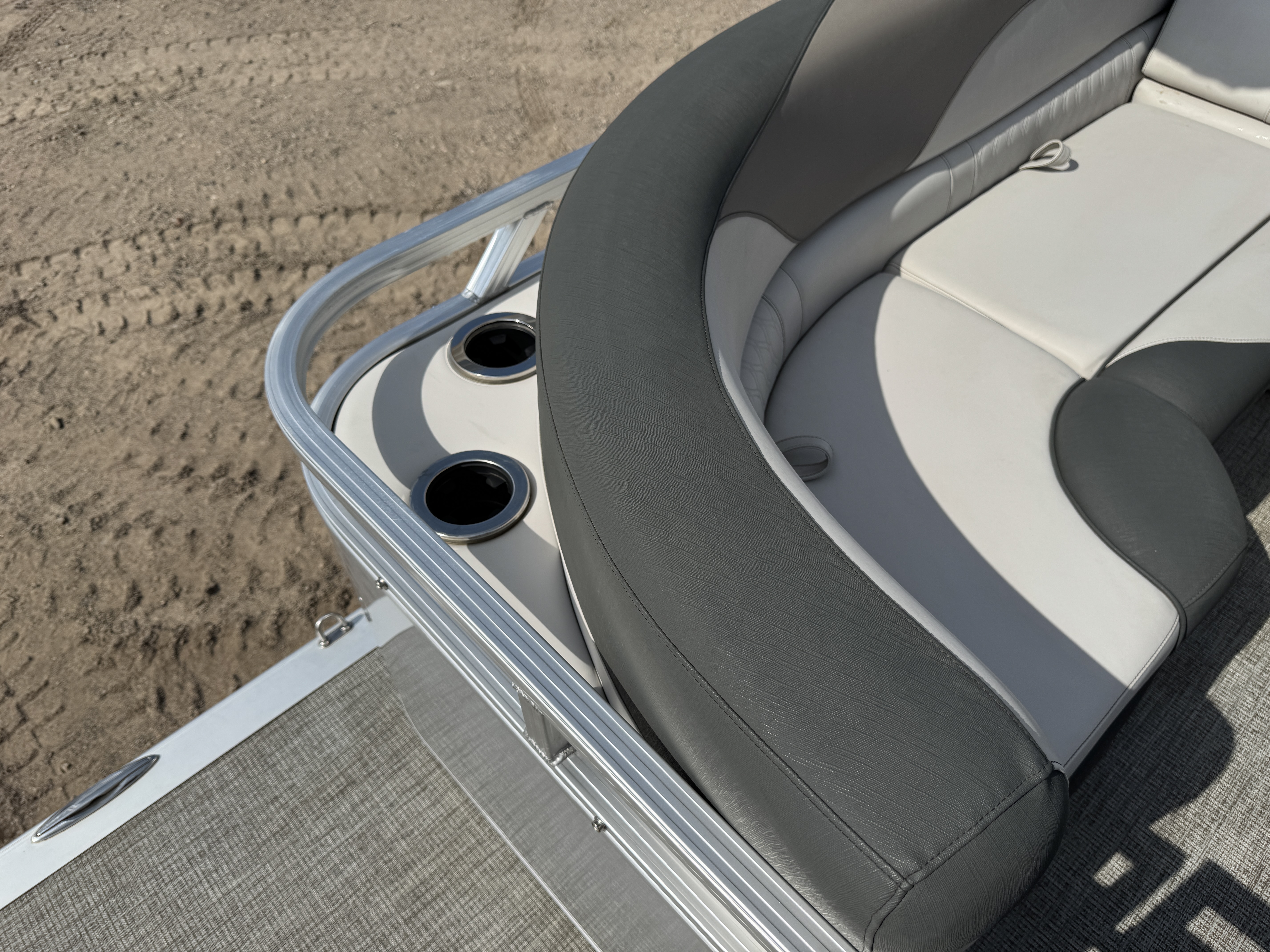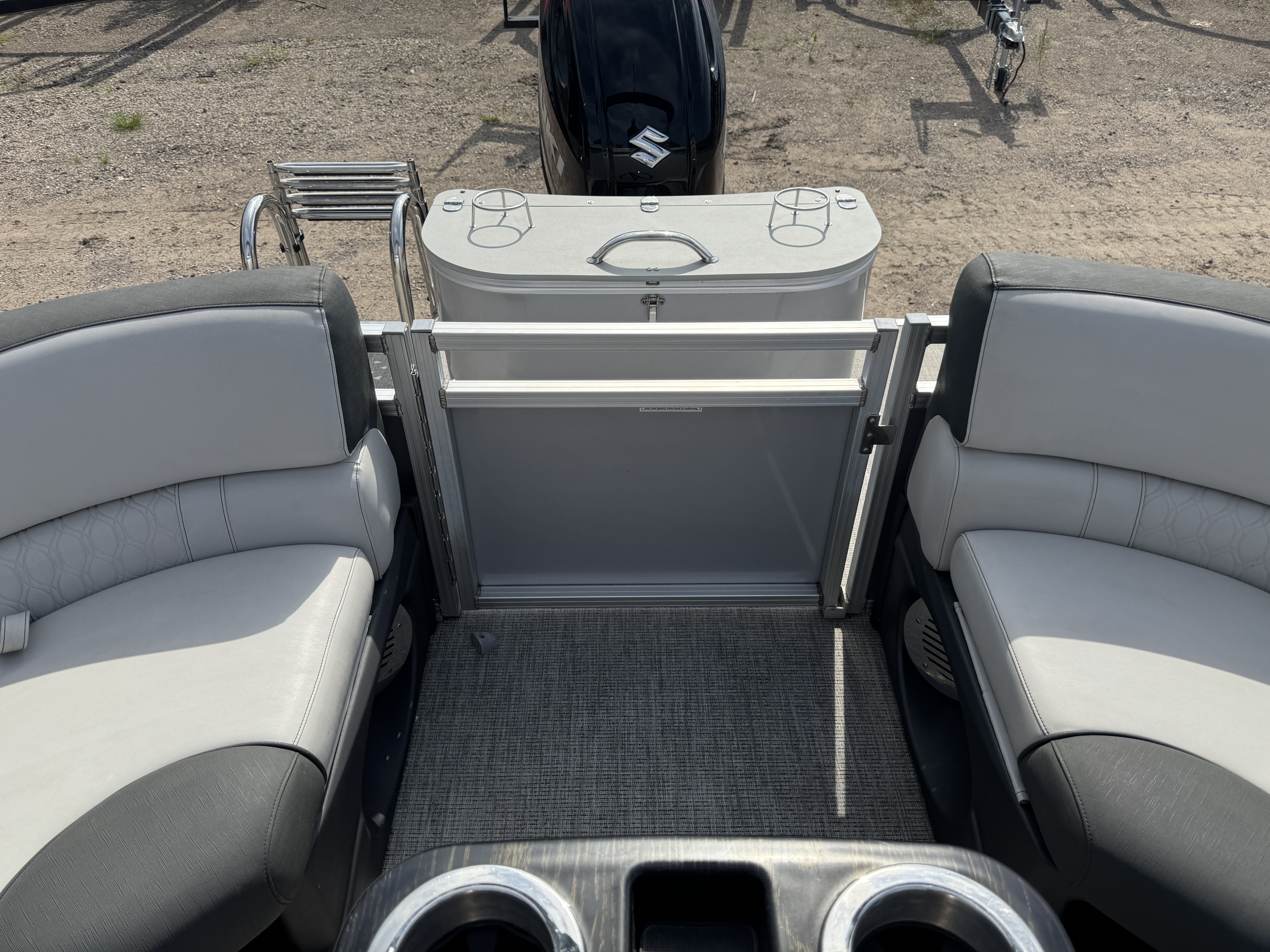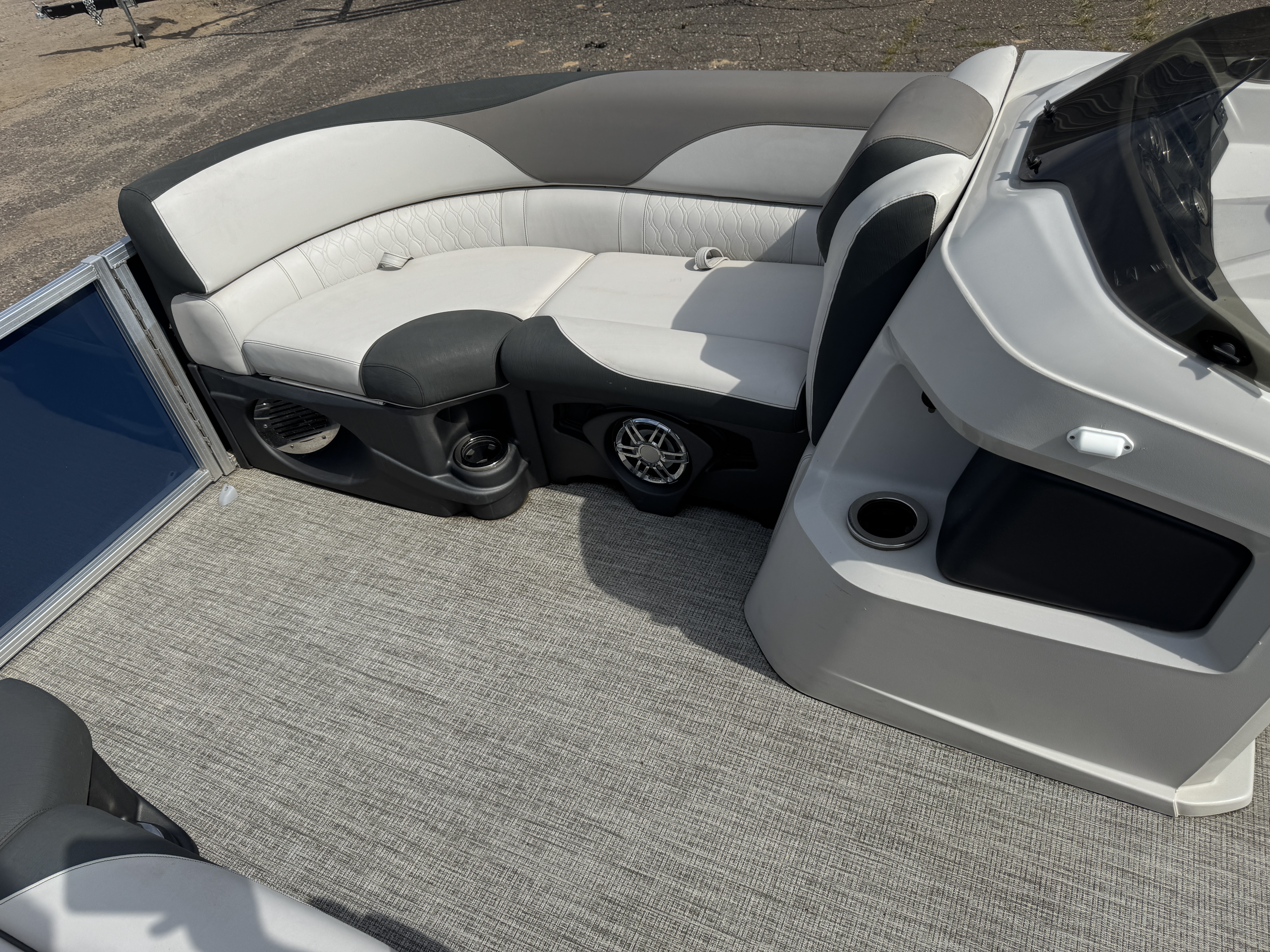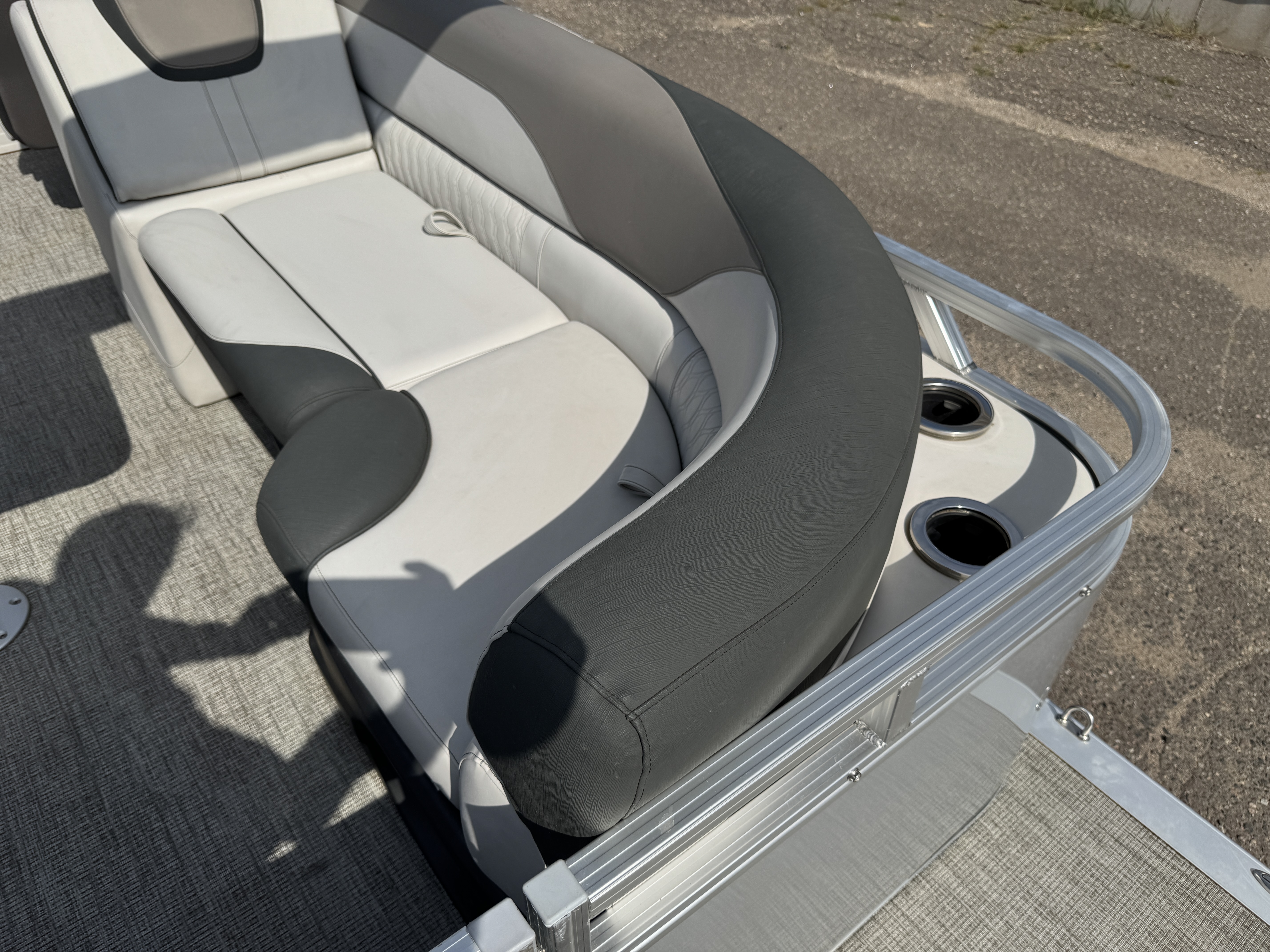 Quad Lounge layout tritoon has 4 lounge style couches; 1 in each corner of the