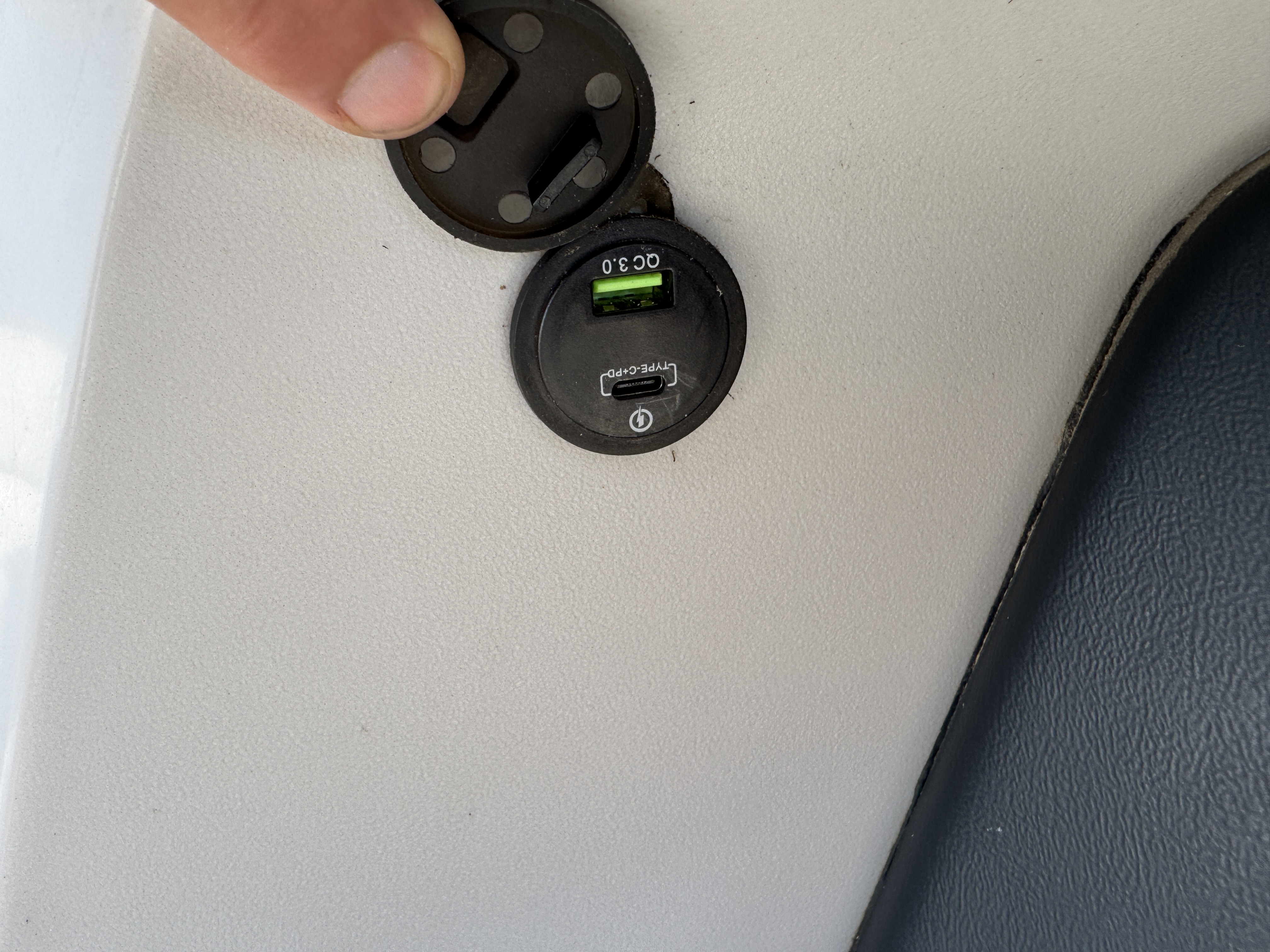charging point at the front along with a cup holder. This unit features the