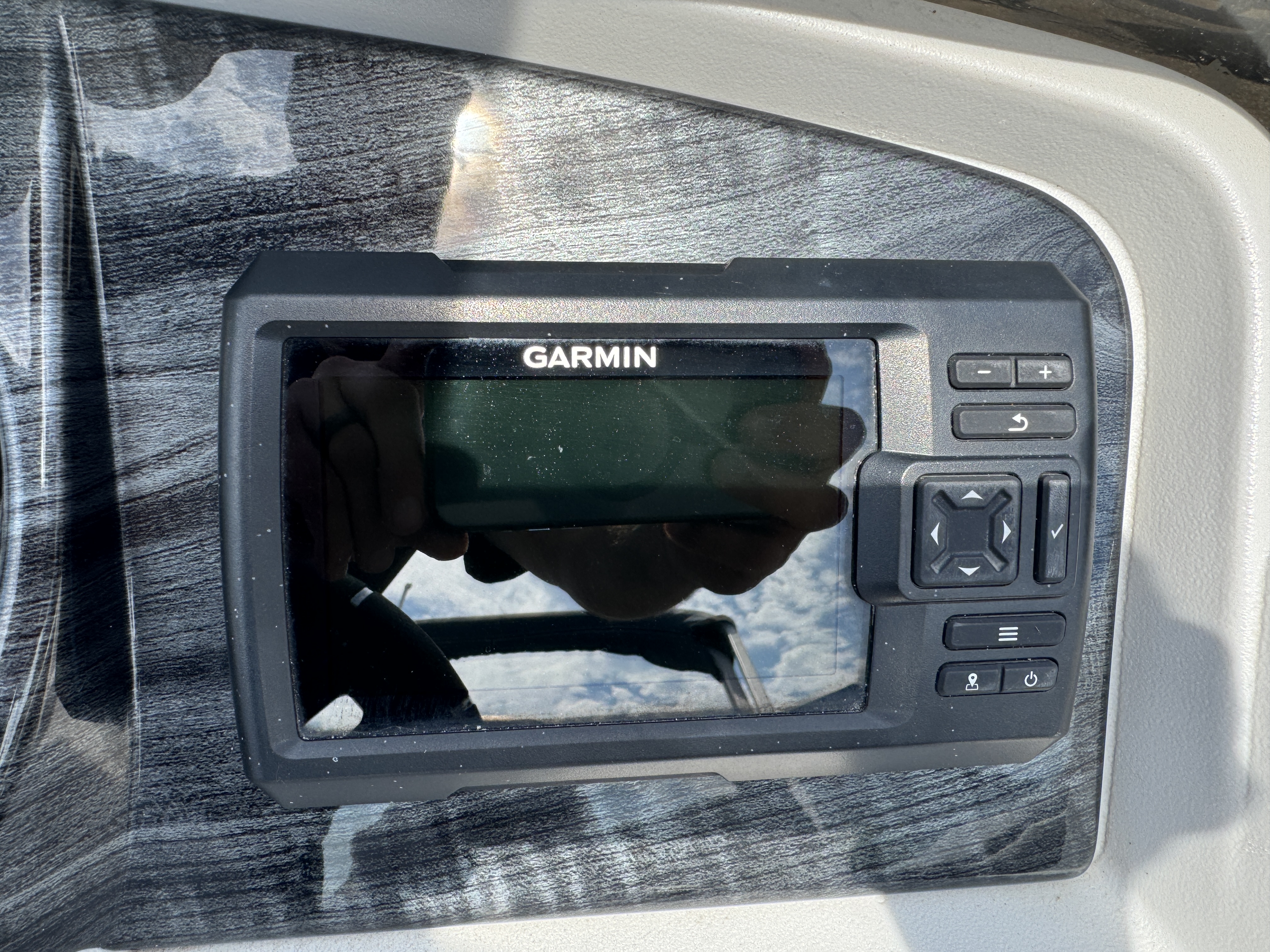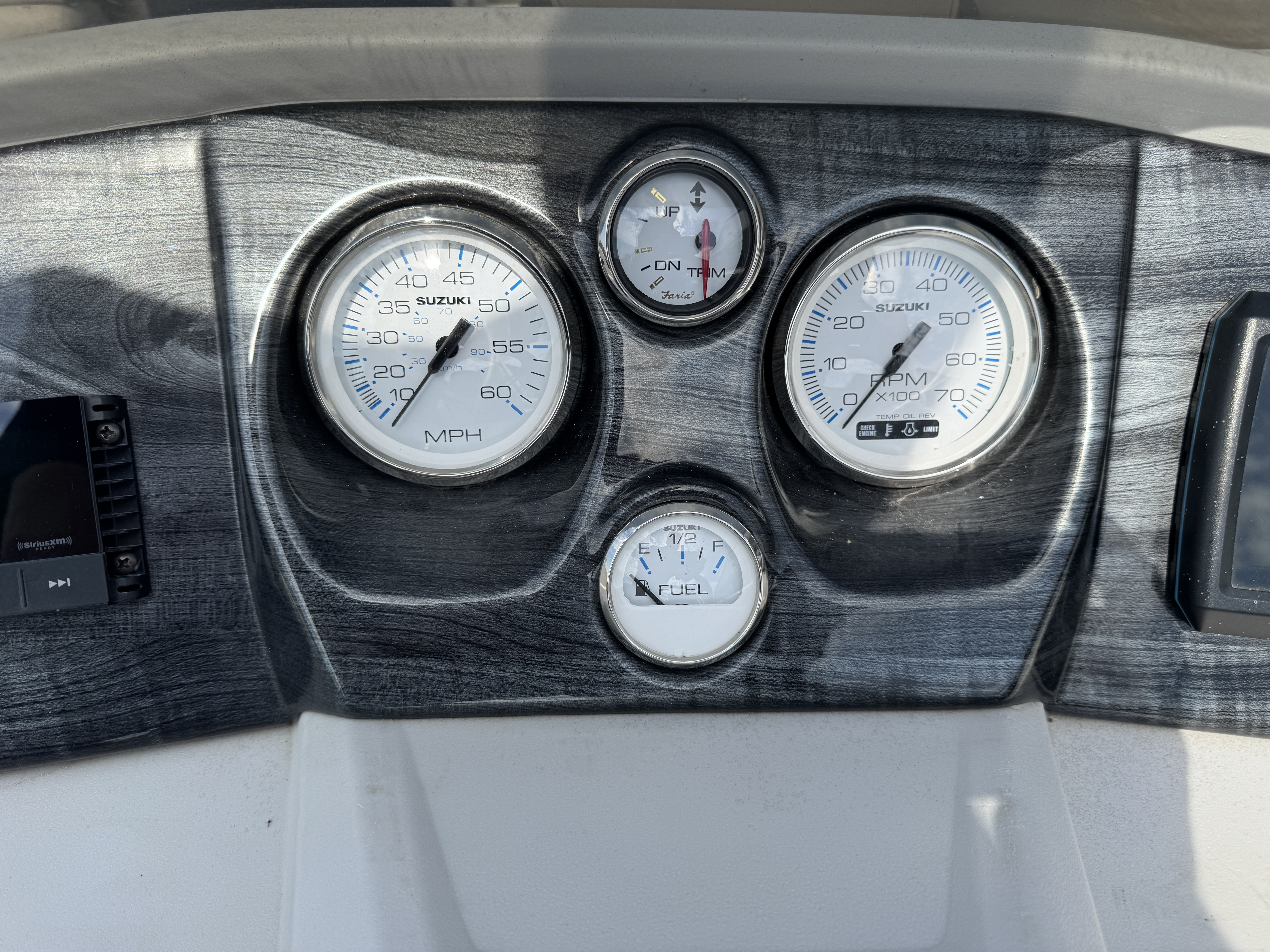 There is a Speedometer, Tachometer, Fuel and Trim gauge. There is a Garmin GPS