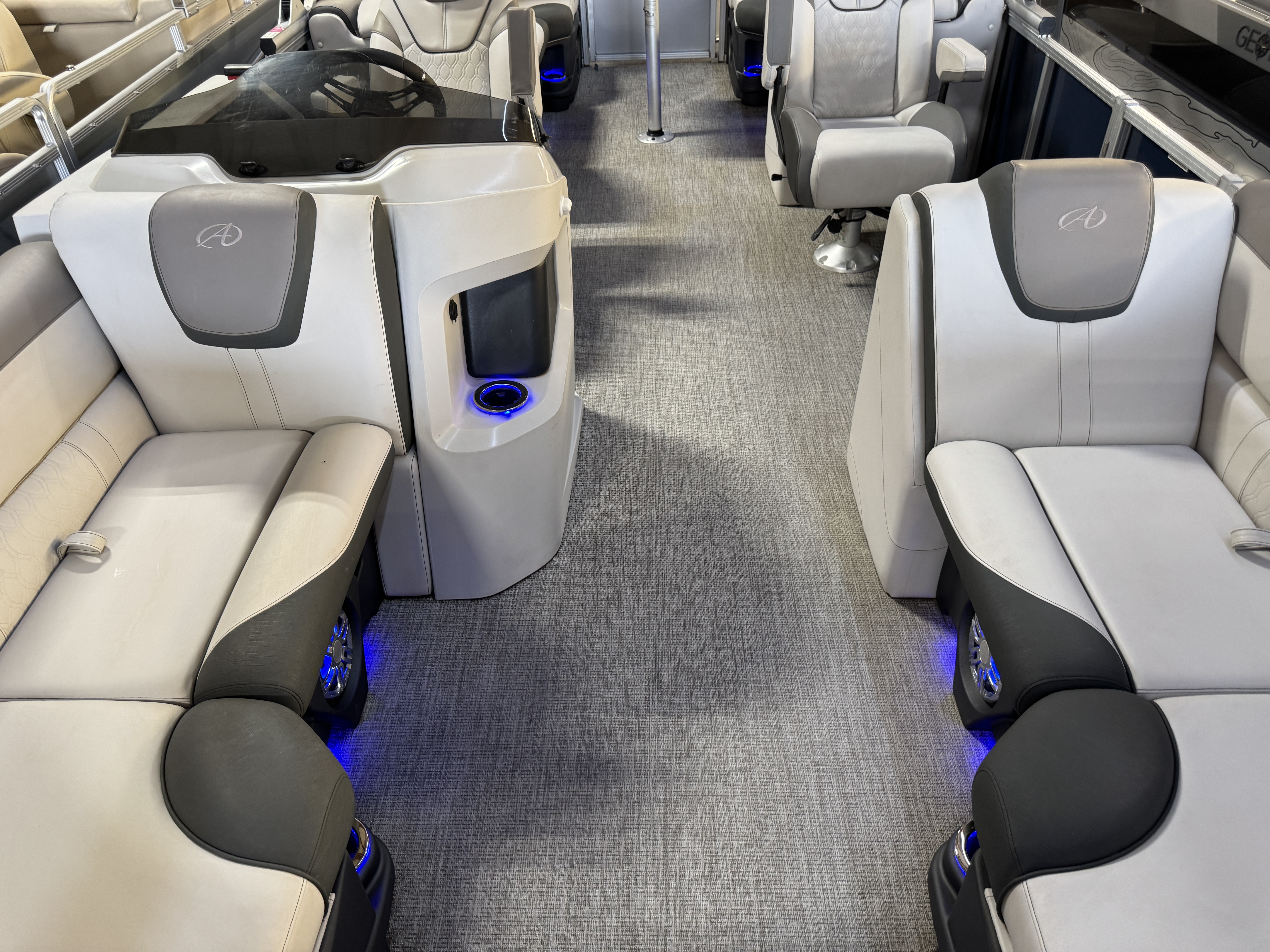 pontoon. There are also side-by-side captain's chairs amidships allowing for an