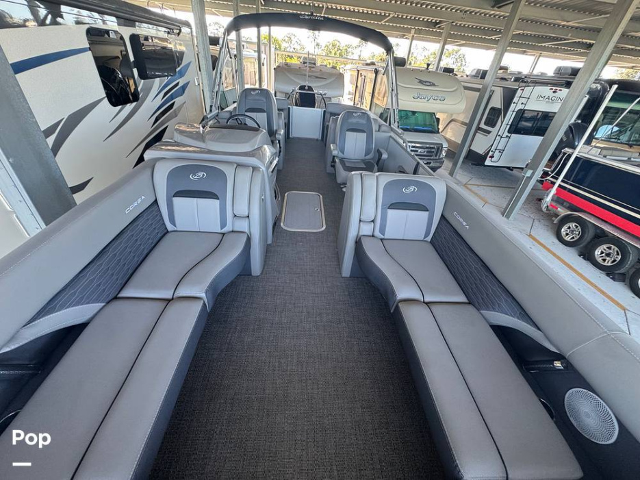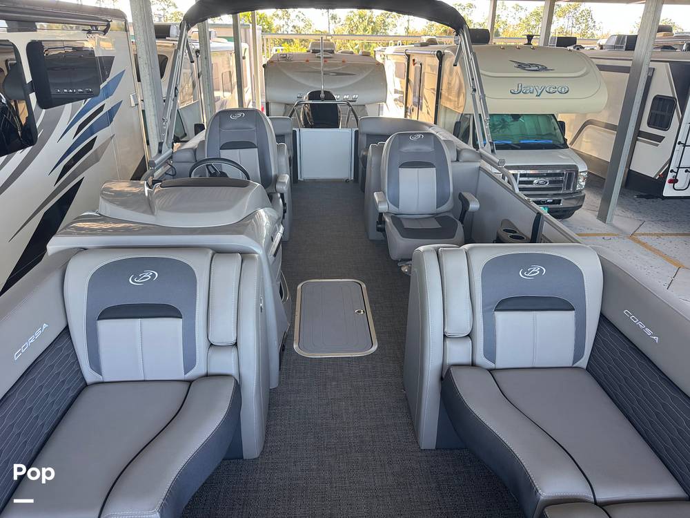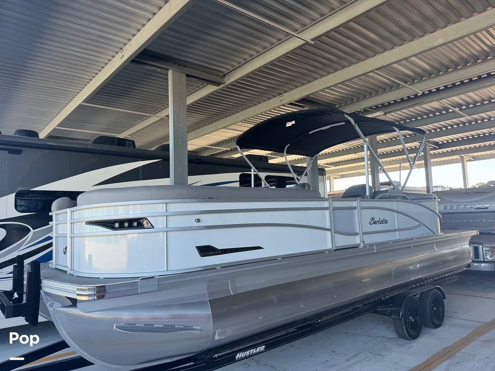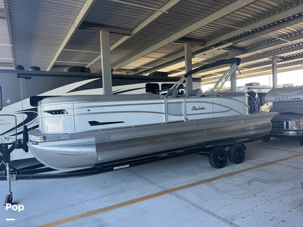 If you're looking for a luxury tri-toon boat, look no further than this 2023 Barletta 25QC Corsa Coastal Edition.