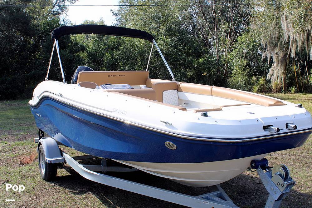 Enjoy the essence of summer with the gently-used 2023 Bayliner DX2000, a deck boat designed for those who love to soak up the sun and enjoy the water in style. This boat is all about providing a comfortable and a versatile experience with luxurious seating, extensive storage for all your essentials, and a convertible aft lounger ideal for basking in the sunshine with a refreshing beverage in hand.