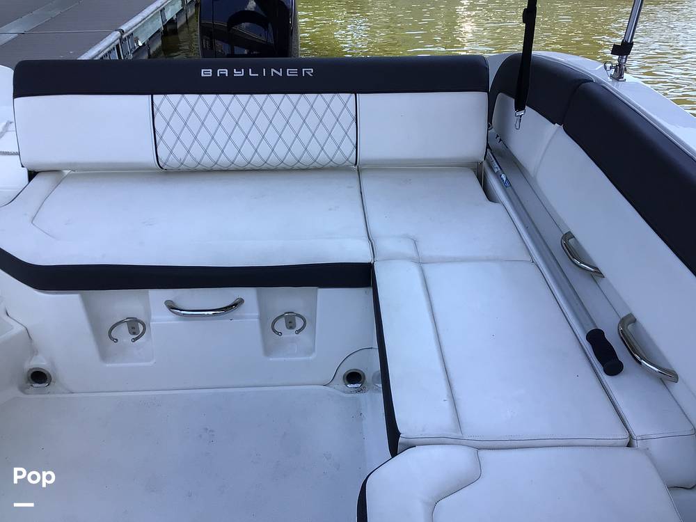 Measuring 22 feet long, the Bayliner DX 2200 features a sleek, modern design with ample seating for up to 10 passengers. Its layout includes comfortable bow seating, a roomy cockpit, and a large swim platform, making it ideal for relaxing, socializing, or enjoying water activities. The boat has a Bluetooth stereo system, a GPS, and a convenient swim ladder for easy access to the water.