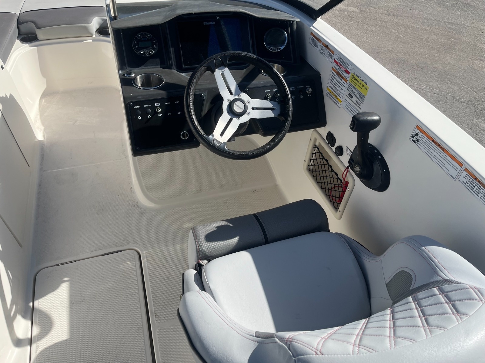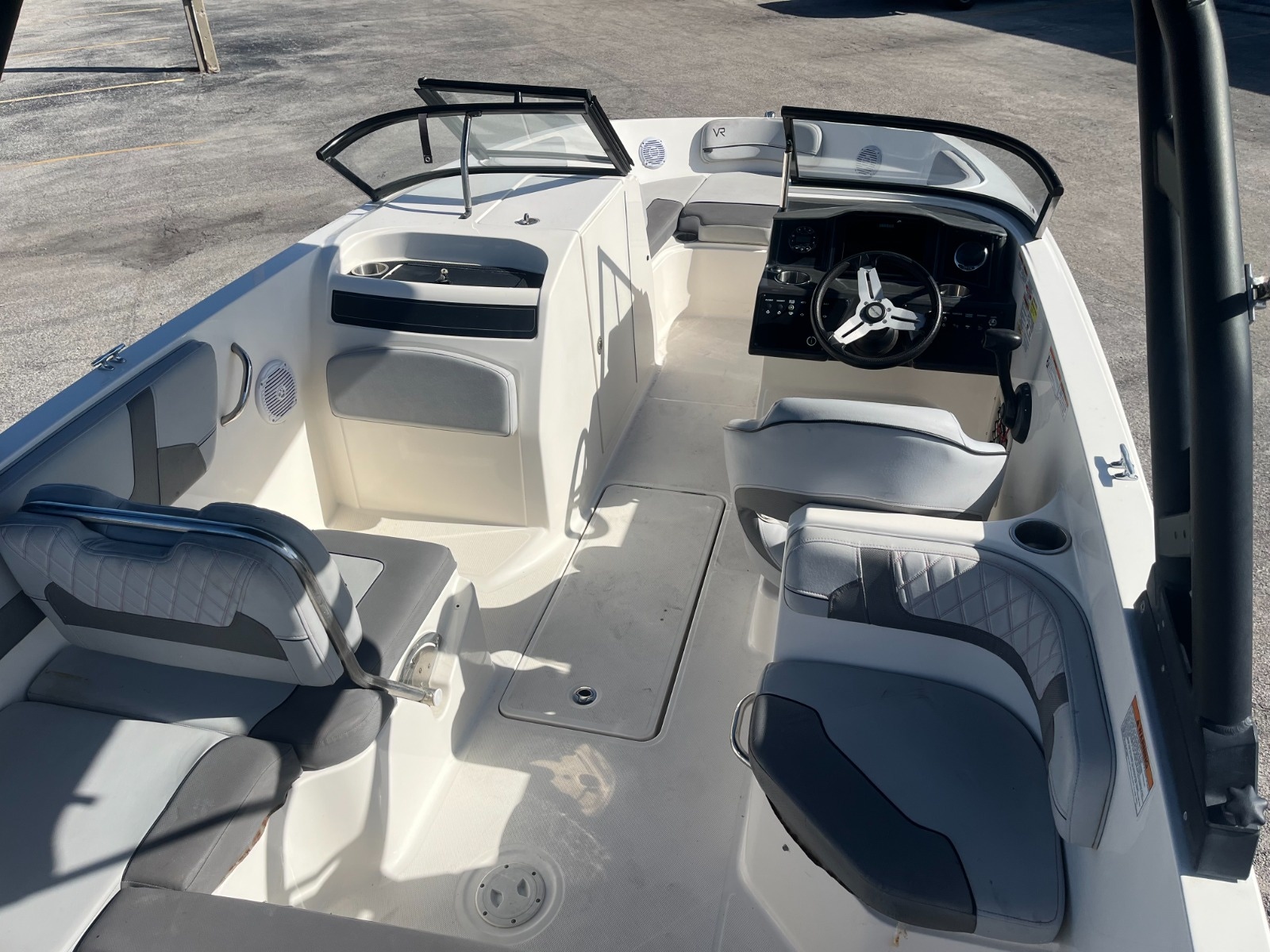 A larger version of our new VR5, the VR6 is also all about space and unparalleled roominess. It combines Bayliner category-leading BeamForward design and new AftAdvantage concept which increases the self-draining cockpit seating area by adding the swim platform at the end of the running surface. This boat maximizes space and value like never before regardless of whether you choose outboard or sterndrive power. You will also find pleasant surprises like a lockable enclosed changing room (head optional) and aft-facing companion observer seat that is ideal for water sports and with the addition of a filler cushion creates a comfortable U-lounge that turns the whole aft section into an inviting gathering area. Check out this Bayliner VR6 today! Easy financing available.