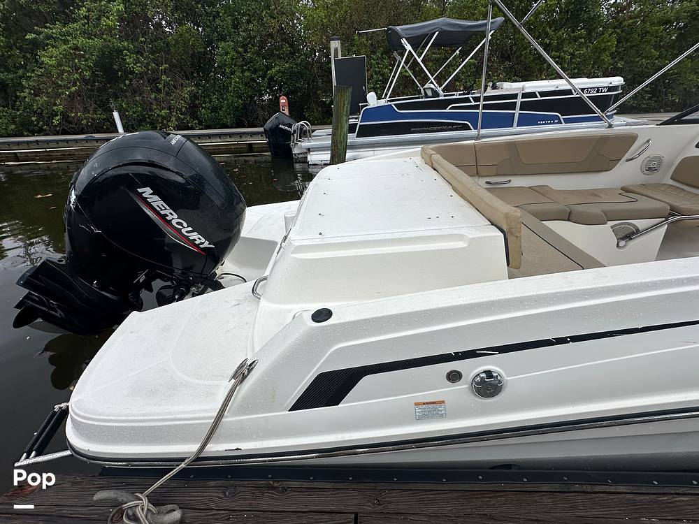 Enjoy the spacious layout featuring plush bow seating with integrated storage, a protective bimini for essential shade, and an extended swim platform for easy water access. Premium amenities include a Bluetooth stereo system, Simrad GPS navigation, and a convenient flip-flop backrest on the passenger seat.