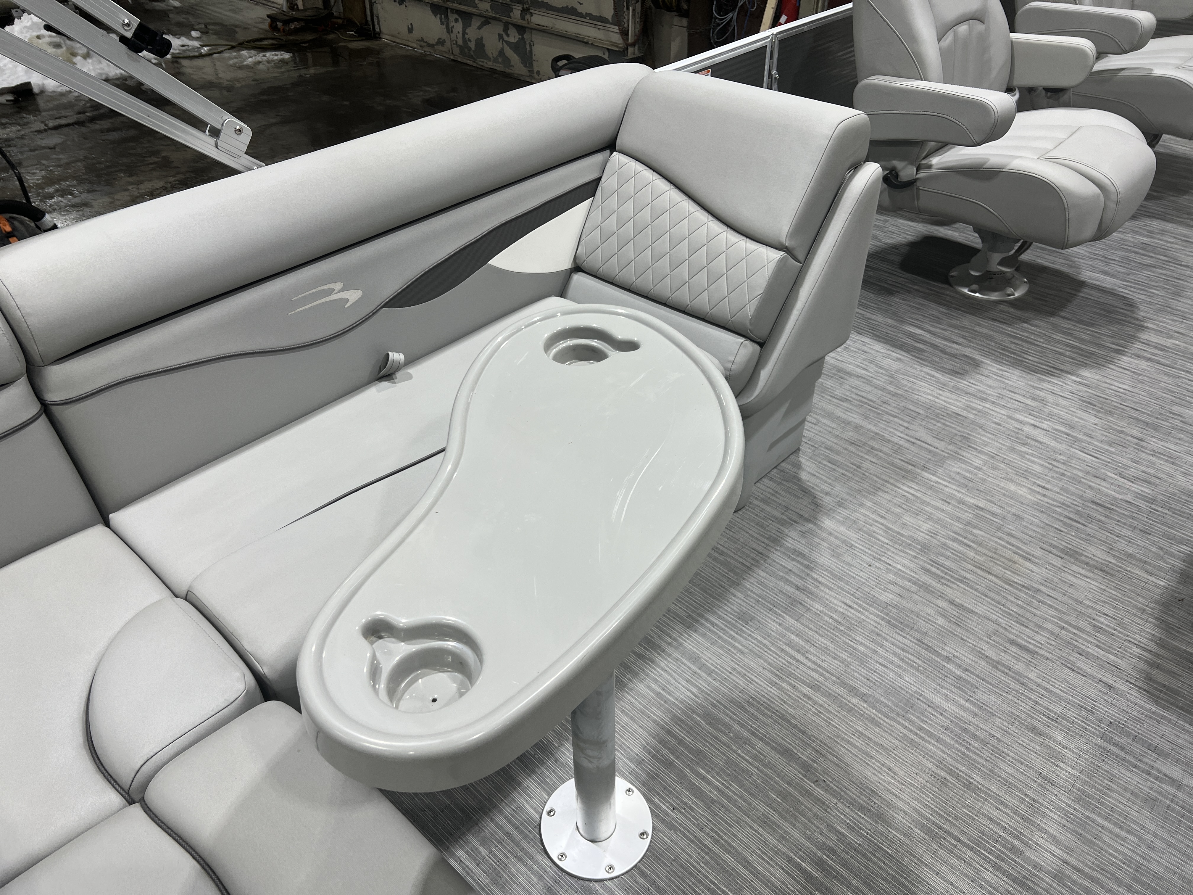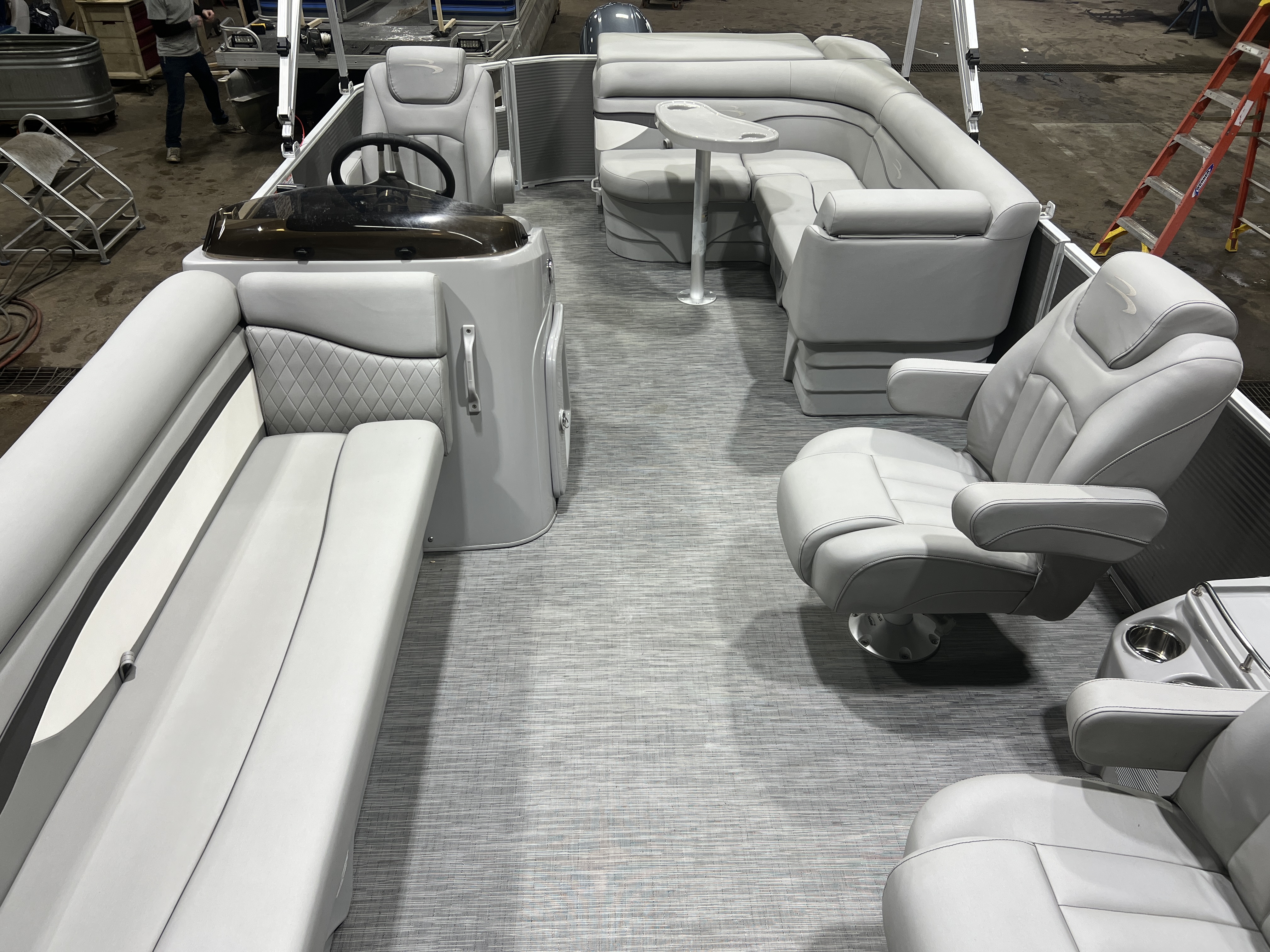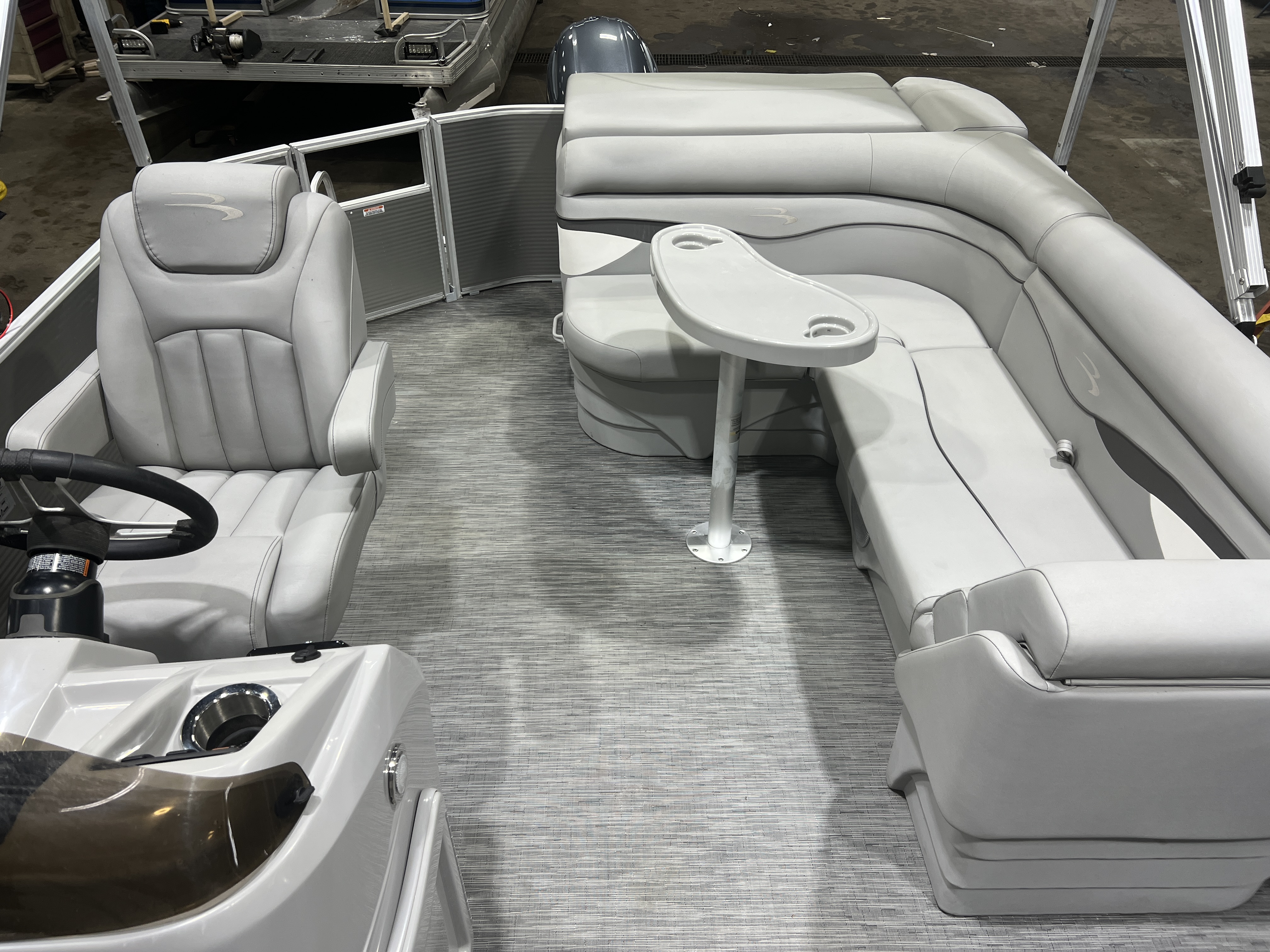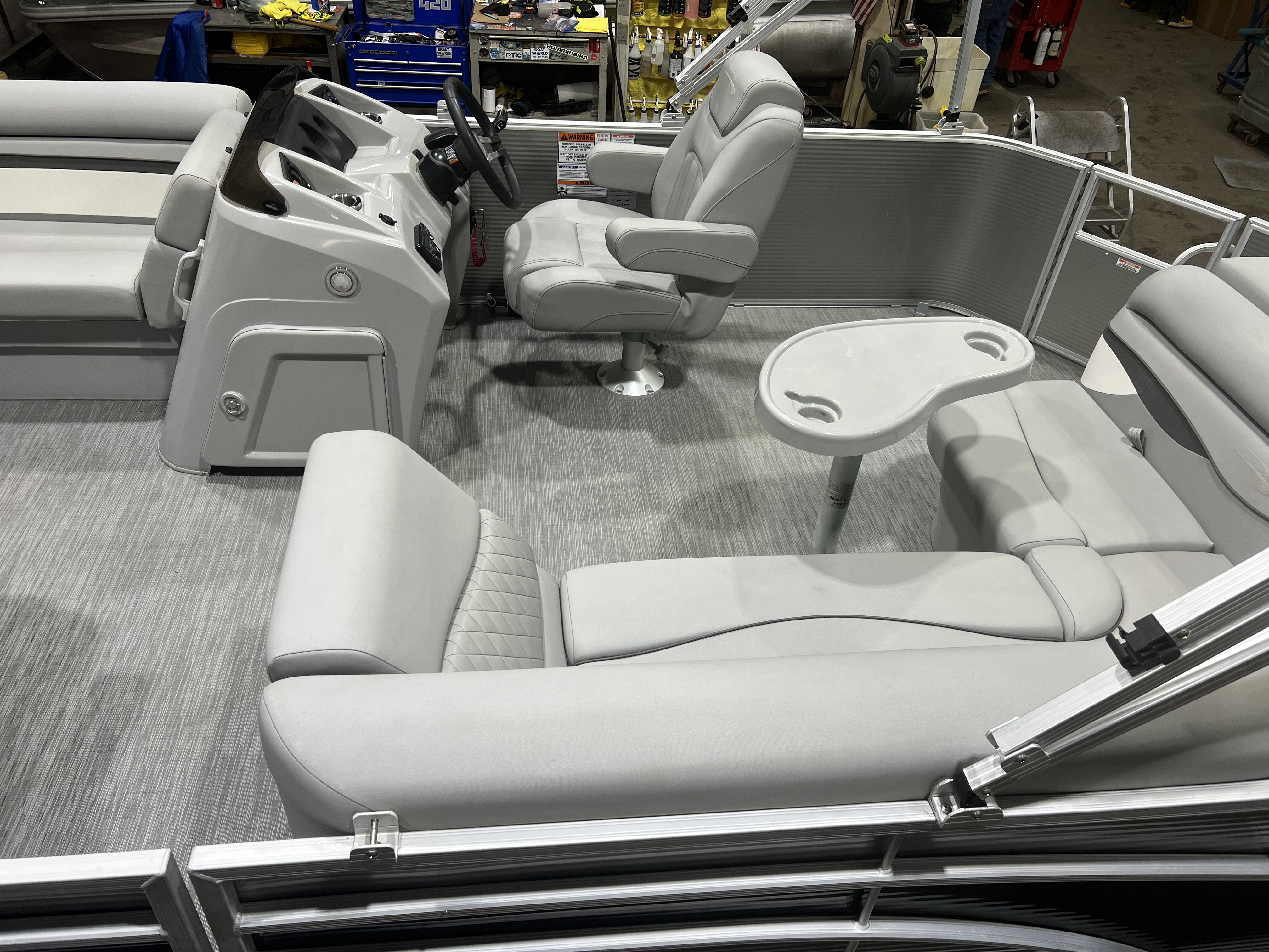 cruise model pontoon with DL front layout features Dual Lounge captain's chairs